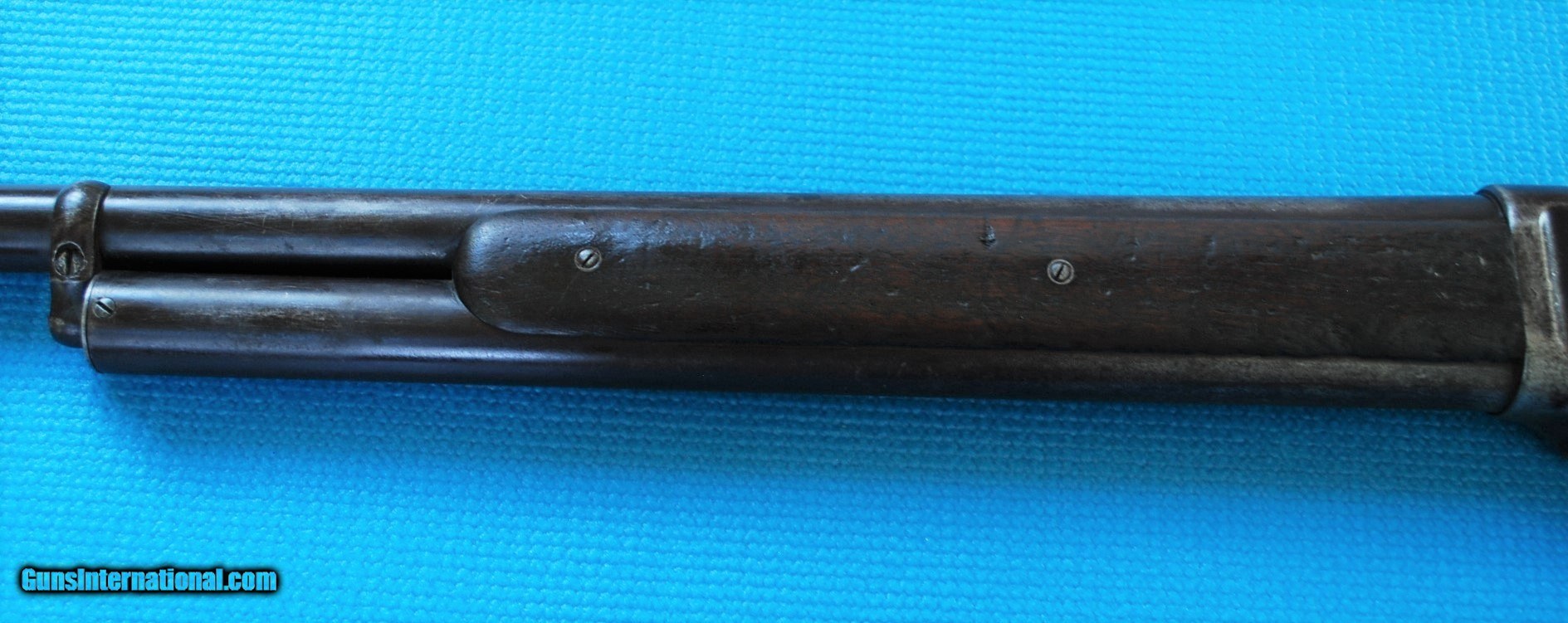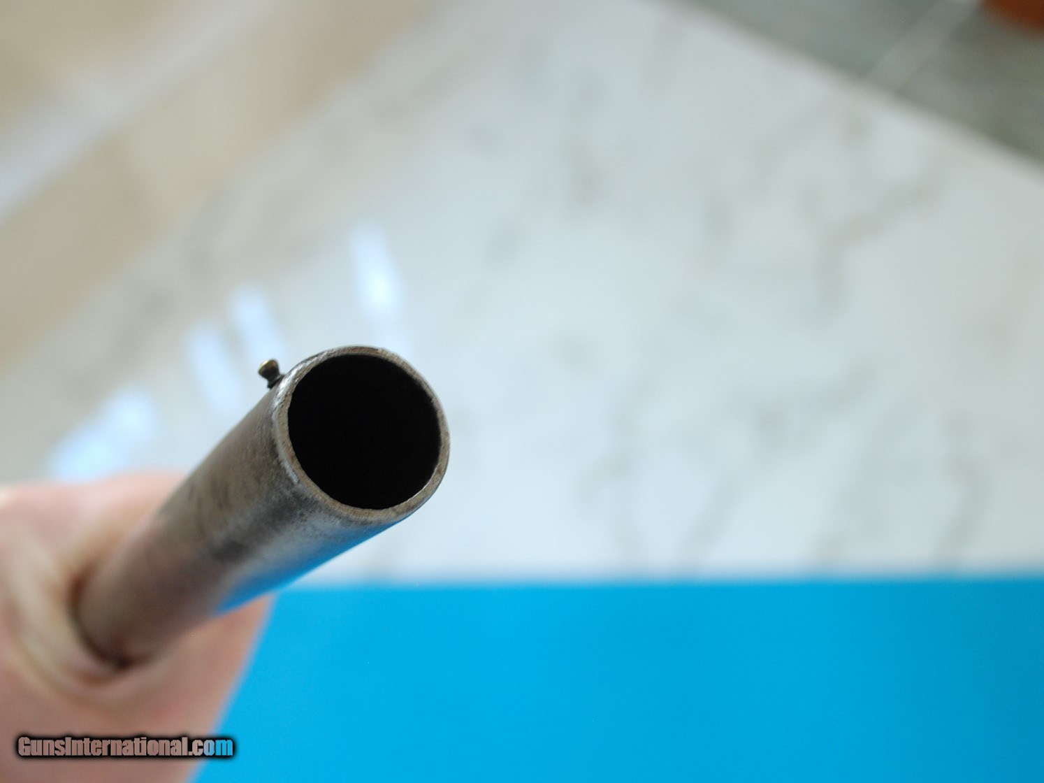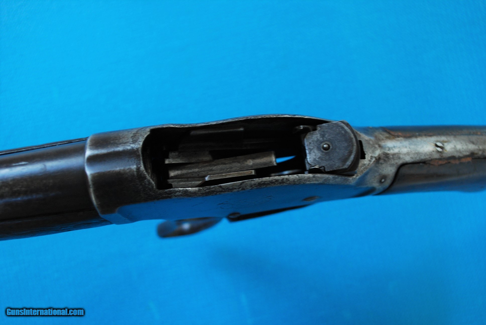 Description: This is a well worn but fully functional Winchester 1887. Buttstock has multiple repairs, handguard looks fine. Action is fine, with a half cock and full cock present. Bore is actually decent, much better than the exterior of the gun. No license needed to buy except NJ resients. Visa/MC add 3% SOLD Antique: Yes |