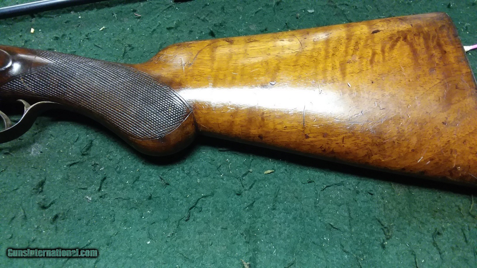 Description: Wyman SxS 12ga , 1860s - 1870s breech loading shotgun . The barrels are in good shape , 29 inches long . Tight action , no play . Locks are fully functional , tight and precise . This gun could be shot but have a qualified gunsmith check it out first , don't take my word . Side lever opening , London Laminated Steel Barrels . Shotgun is a little above average quality wise for the period made. The chokes appear to be open and 1/4 choke . This old shotgun came from an old estate in Morristown N.J. It had been in the family for well over 100 years . This gun qualifies as an antique and can be shipped directly to you unless you live in one of our more Marxist States , ( NJ is one ) . I will only ship to lower 48 States , no Hawaii or Alaska . It is up to you to check on the law in your State . Shipping will be $45 USPS Priority Mail . Payment by Postal Money Order , Certified Bank Check . Personal check is OK but must wait a week to clear . SOLD Antique: Yes Shotgun Gauge: 12 Gauge |
