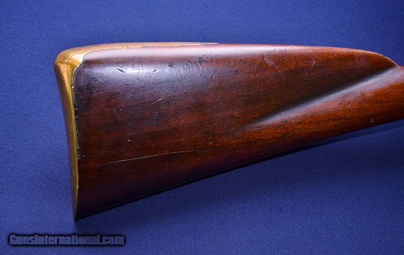 Description: Very Fine British Coach Gun by Richard’s, excellent condition. Beautiful coach gun with smooth long stock with fine carved shell fan behind tang. Highly visible lock marked “Richard’s”. Muzzle flares & measures 1 3/4” outside diameter, 1 3/8” inside diameter, & walls are 3/16” thick. Brass barrel measures 14 ½” with 30 ½” overall length. Action works perfectly. SOLD Antique: Yes |