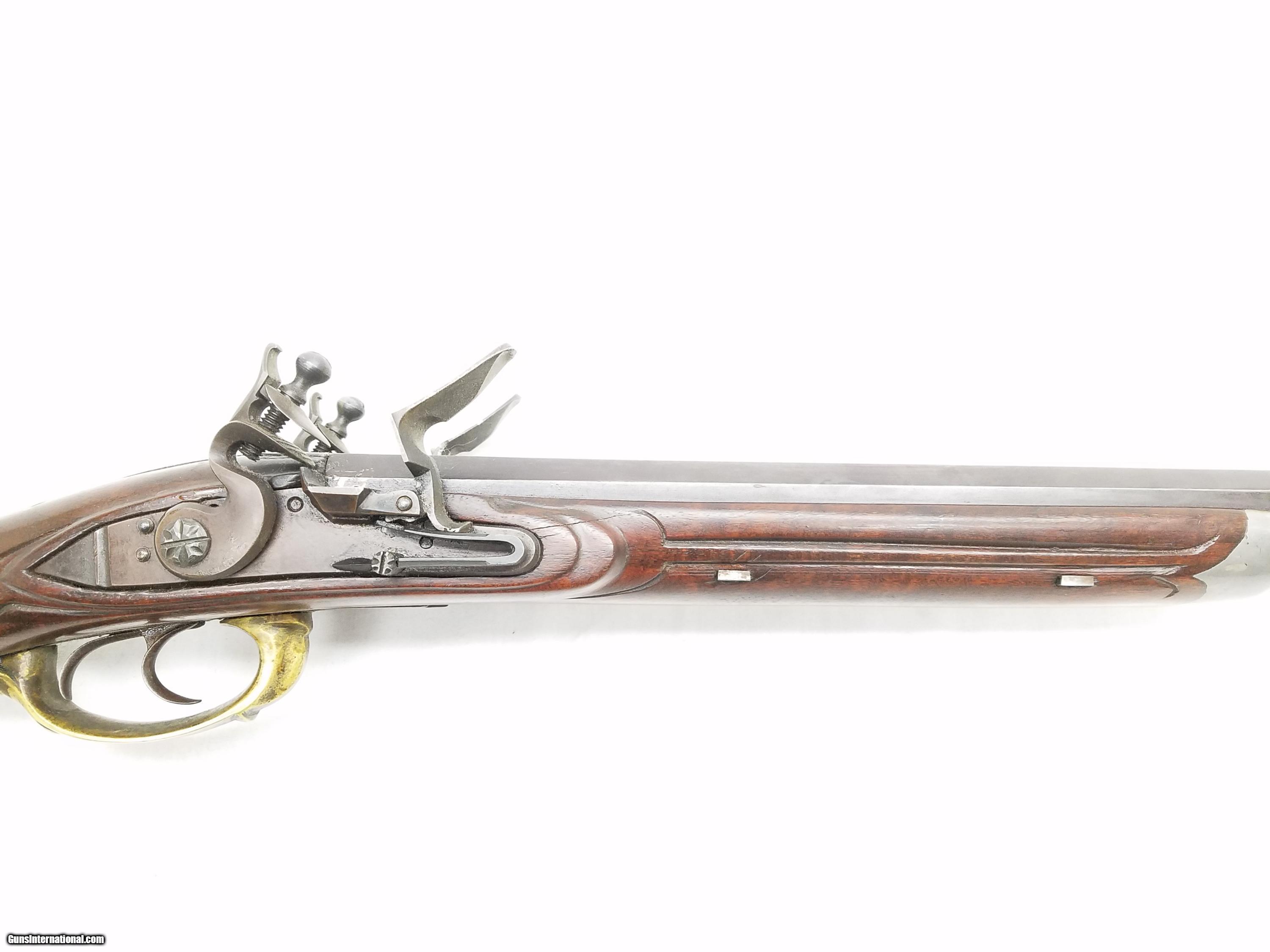 Description: This 20 gauge double flint muzzleloading shotgun has tapered octagon to round 30-1/2" cylinder bore barrels. The P+ grade walnut stock is mounted with a mix of brass and steel furniture, including a poured pewter nose cap. This shotgun has two wedges. The stock is tastefully carved and embellished with German silver wire inlays. The Large Siler flint locks are activated by single triggers. Length of pull is 12-3/4". Very good wood to metal fit - made by R. Ulin. Condition: Very Good. Stock number P-98-53 A082, please use this number when referencing this item. Will ship anywhere in the USA, buyer pays freight. SOLD Manufacturer: R. Ulin Barrel Type: SXS double Gauge Info: 20 Black Powder LOP: 12-3/4 Item Location: Eugene OR. |