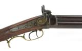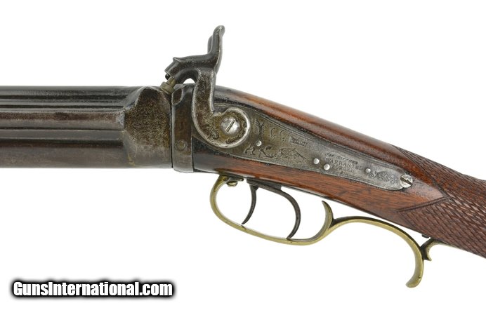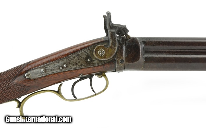 Description: Buck and Ball Over/Under Shotgun Rifle Combination. 32” barrel length. Rifle barrel is .36 caliber. Shotgun measures .70 at the muzzle. Gun has a Buckhorn rear sight and a half moon silver front sight. Action works perfectly. Note: Hammers work fine but do not have safety notch so hammers will rest on the percussion caps. This gun in our opinion is Western Pennsylvania made. Circa 1840-1850. No makers name. Gun has a James Golcher Locks marked warranted forced. SOLD Antique: Yes |