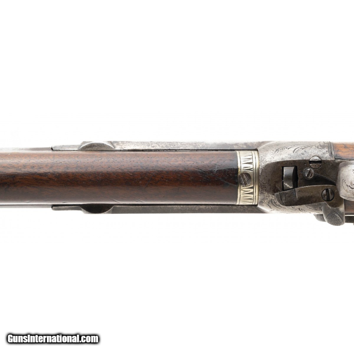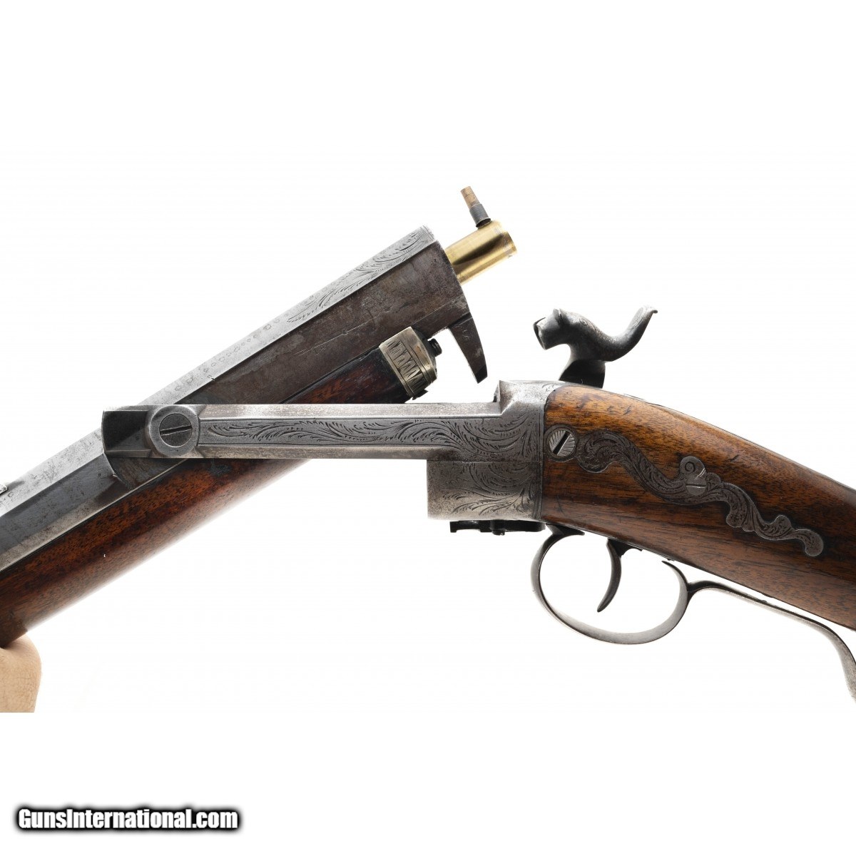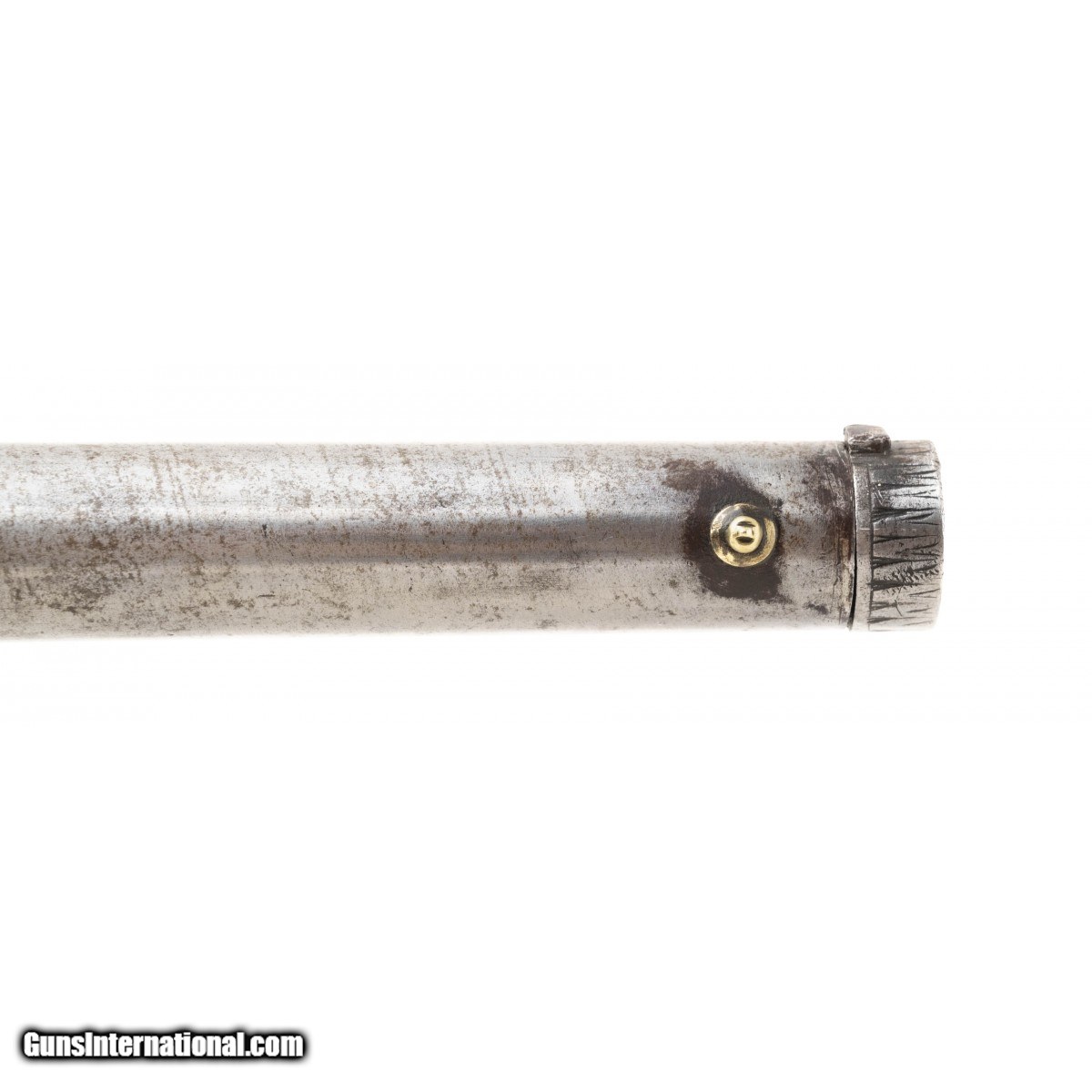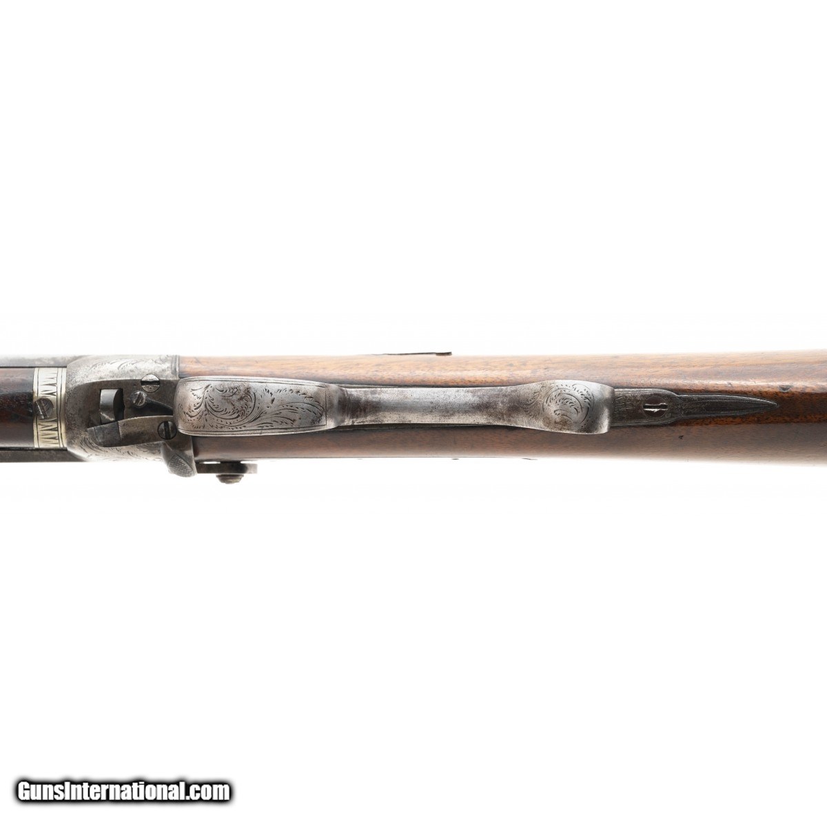 Description: " This rare Samuel Adams Patent combination break-open sporting percussion rifle-shotgun is most unusual. Samuel Adams was issued US Patent 960 on October 3, 1838, for a break-open combination rifle-shotgun that is almost identical to this rifle-shotgun. It is approx. 48 caliber and 10 gauge. The 29.5"" rifle barrel is inserted in the shotgun barrel. It is threaded on the muzzle end and is held in place by a threaded muzzle cap. It precisely fits the shotgun barrel. THe bore has bright sharp rifling with scattered light frosting and some very light pitting in the grooves. The shotgun barrel is very good with some light oxidation and light pitting. Each barrel requires a chamber insert with a percussion nipple to function. A very nicely made chamber insert is present for the rifle barrel. A shotgun insert could be easily made. The barrel shows traces of a damascus twist pattern its full length, now primaly a smooth pewter gray patina, with light oxidation staining and some light pitting in the breech area. The balance of the metal surfaces are similar with light oxidation staining. They feature light foliate engraving overall. It has a bead front and v-notch rear sight. It is marked Samuel Adams Patent just to the rear of the rear sight. Troy NY is marked on the right barrel pivot arm and the back action lock is marked S Adams. There is light foliate engraving on the long buttplate tang with gamebirds at the very heel and a bit of engraving on the bow of the triggerguard. The American black walnut stock is very good with much original varnish and the expected light dents and dings of a gun that was used in the fiels. There is a small divot at the point of the comb. The forend is similar with a bit more wear and with a small chip forming at the rear, which may have been repaired. There is a lightly engraved German silver nosecap and a lightly engraved German silver ferrule at the rear of the forearm. The lock functions mechanically and the gun locks up tightly. It is equipped with a brass-tipped steel ramrod. The barrel insert and barrel proper are both numbered 14, the serial number. Samuel Adams is first listed in Springfield, MA, in the 1830s. He later moved to Troy, NY, and, possibly, later to Battle Creek, MI. It is reported (American Gunsmiths by Sellers) the his guns were manufactured by C.B. Allen. Here's your chancce to own a very early percussion cartridge tyoe gun that is also a combination rifle-shotgun and that is also covered by a very early U.S. Patent. If you like unusual early US firearms, this Samel Adams patent rifle-shotgun is for you! SOLD Antique: Yes |