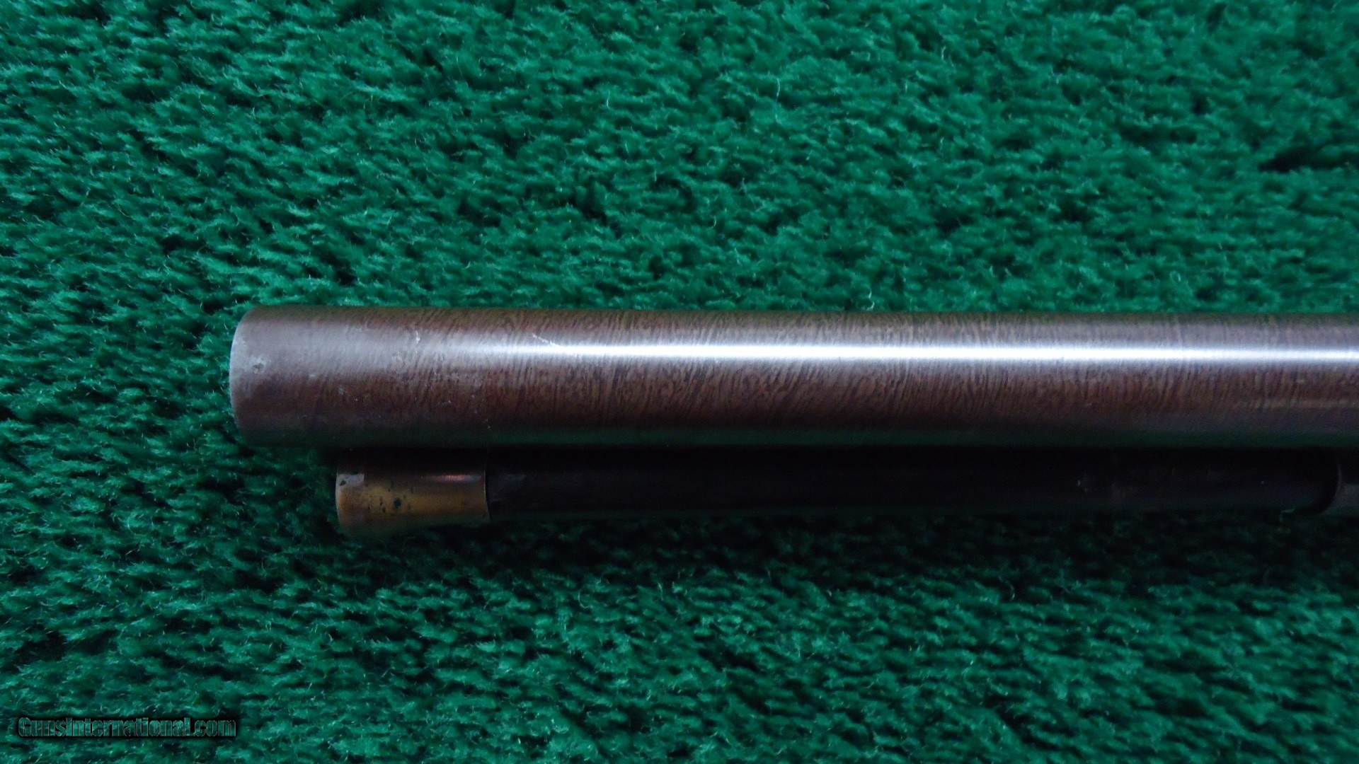 Description: 30 inch Damascus barrels. Breech iron is very nicely engraved with scrolls. Nicely figured stock measures 14-3/8 inch LOP. Ebony ramrod with brass ends. Bores are good. Wood retains most of an old refinish with checkering being nicely re-cut. Hammers are replacements. Barrels have nearly all of a good quality re-brown remaining. Leroy Merz Antique Firearms specializes in antique and vintage Winchesters and other fine American firearms. Since 1965 Mr. Merz has taken part in the world of firearms and has been a contributor to many well known reference books. We have hundreds of additional guns in every price range at our home online. Search for Merz Antiques in google. SOLD Antique: Yes |