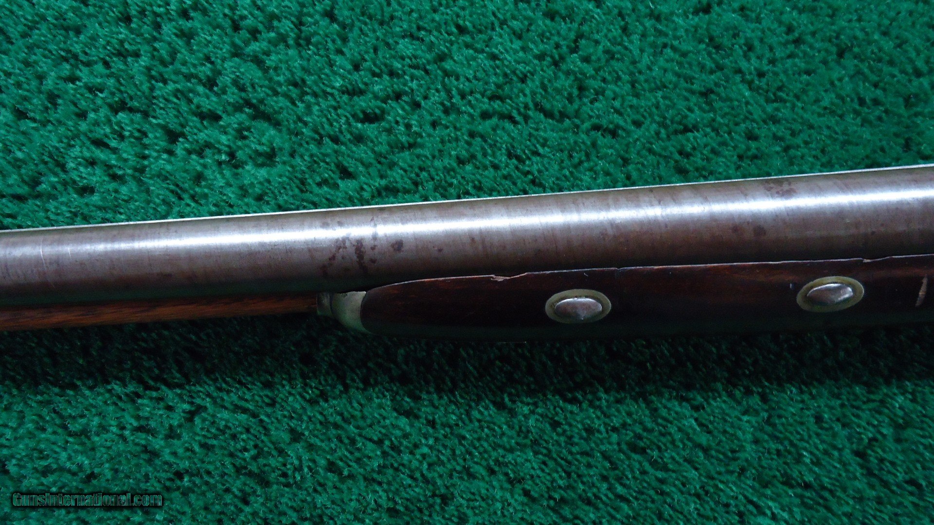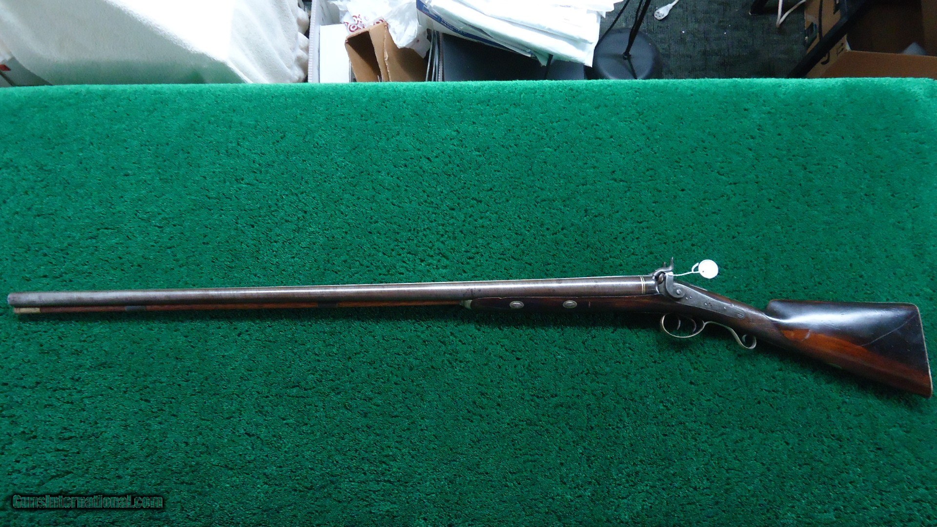 Description: Cooper was known to be an active gunsmith in New York City area in the 1840’s and 50’s. Gun is an 8 gauge with 42 inch barrels. Back action locks are nicely engraved. Both sides are marked H.T. Cooper. Barrels retain a considerable amount of the original twist pattern. The fixtures are nicely engraved German silver. Wood is nicely checkered. There are a few mars and dings but no splits or cracks. Complete with a huge buttplate. Gun weighs close to 15 pounds. This is quite a gun! Leroy Merz Antique Firearms specializes in antique and vintage Winchesters and other fine American firearms. Since 1965 Mr. Merz has taken part in the world of firearms and has been a contributor to many well known reference books. We have hundreds of additional guns in every price range at our home online. Search for Merz Antiques in google. SOLD Antique: Yes Shotgun Gauge: 8 Gauge |