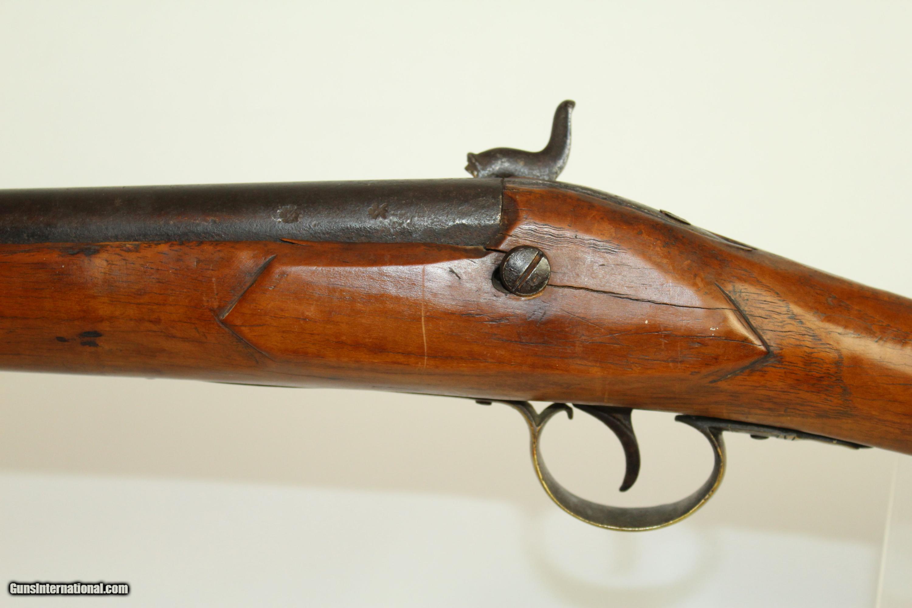Description: “SELMA ALA” Marked Antique Percussion Fowler Interesting Shotgun with British Proofs & Selma Placard Here we present an antique Percussion Fowling Piece, made circa 1840. This is a very interesting piece. It bears British proof marks on the left side of the barrel. The bottom of the barrel is marked “KARNSLEY”, the maker. The stock bears a small placard marked “W.B. GILL,/SELMA, ALA.” According to Alabama Pioneers, “The earliest furniture man and undertaker was W. B. Gill, who also sold buggies and wagons.” The overall condition of this piece is that of a relic. The metal surfaces are dark. The markings are mostly clear and legible. The bore is smooth and oxidized. The action is mobile, but does not hold cock. It appears that the lock is a very old replacement. Nevertheless, here is an interesting relic from the American South. Own the original! This is a legitimate antique and not a reproduction. Barrel is 46 inches in length. Caliber: .65 Overall condition as seen in photos. Very Fast. Very Safe. FREE SHIPPING WORLDWIDE. Delivered directly to your door by express mail! Guaranteed AUTHENTIC & Includes CERTIFICATE OF AUTHENTICITY. ancestryguns $750 #10512 SOLD Antique: Yes |