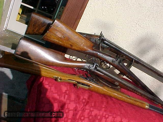 3 Antique Percussion SxS Shotguns FANCY / Functional / Beautiful / One Percussion Rifle .
