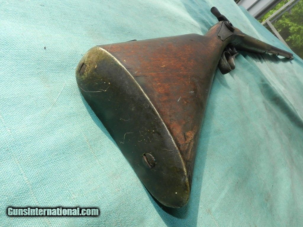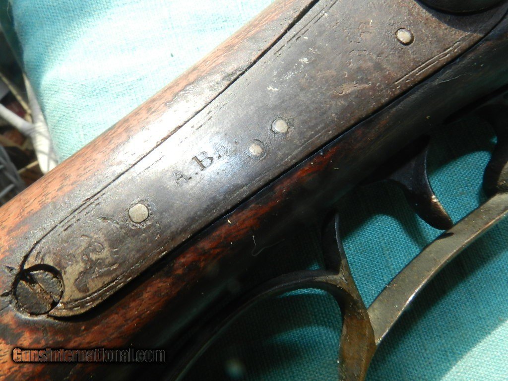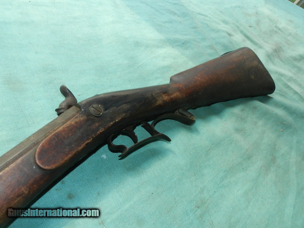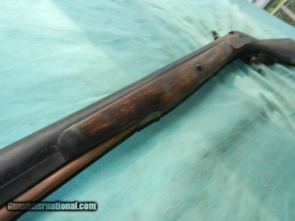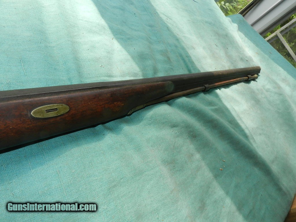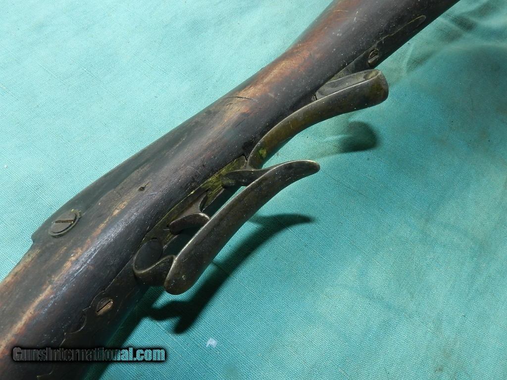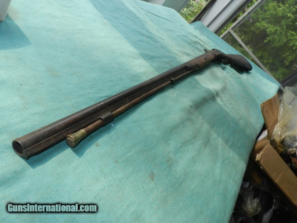 Description: A New Eeeeenglan Fowler of the 19th century with a 36" long round barrel with a 16ga bore. Theback-action lock is marked A. BAKER. Brass furniture is dark with age and hasn't been touched in a very long time. Gun looks lke it just came off the mantle. The NEw England hardwood stock is good and may have had small repairs over time, but not noticible. Action works well, with a strong mainspring. The nipple is complete. Oak ram-rod is pushed down and may be shorter than necessary. A good woring wall hanger. When buying a gun always have it examined by a competent gunsmith before shooting. To buy a gun from me you must get a direct email for me, with details, and shipping cost. We don’t have a web site .I prefer money orders or a check. Item ships when funds come in. I try to keep guns affordable, which means I make less money than most dealers. You won’t get altitude sickness, or nose bleed, with my prices! I consistently have the best selection of older guns If you attempt to buy, you must still contact us for details . Best to email to buy. Sometimes a local person can stop buy and purchase before the gun is removed. Sometimes not home to get calls. Some guns are required shipment to a gun dealer near you for a transfer to you when it arrives. Otherwise many older or black powder guns ship to your door. With the widest selection of older guns at great prices, We don’t have a store, and sell on the internet only. I’m easy to get along with. Thank You. SOLD Antique: Yes |