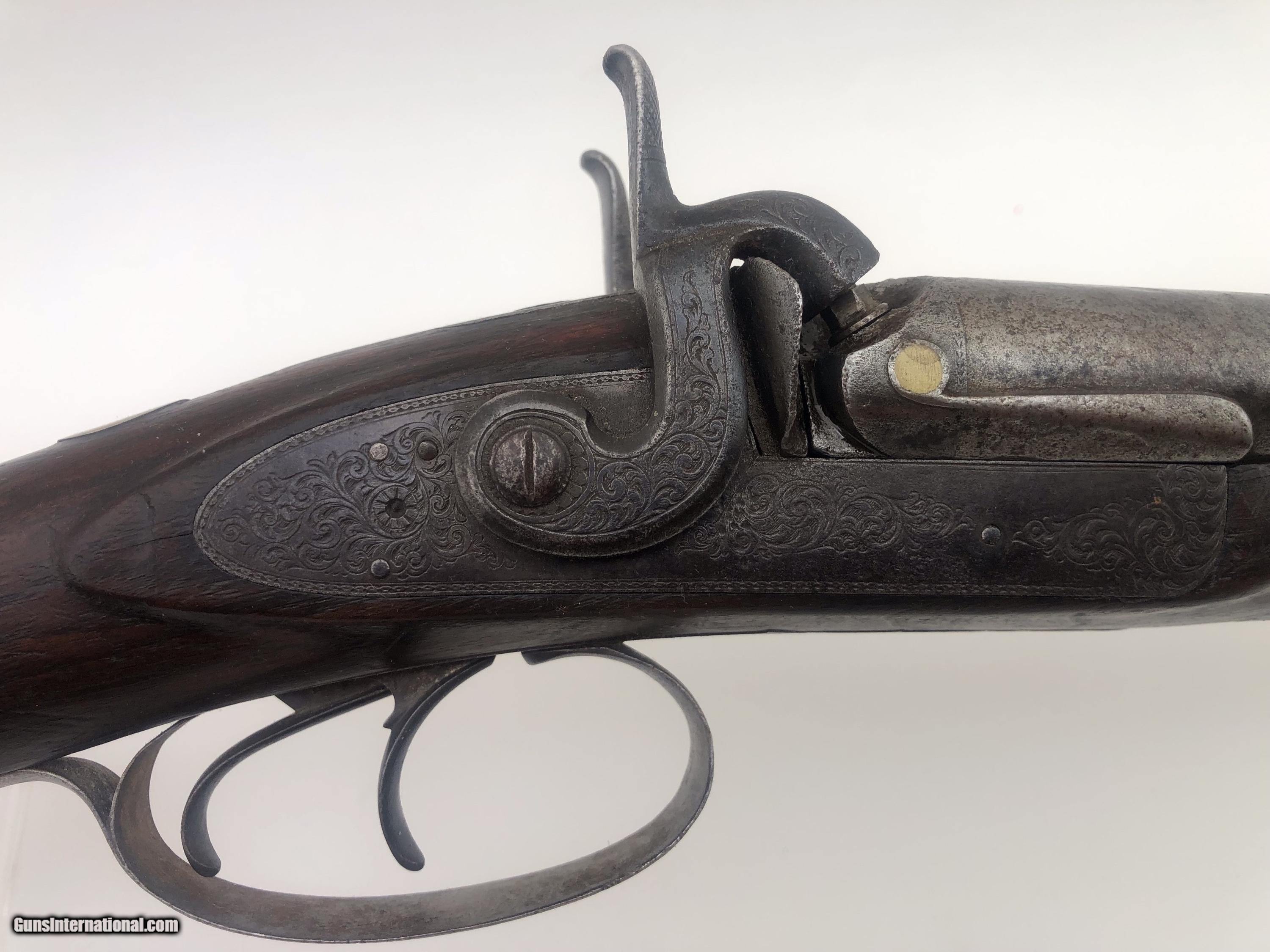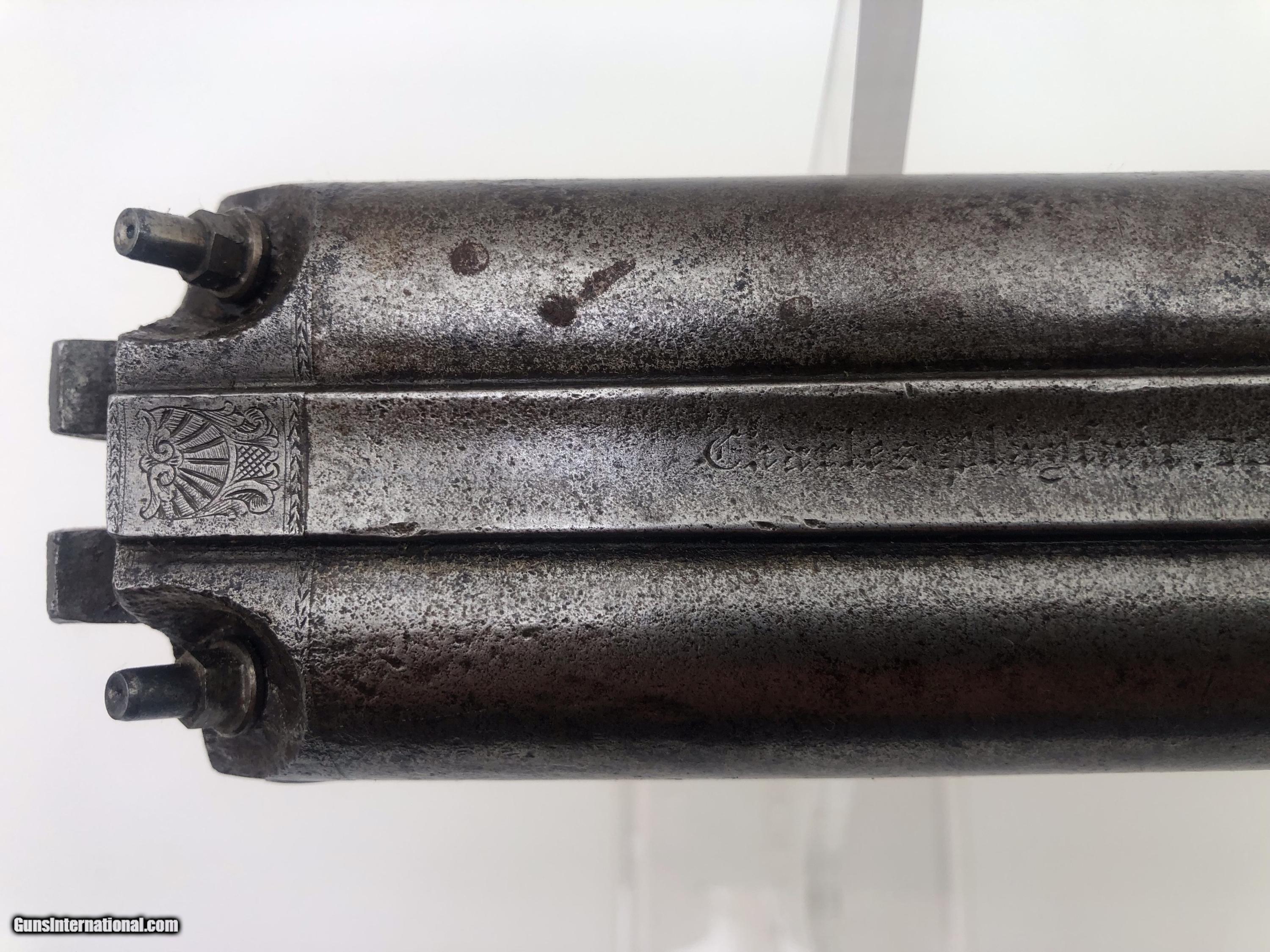 A Double Barrel Percussion 12 Gauge Shotgun By Charles Playfair pitting. .