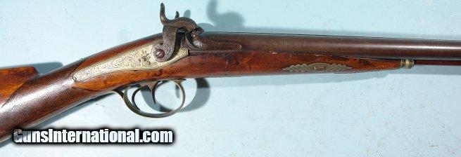 AMERICAN SILVER INLAID PERCUSSION DOUBLE SHOTGUN, CIRCA 1840-50.