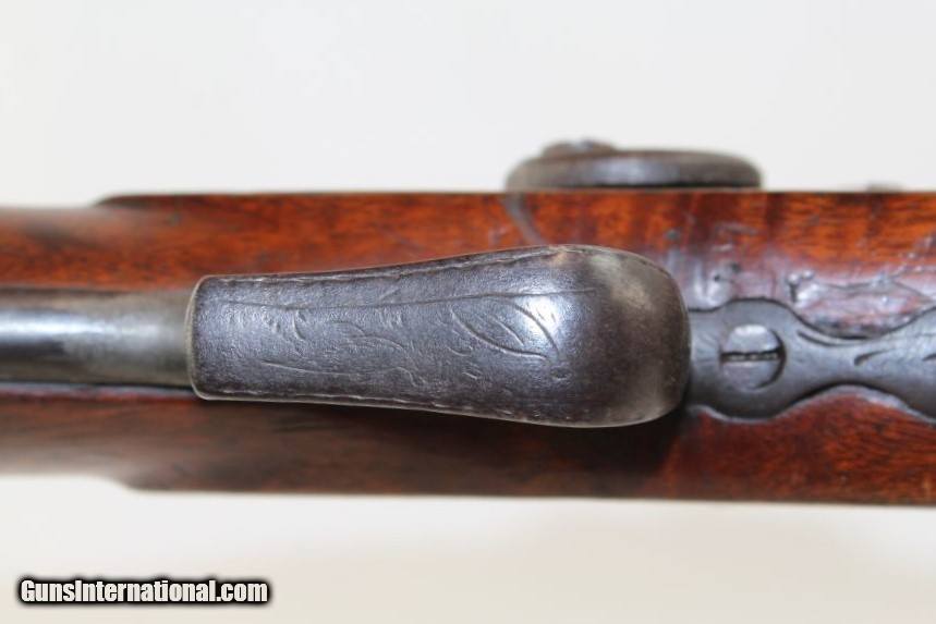 Description: Antique A.W SPIES Single Barrel Percussion SHOTGUN With Engraved Lock and “LONDON” Barrel Here we present an antique Single Shot Percussion Shotgun by A.W. Spies, made circa the 1850s. This shotgun would have been a nice hunting implement for the marsh, the field or the wood. It features an approximately 14 gauge bore and engraved lock. The trigger guard, barrel tang, and butt plate are also modestly engraved. The trigger guard has a distinct square shape to it. Adam W. Spies was a dealer in New York City, NY in the mid-19th century. The firm was a major retailer for arms and many people headed for the frontier would have acquired their firearms from this company. This one is a trade gun from England, hence the “LONDON” marking. It features a part-octagonal, part-round barrel in .69 caliber. End cap is of pewter. A few initials are carved into the stock below the thumb plate. The overall condition is good. The metal surfaces are dark with age. The markings are clear and legible. The stock is in good shape. The bore is smooth and dark. The action is strong. Own the original! This is a legitimate antique and not a reproduction. Barrel is 39-5/8 inches. Caliber: .69 Overall condition as seen in photos. Very Fast. Very Safe. FREE SHIPPING WORLDWIDE. Delivered directly to your door by express mail! Guaranteed AUTHENTIC & Includes CERTIFICATE OF AUTHENTICITY. ancestryguns $780 #8254 SOLD Antique: Yes |
