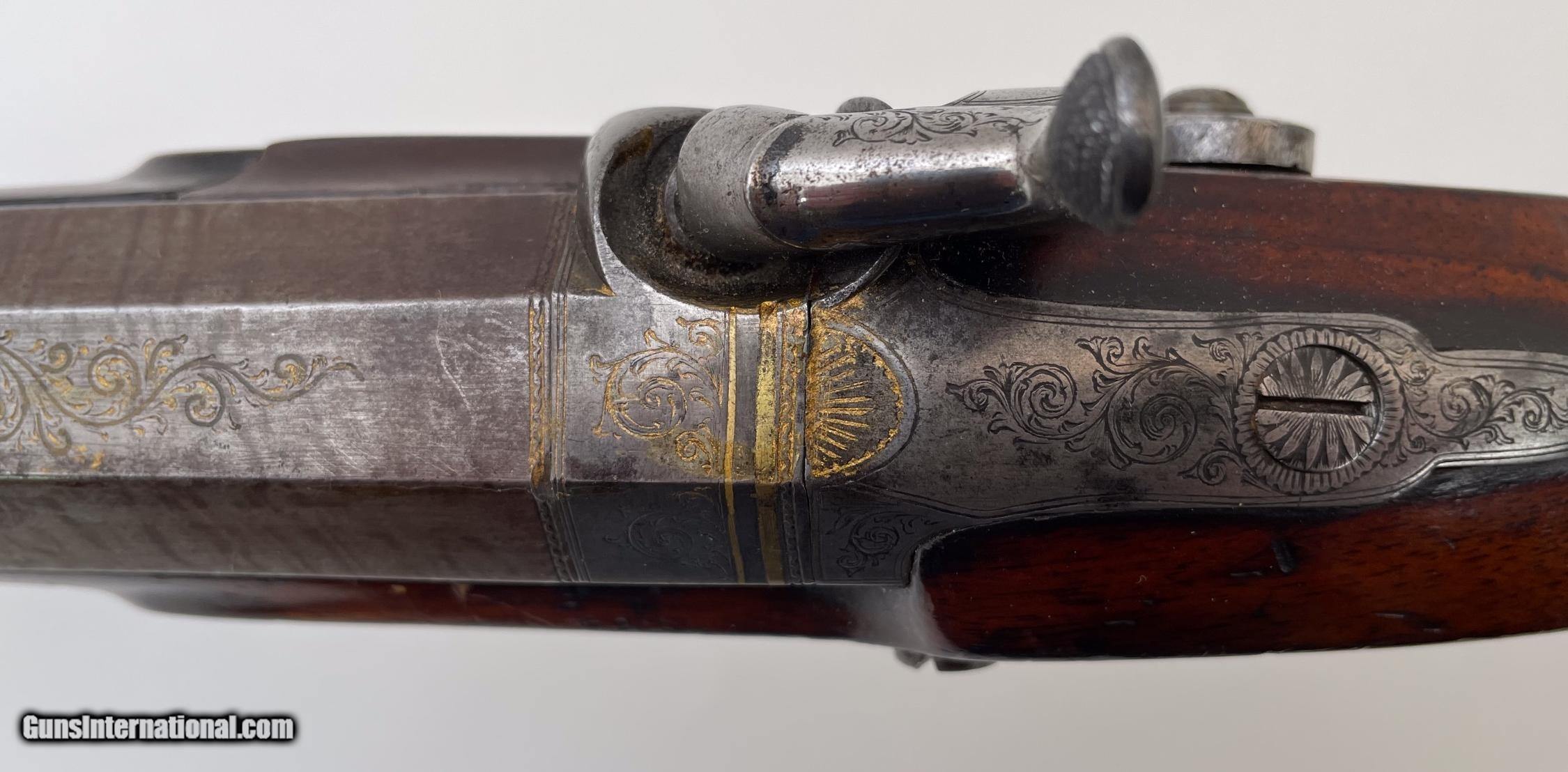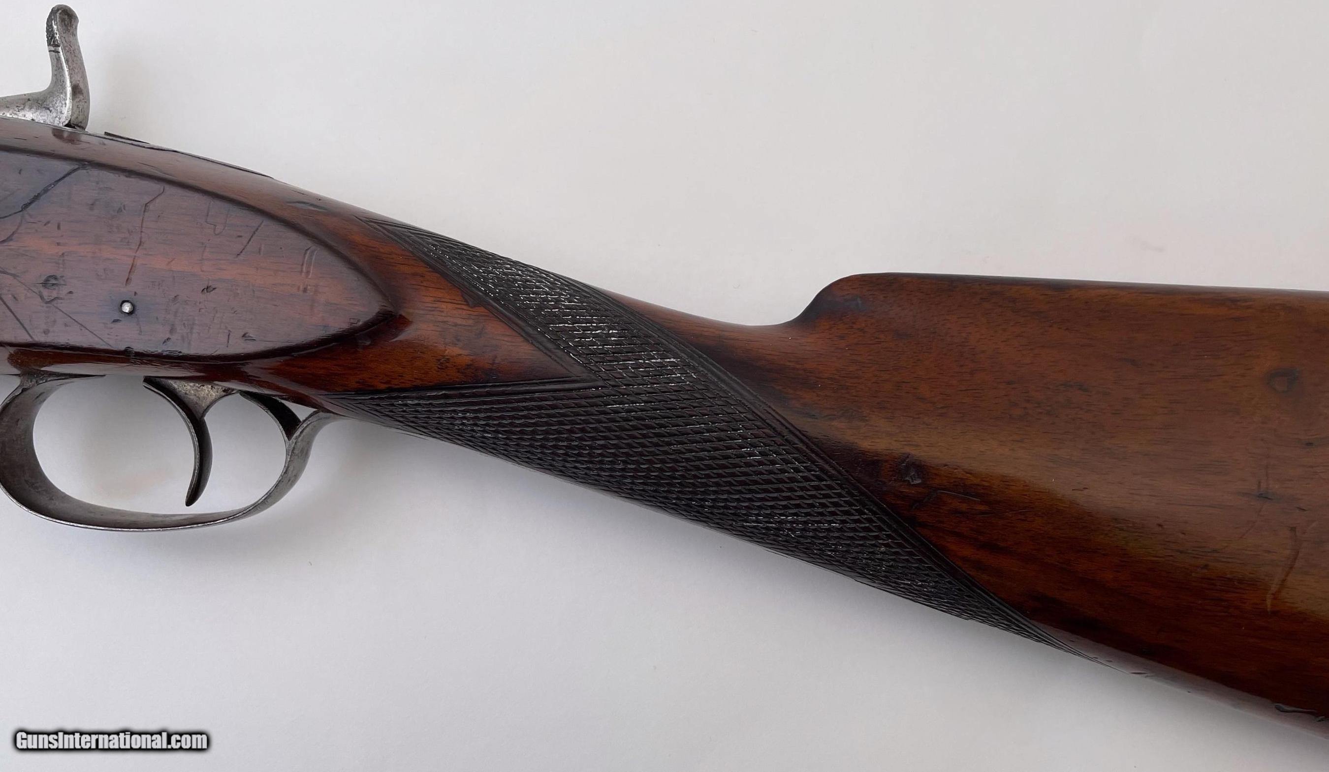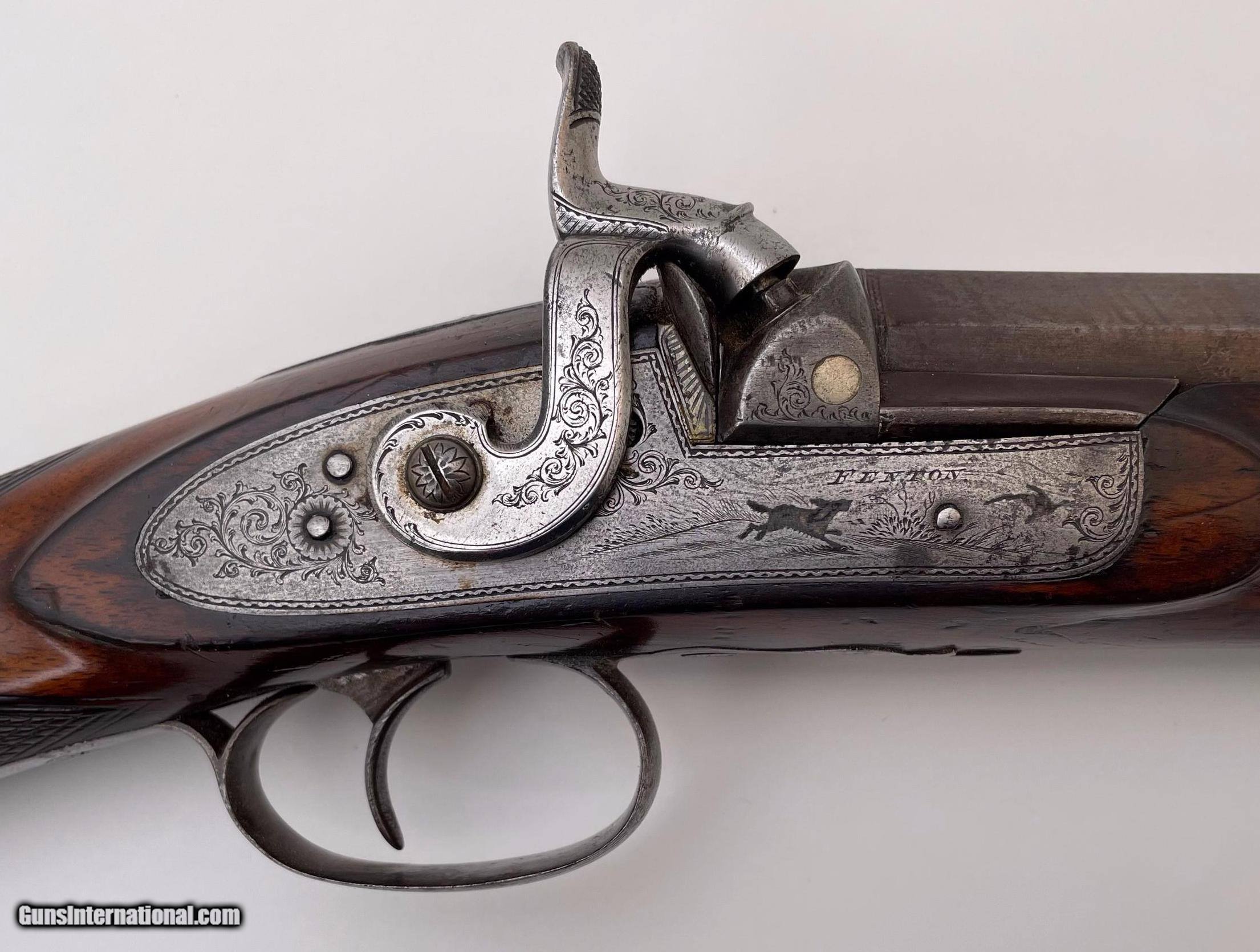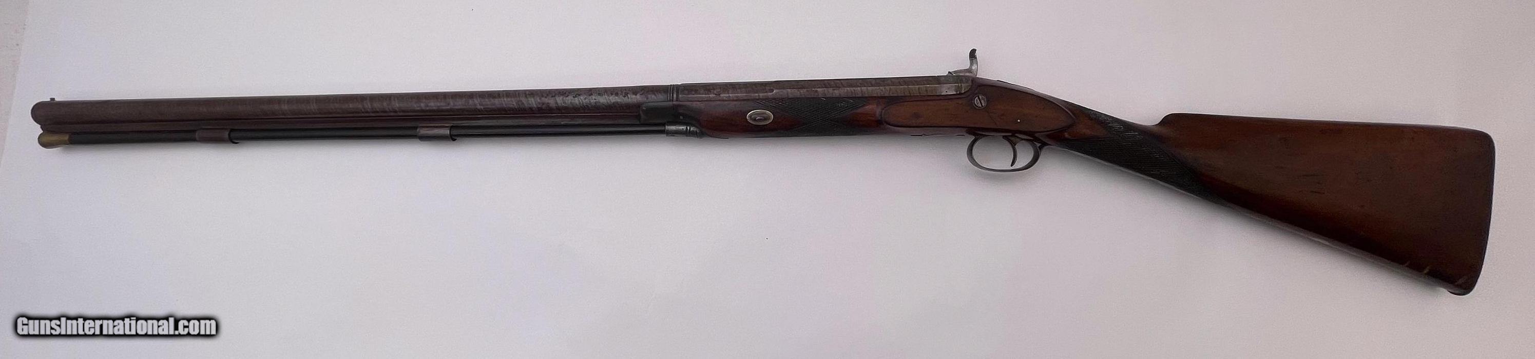 Description: A good honest high condition gun with excellent bore and crisp action. See photos. Domensions-- Overall 46" Barrel 29" Pull. 14.5". Bore measures .75" SOLD Antique: Yes Manufacturer: Fenton Model: Fowler Barrel Length: 29 Bore Condition: Excellent |
