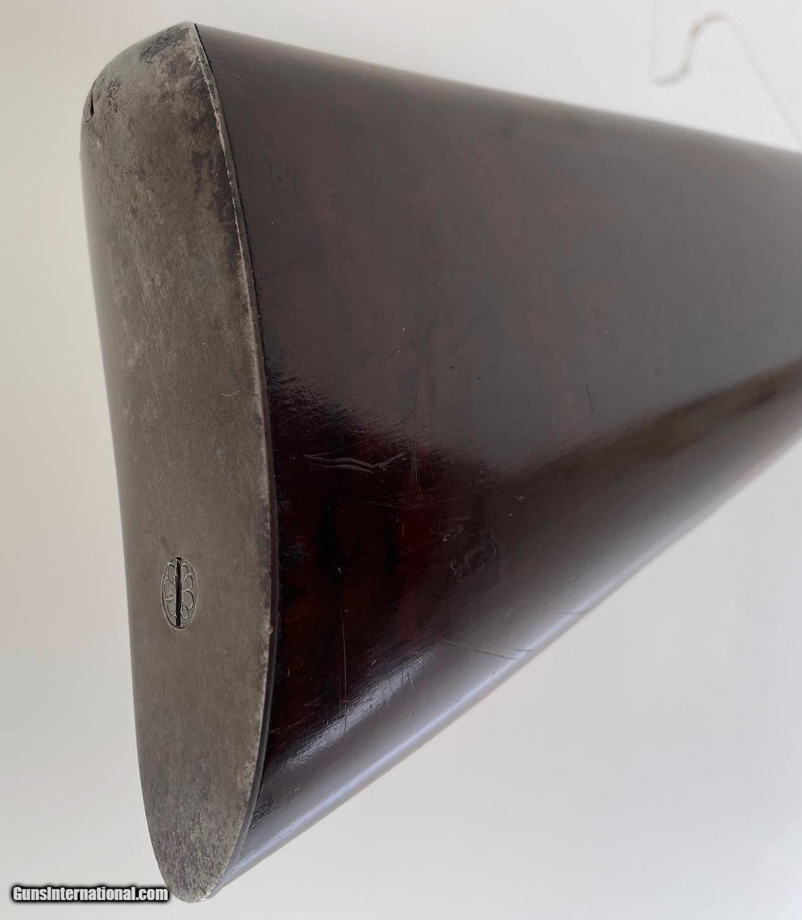 Description: Dimensions- Overall 48" Barrel 31.5" Bore diameter at muzzle .60" or 15.4 MM Pull 13.75" Condition-- Bore is bright and showing machine marks . The action is tight and crisp See photos No serial # or proofs SOLD Antique: Yes Manufacturer: Unknown |