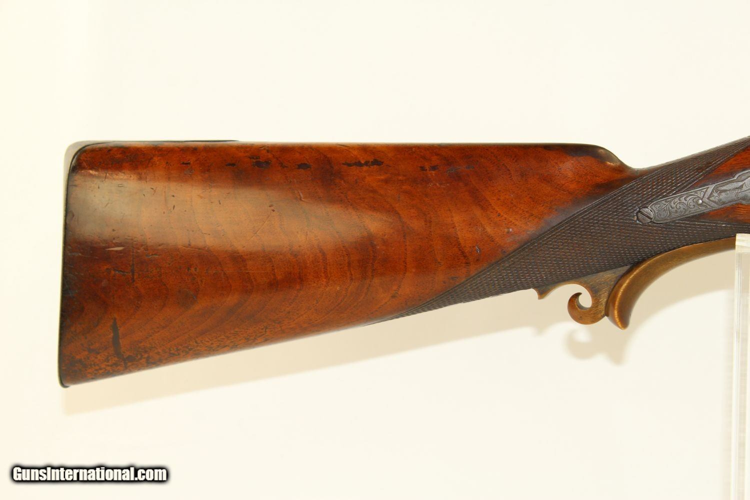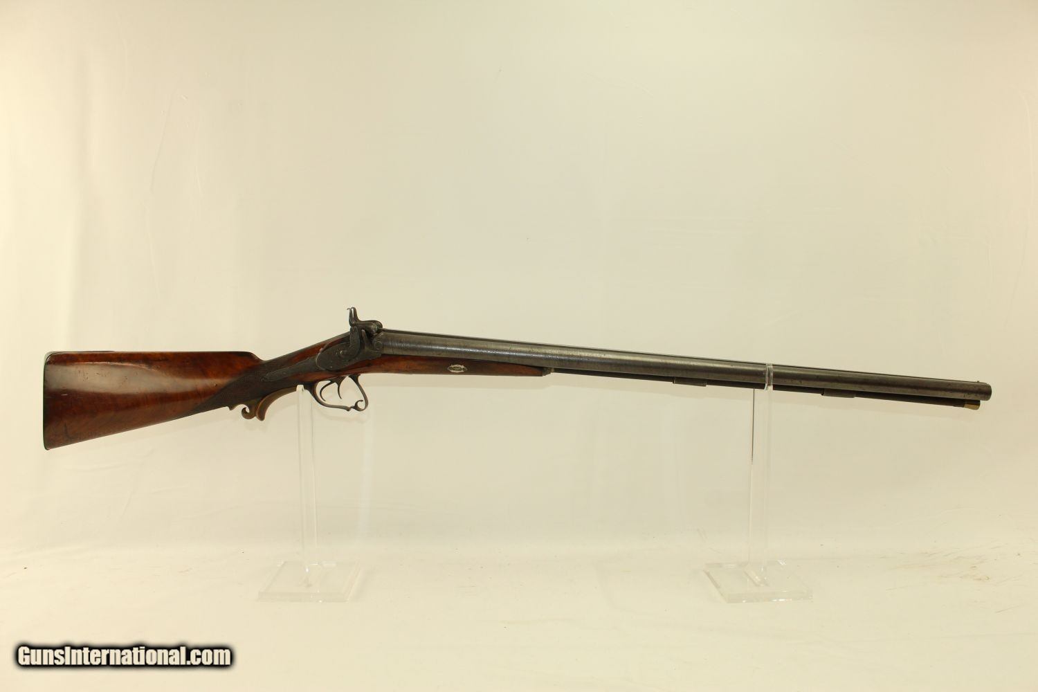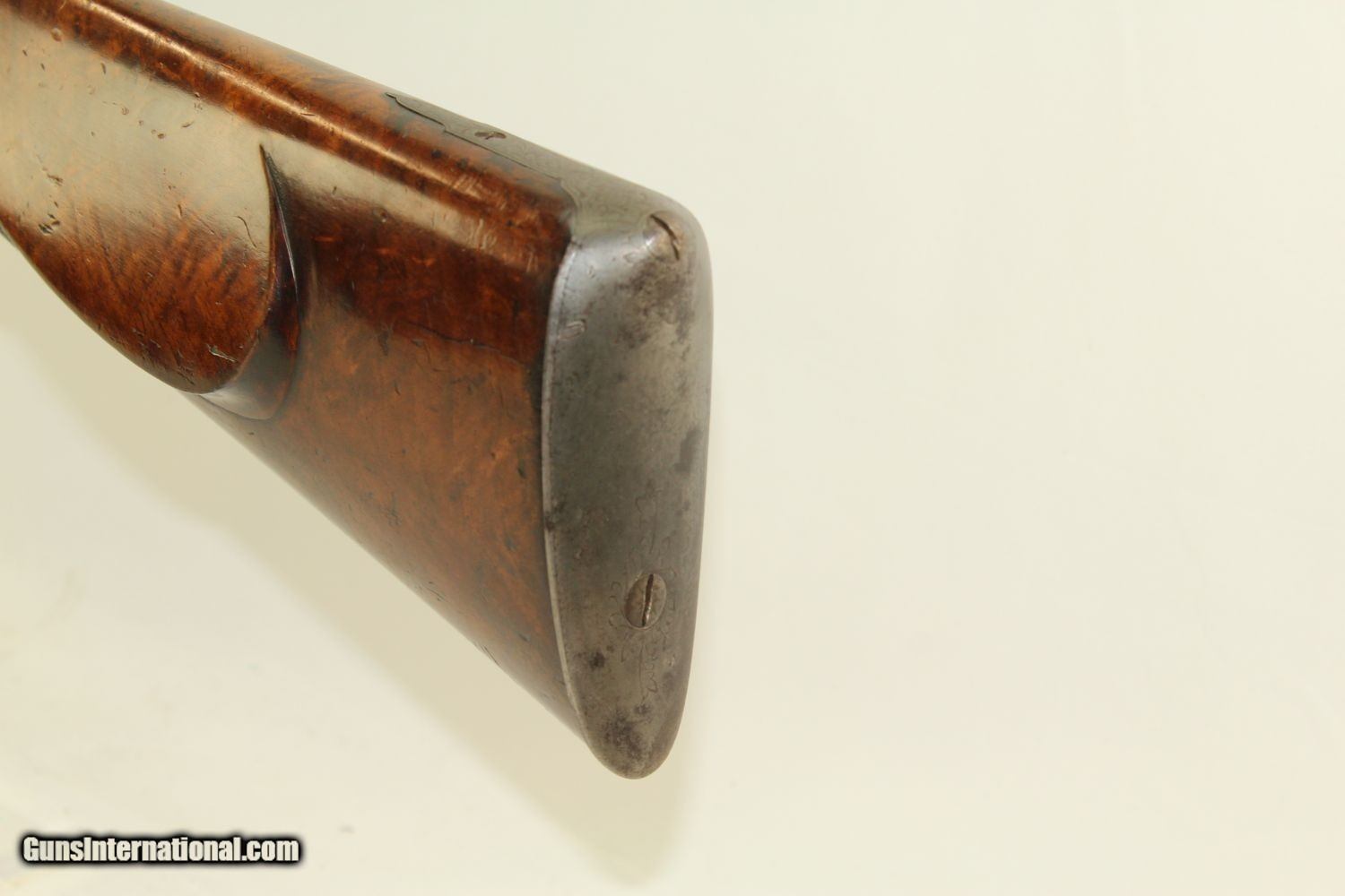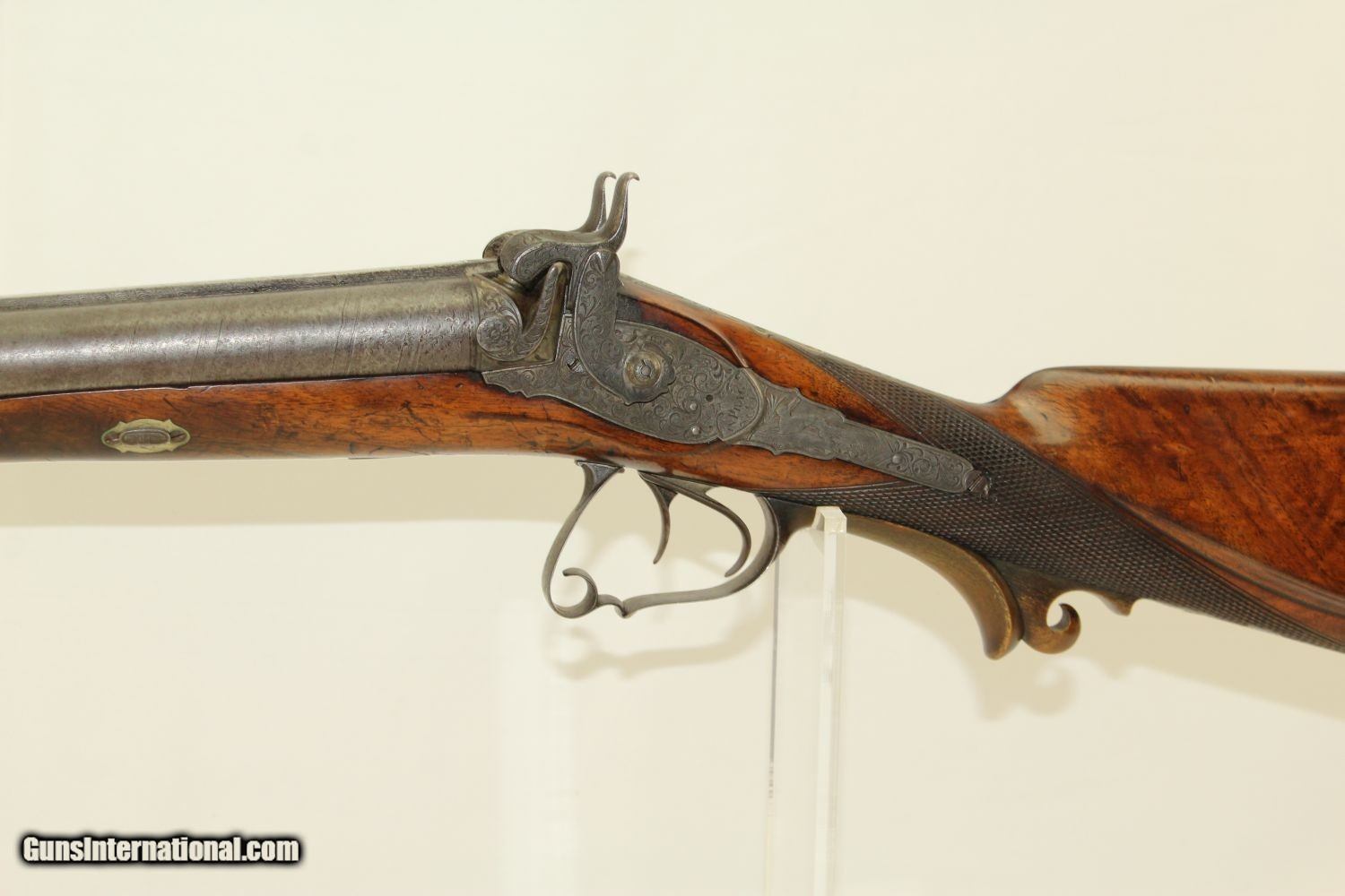 Description: BOHEMIAN Antique MATTHIAS MACH SidexSide HAMMER Shotgun MATYAS Prague Prag Gorgeous Engraved and GOLD INLAID Double Gun Here we present an Antique Percussion Side by Side Shotgun by Matthias (also spelled Matyas) Mach, made sometime in the mid-19th Century in Prague (Prag). Bohemia is the westernmost and largest historical region of the Czech lands in the present-day Czech Republic. In a broader meaning, Bohemia sometimes refers to the entire Czech territory. Prague was the capital of the region. Mach was a prestigious maker of high-end firearms in the mid-to-late 19th Century, his work featuring exquisite engraving as you can see here. This elegant shotgun features twin Damascus twist barrels with a full-length Damascene rib. The stock has a beautiful grain and a generous cheek rest on the left side. All the steel hardware is excellently scroll engraved and panels of game scenes are found on the locks (right: fox; left: rabbit), trigger guard (duck), barrel (game birds), and top tang (Bohemian man). “M MACH IN PRAG” can be observed on each lock and gilt on the top of the barrel. The trigger guard is large and curvaceous and is coupled with an extension off the back in horn. This is a very classy shotgun and one that would still perform beautifully on any of the game described above. The overall condition is fine. The barrels show their fine Damascene twist pattern. Fantastic gold accents. The stock has an excellent grain and remains smooth and solid. The bores are smooth and bright. The actions are excellent, strong and crisp. A very high-quality double gun from mid-19th Century Prague! Own the original! This is a legitimate antique and not a reproduction. Barrels are 28-3/4 inches. Caliber: 12 Gauge LOP: 14 inches Overall condition as seen in photos. Very Fast. Very Safe. FREE SHIPPING WORLDWIDE. Delivered directly to your door by express mail! Guaranteed AUTHENTIC & Includes CERTIFICATE OF AUTHENTICITY. ancestryguns $2875 #191035 SOLD Antique: Yes |