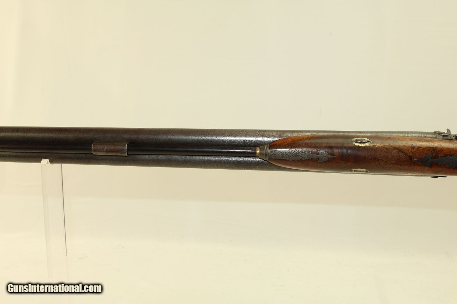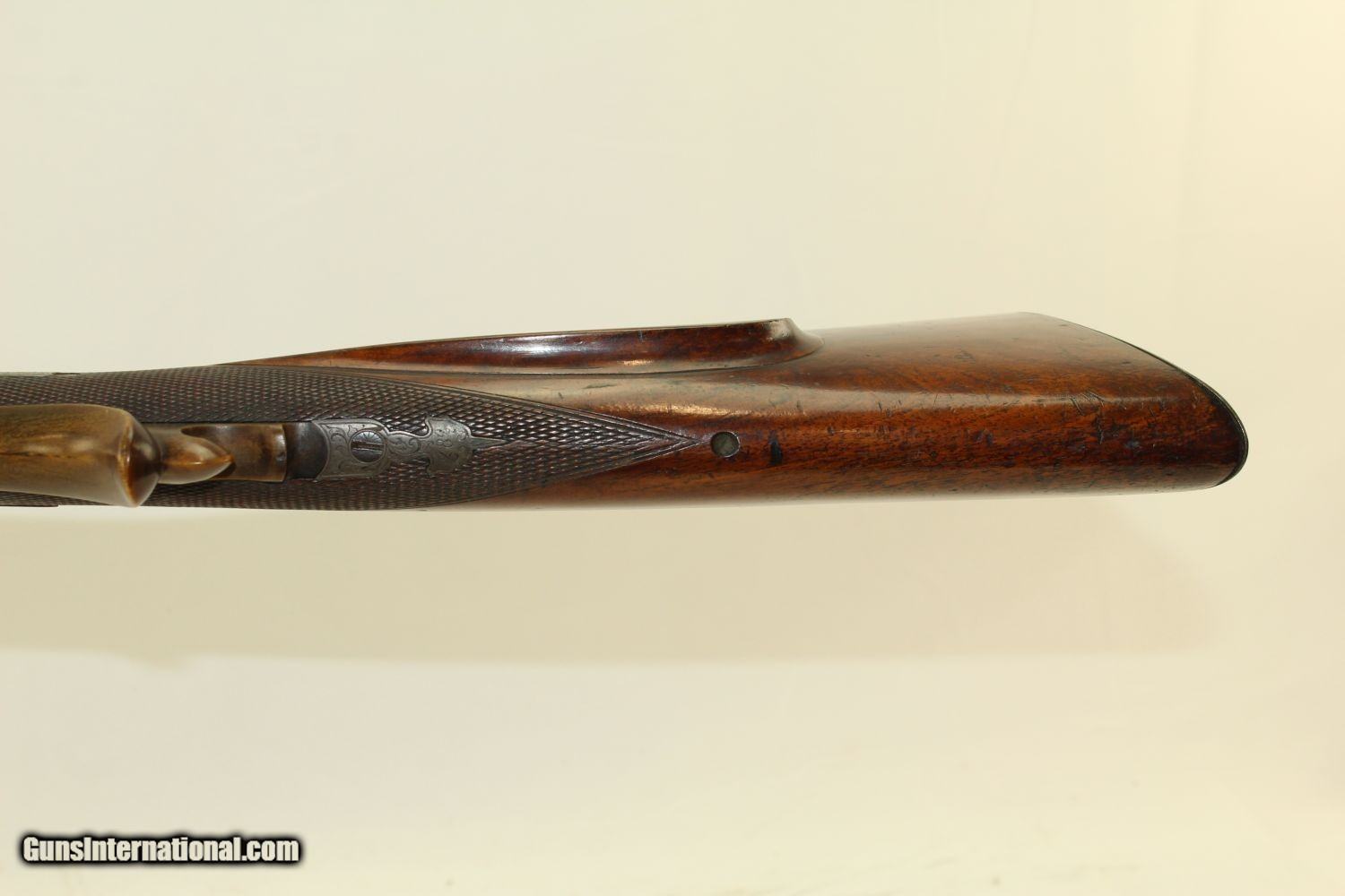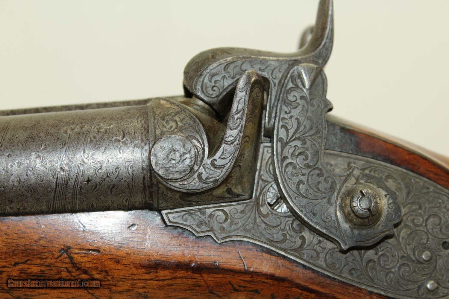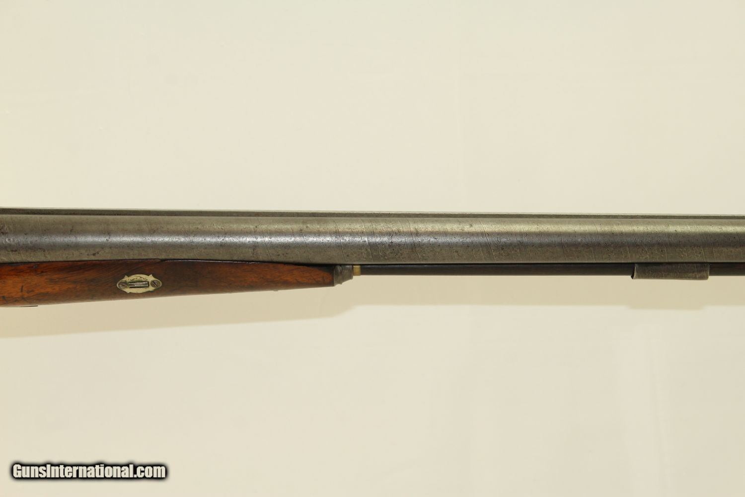 Description: BOHEMIAN Antique MATTHIAS MACH SidexSide HAMMER Shotgun MATYAS Prague Prag Gorgeous Engraved and GOLD INLAID Double Gun Here we present an Antique Percussion Side by Side Shotgun by Matthias (also spelled Matyas) Mach, made sometime in the mid-19th Century in Prague (Prag). Bohemia is the westernmost and largest historical region of the Czech lands in the present-day Czech Republic. In a broader meaning, Bohemia sometimes refers to the entire Czech territory. Prague was the capital of the region. Mach was a prestigious maker of high-end firearms in the mid-to-late 19th Century, his work featuring exquisite engraving as you can see here. This elegant shotgun features twin Damascus twist barrels with a full-length Damascene rib. The stock has a beautiful grain and a generous cheek rest on the left side. All the steel hardware is excellently scroll engraved and panels of game scenes are found on the locks (right: fox; left: rabbit), trigger guard (duck), barrel (game birds), and top tang (Bohemian man). “M MACH IN PRAG” can be observed on each lock and gilt on the top of the barrel. The trigger guard is large and curvaceous and is coupled with an extension off the back in horn. This is a very classy shotgun and one that would still perform beautifully on any of the game described above. The overall condition is fine. The barrels show their fine Damascene twist pattern. Fantastic gold accents. The stock has an excellent grain and remains smooth and solid. The bores are smooth and bright. The actions are excellent, strong and crisp. A very high-quality double gun from mid-19th Century Prague! Own the original! This is a legitimate antique and not a reproduction. Barrels are 28-3/4 inches. Caliber: 12 Gauge LOP: 14 inches Overall condition as seen in photos. Very Fast. Very Safe. FREE SHIPPING WORLDWIDE. Delivered directly to your door by express mail! Guaranteed AUTHENTIC & Includes CERTIFICATE OF AUTHENTICITY. ancestryguns $2875 #191035 SOLD Antique: Yes |