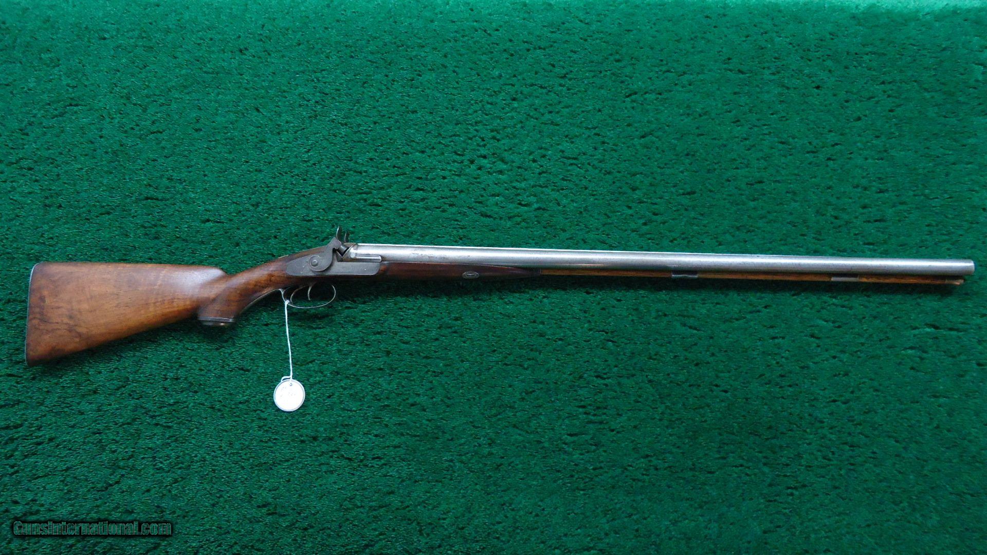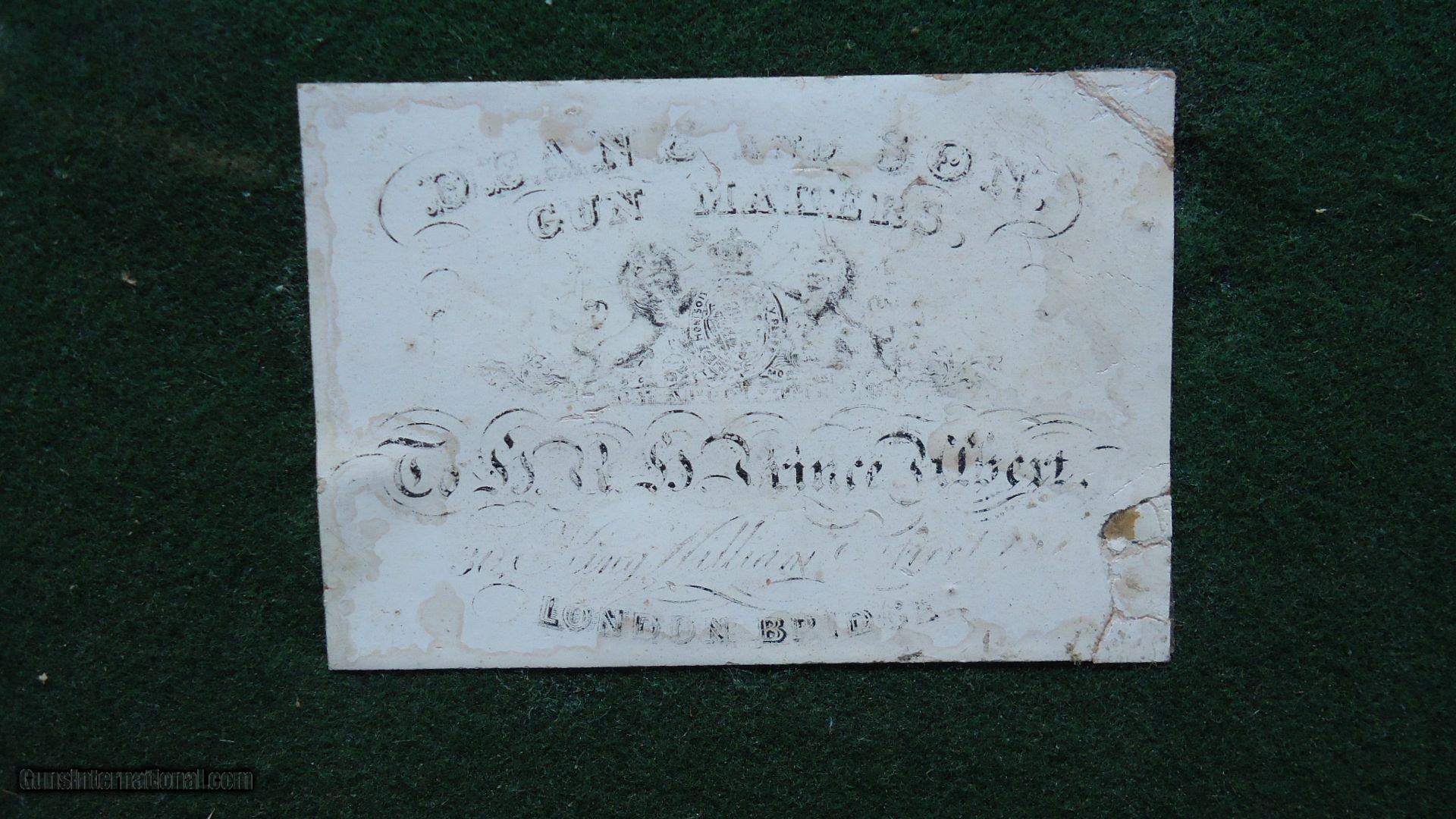 Description: Marked on the side plates is "George and John Deane". The hammers are marked "Deane patent 561" which is the serial number. Overall gun is in fairly good condition with a fair amount of wear to the checkering. Nice Walnut stock. Steel shotgun style buttplate. Overall gun appears to have been cleaned. Barrels have traces of Damascus showing and are basically a nickel color. Locks, hammers and upper tang are beautifully engraved but also have been cleaned slightly and are a gunmetal grey color with some lacquer having been put on the wood as well as the lock plates. Double triggers. 30 inch barrels. Fitted in an oak case with correct makers label still in place. Overall gun in generally good condition with a great engraving on the upper tang. Very crisp action. Nice gun! Leroy Merz Antique Firearms specializes in antique and vintage Winchesters and other fine American firearms. Since 1965 Mr. Merz has taken part in the world of firearms and has been a contributor to many well known reference books. We have hundreds of additional guns in every price range at our home online. Search for Merz Antiques in google. SOLD Antique: Yes |