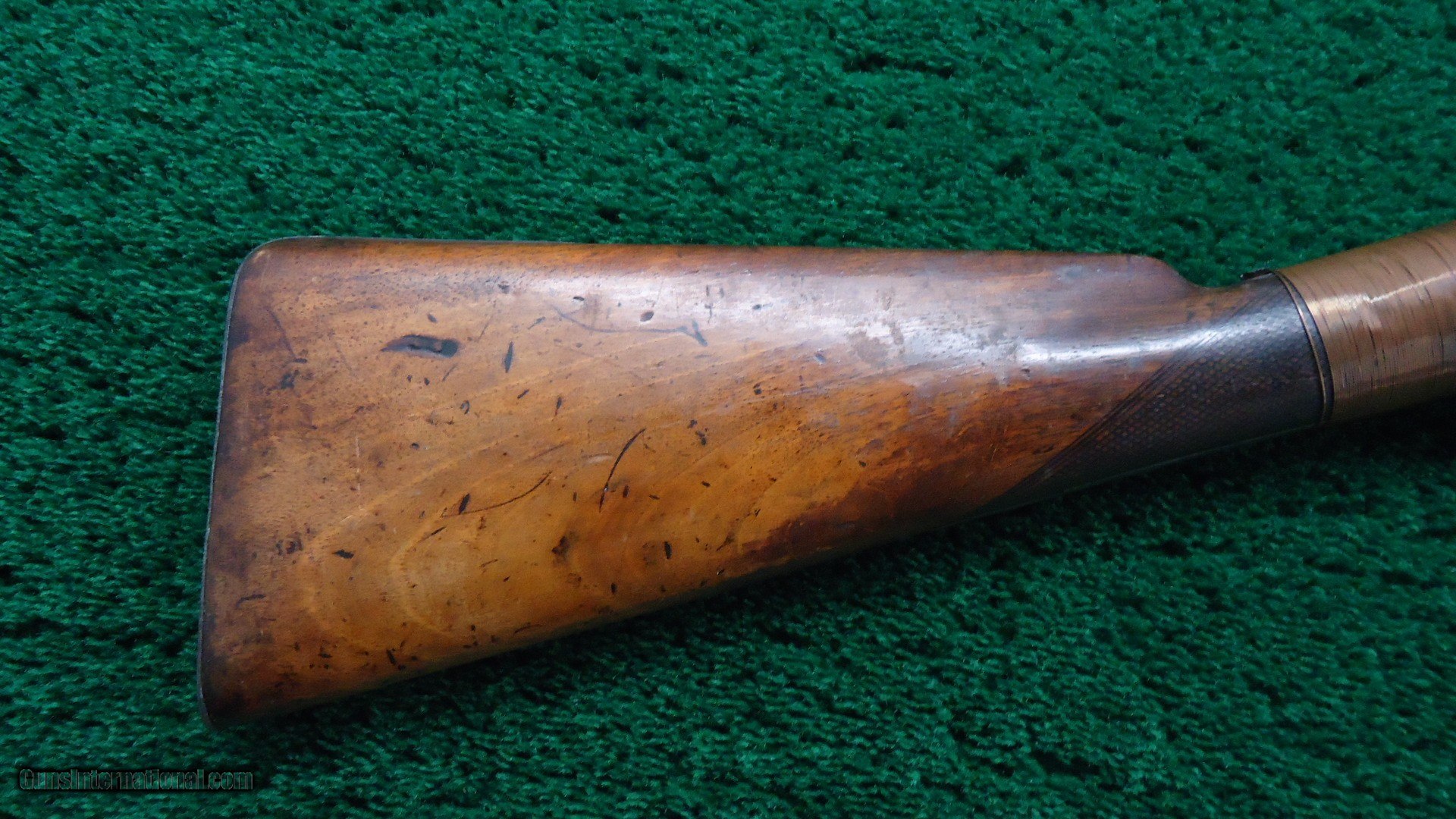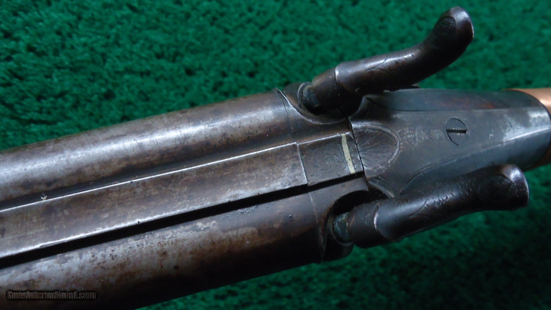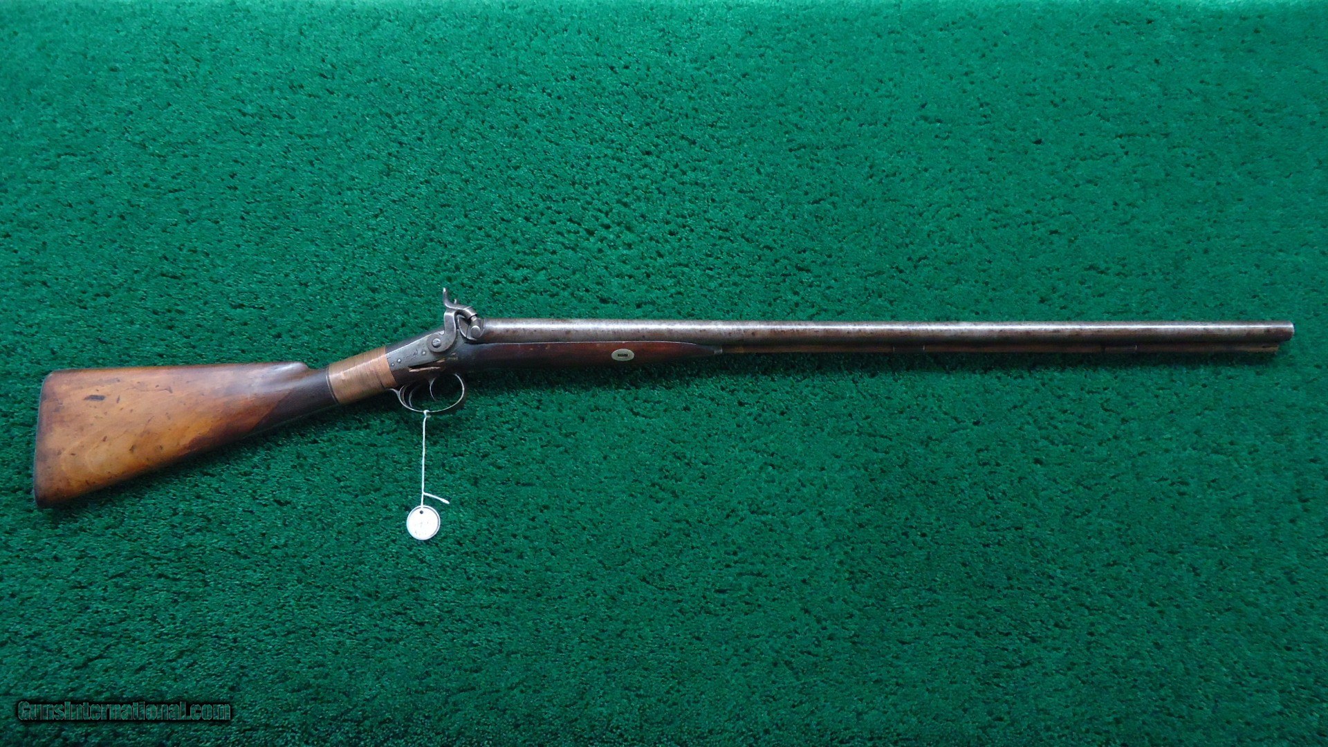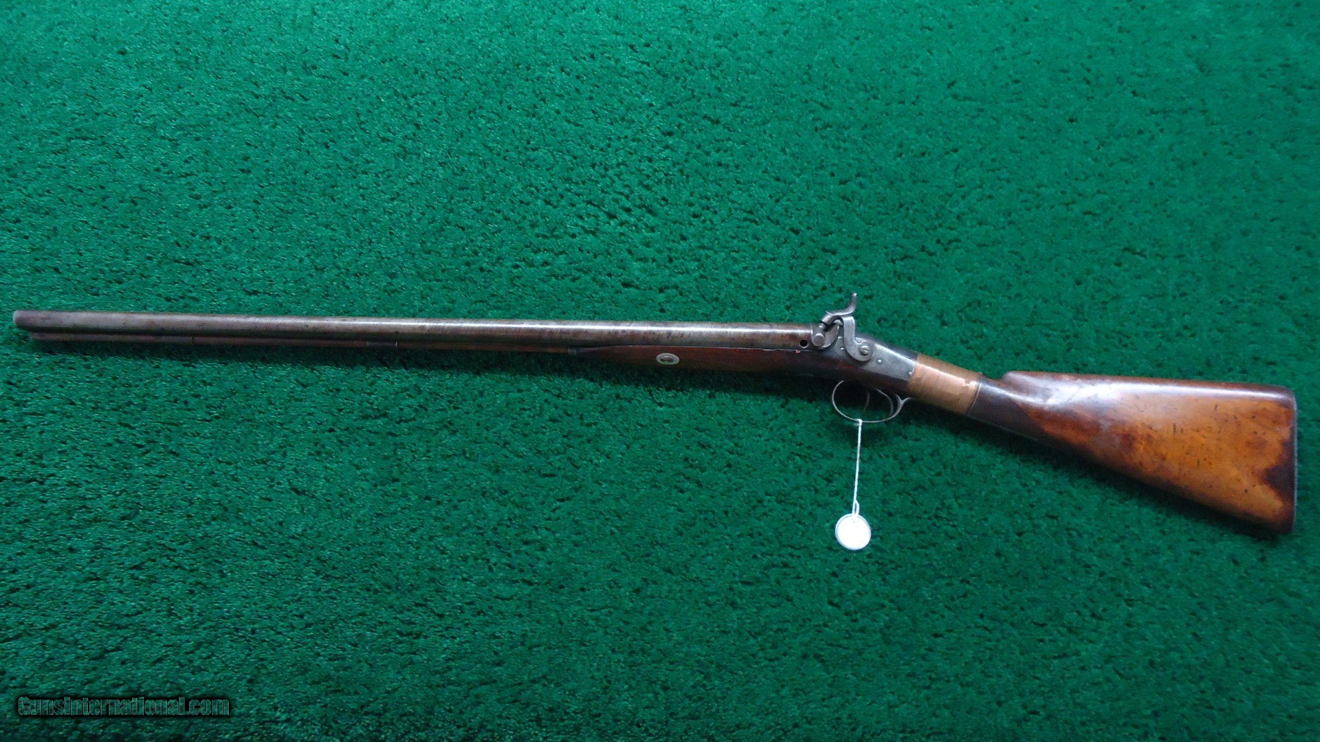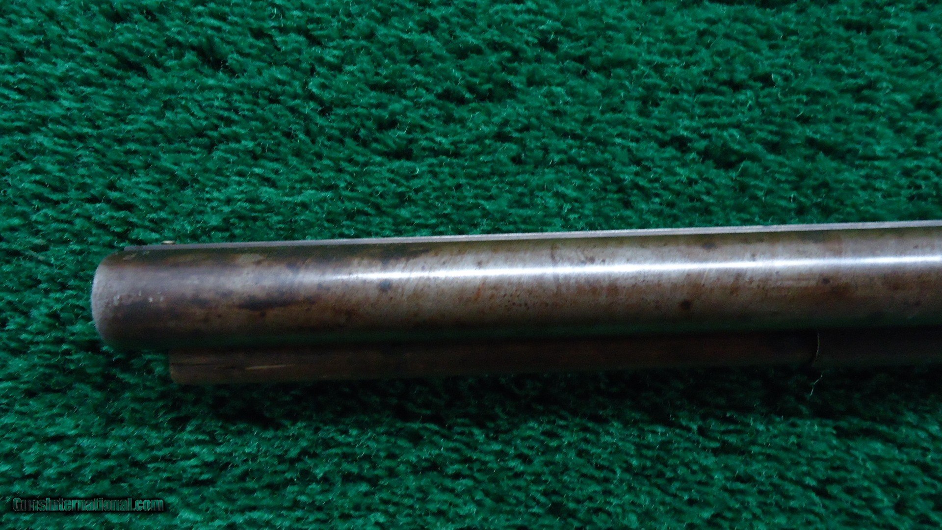 Description: Locks are nicely engraved. One is missing the hammer spring. The other side functions fine. Apparently the gun was broken at the wrist since there is numerous strands of copper wire wrapped there. Bores are fair. Barrels measure 29-1/2 inches. There are no markings visible. There is a hole drilled at the back of the barrel making this gun inoperable. Ramrod is present. Steel buttplate. Will be a cool wall hanger. Leroy Merz Antique Firearms specializes in antique and vintage Winchesters and other fine American firearms. Since 1965 Mr. Merz has taken part in the world of firearms and has been a contributor to many well known reference books. We have hundreds of additional guns in every price range at our home online. Search for Merz Antiques in google. SOLD Antique: Yes Shotgun Gauge: 14 Gauge |