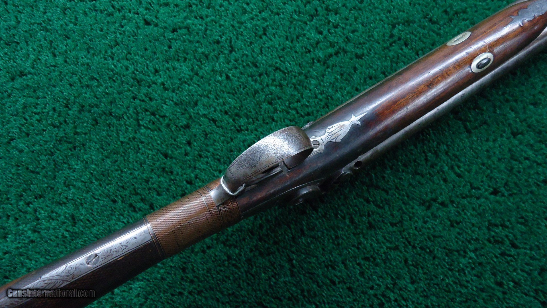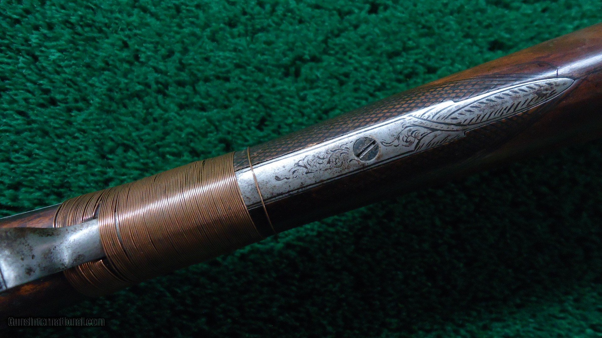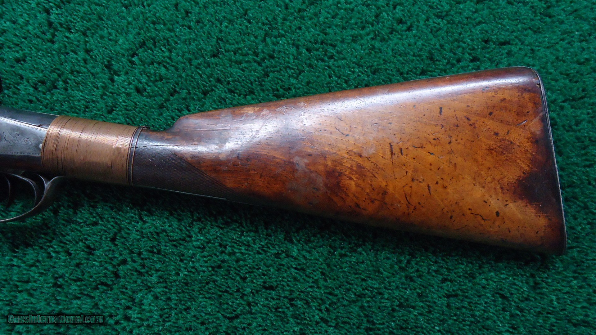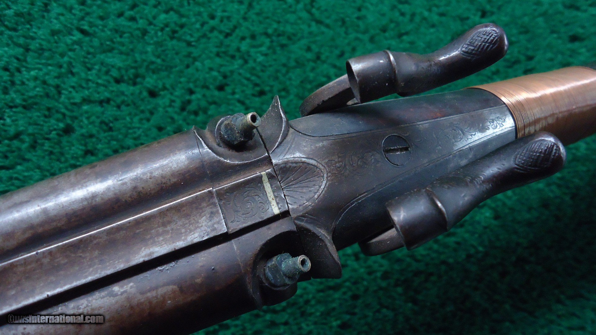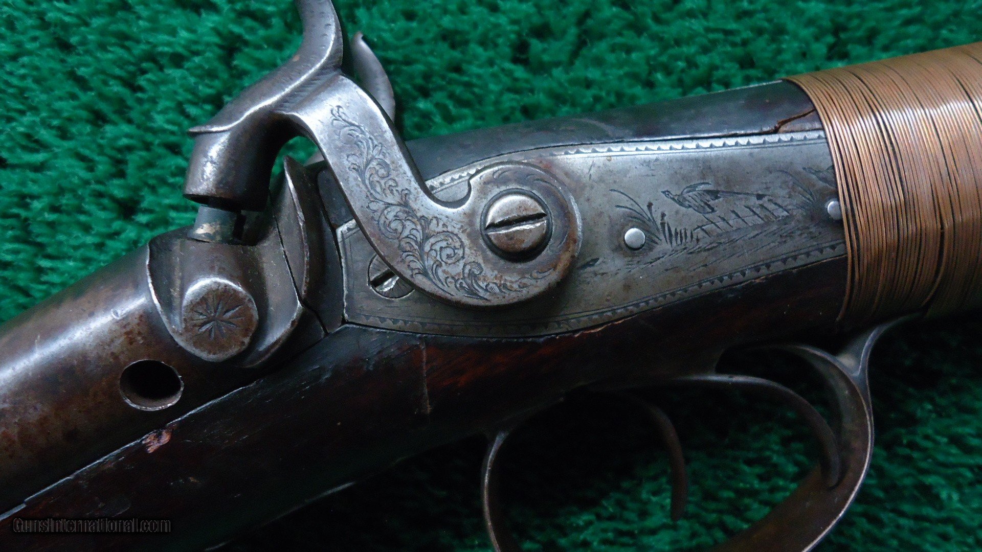 Description: Locks are nicely engraved. One is missing the hammer spring. The other side functions fine. Apparently the gun was broken at the wrist since there is numerous strands of copper wire wrapped there. Bores are fair. Barrels measure 29-1/2 inches. There are no markings visible. There is a hole drilled at the back of the barrel making this gun inoperable. Ramrod is present. Steel buttplate. Will be a cool wall hanger. Leroy Merz Antique Firearms specializes in antique and vintage Winchesters and other fine American firearms. Since 1965 Mr. Merz has taken part in the world of firearms and has been a contributor to many well known reference books. We have hundreds of additional guns in every price range at our home online. Search for Merz Antiques in google. SOLD Antique: Yes Shotgun Gauge: 14 Gauge |
