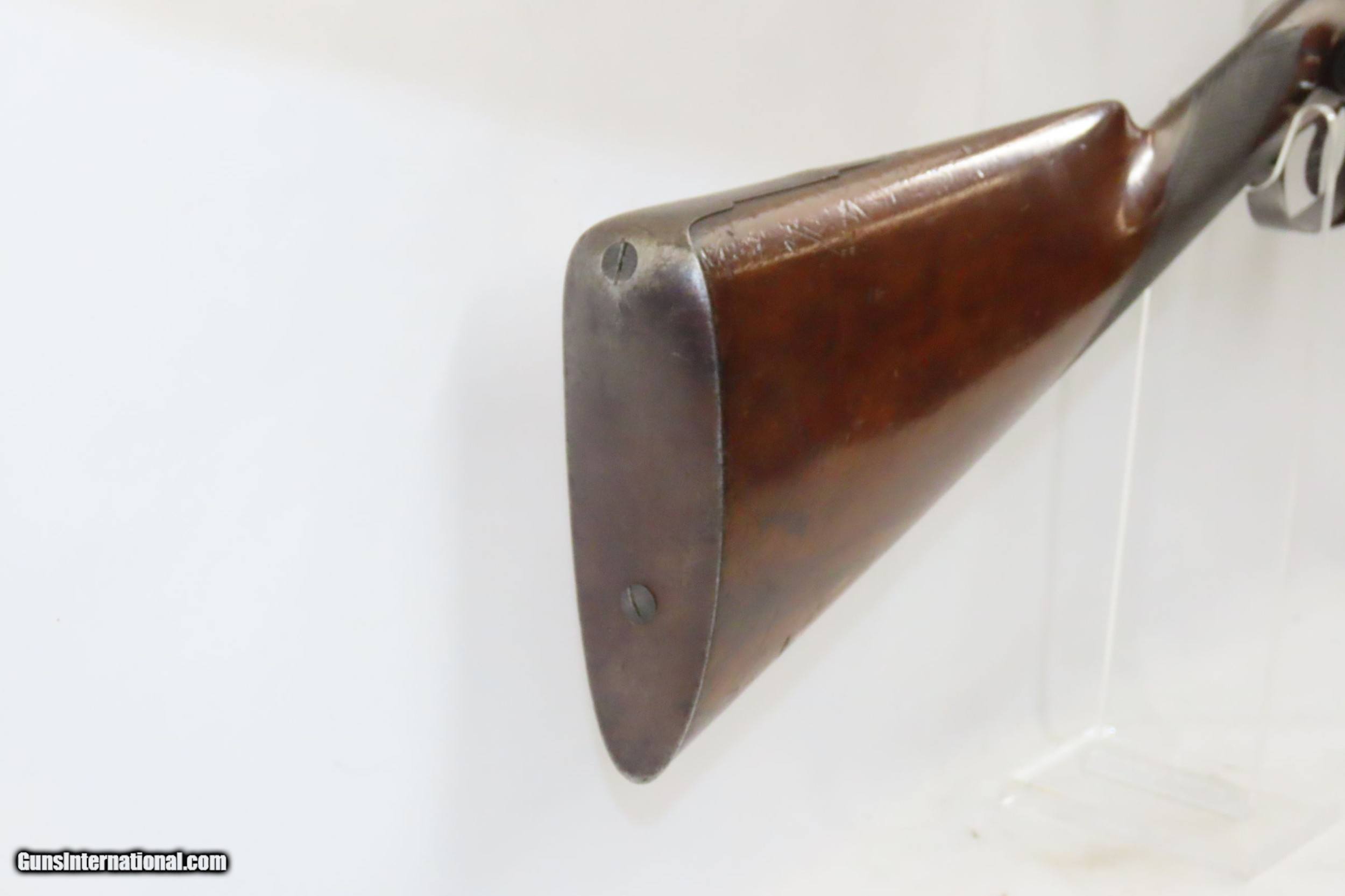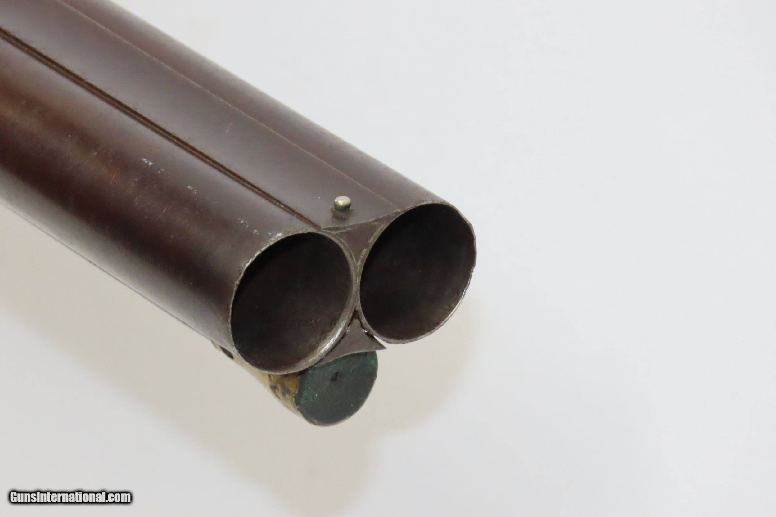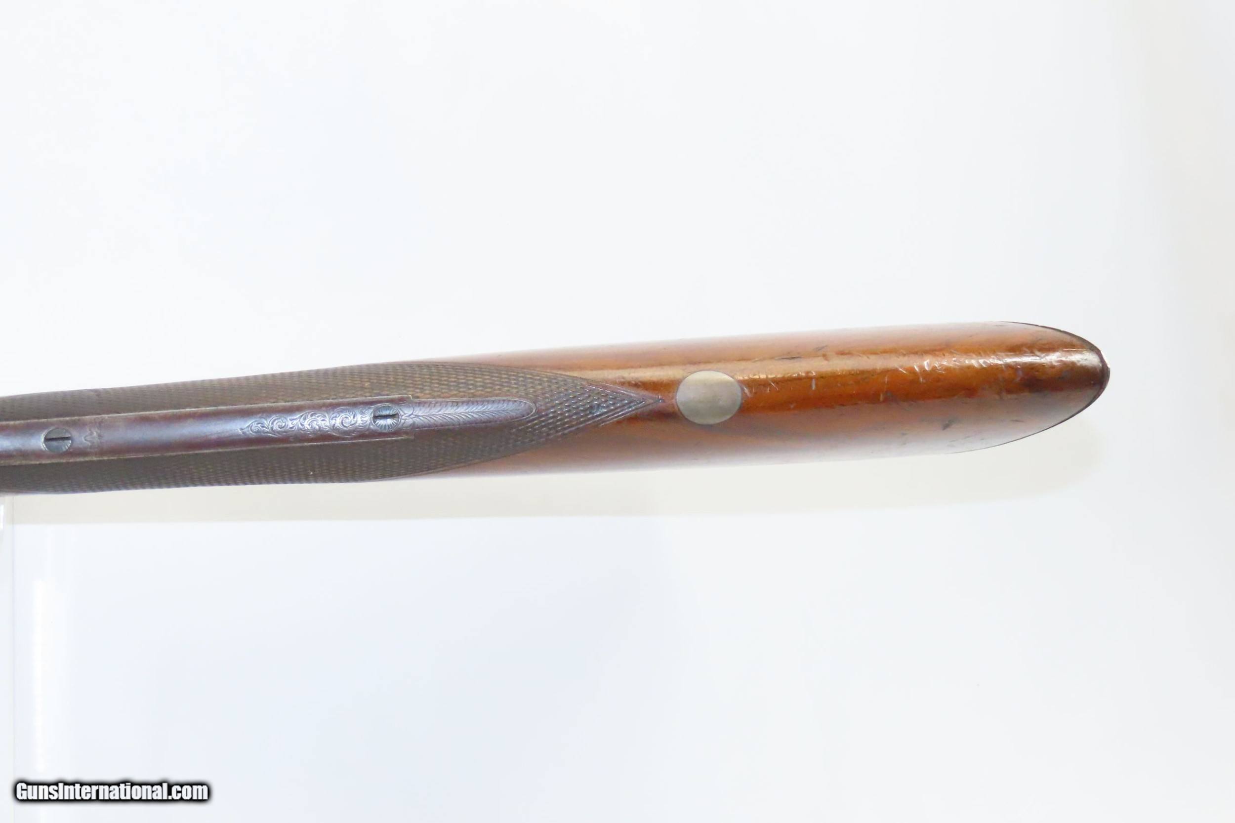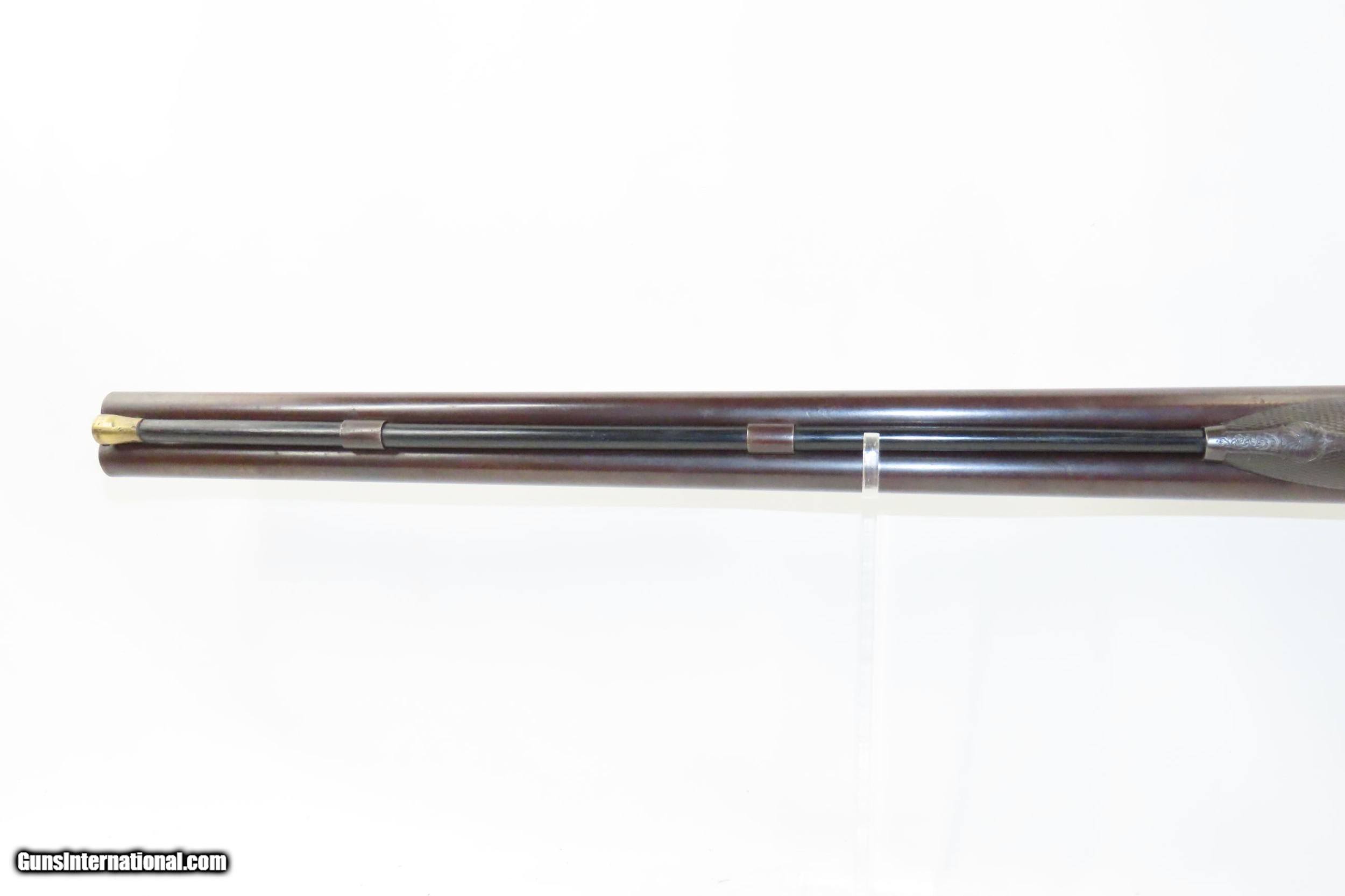 Description: ENGRAVED Antique JD SMITH Percussion Double Barrel 12 Gauge HAMMER Shotgun Engraved SIDE x SIDE Double Barrel Fowling Gun Here we present an antique English J.D. Smith Double Barrel Percussion Side by Side Hammer Shotgun, made sometime in the mid-19th Century in Braintree, England. Braintree is a town in Essex, England located 10 miles northeast of Chelmsford and 15 miles west of Colchester. It features a half-length stock and it is really quite light and handy compared to many of its American contemporaries. This would likely have been exported from England to a country like the United States with a thriving market for all sorts of firearms. As people moved West and settled in remote areas, hunting was especially important to put food on the table and for protecting the homestead. This would have been a good gun for fowl hunting. The rib is marked “J.D. SMITH. BRAINTREE.” and has game scenes on both sides of the lock. The overall condition is nearing fine. Robust action (modern nipples). The bore is clear and remains in good shape for its age. The stock is solid with a nice smooth finish and checkering. Sharp engravings. The left barrel has a few small dents. Own the original! This is a legitimate antique and not a reproduction. Barrels: 28-1/2 inches. Caliber: 12 Gauge Percussion Length of Pull: 14-5/16 inches Overall condition as seen in photos. Very Fast. Very Safe. FREE SHIPPING WORLDWIDE. Delivered directly to your door by express mail! Guaranteed AUTHENTIC & Includes CERTIFICATE OF AUTHENTICITY. ancestryguns $1825 #217481 SOLD Antique: Yes |