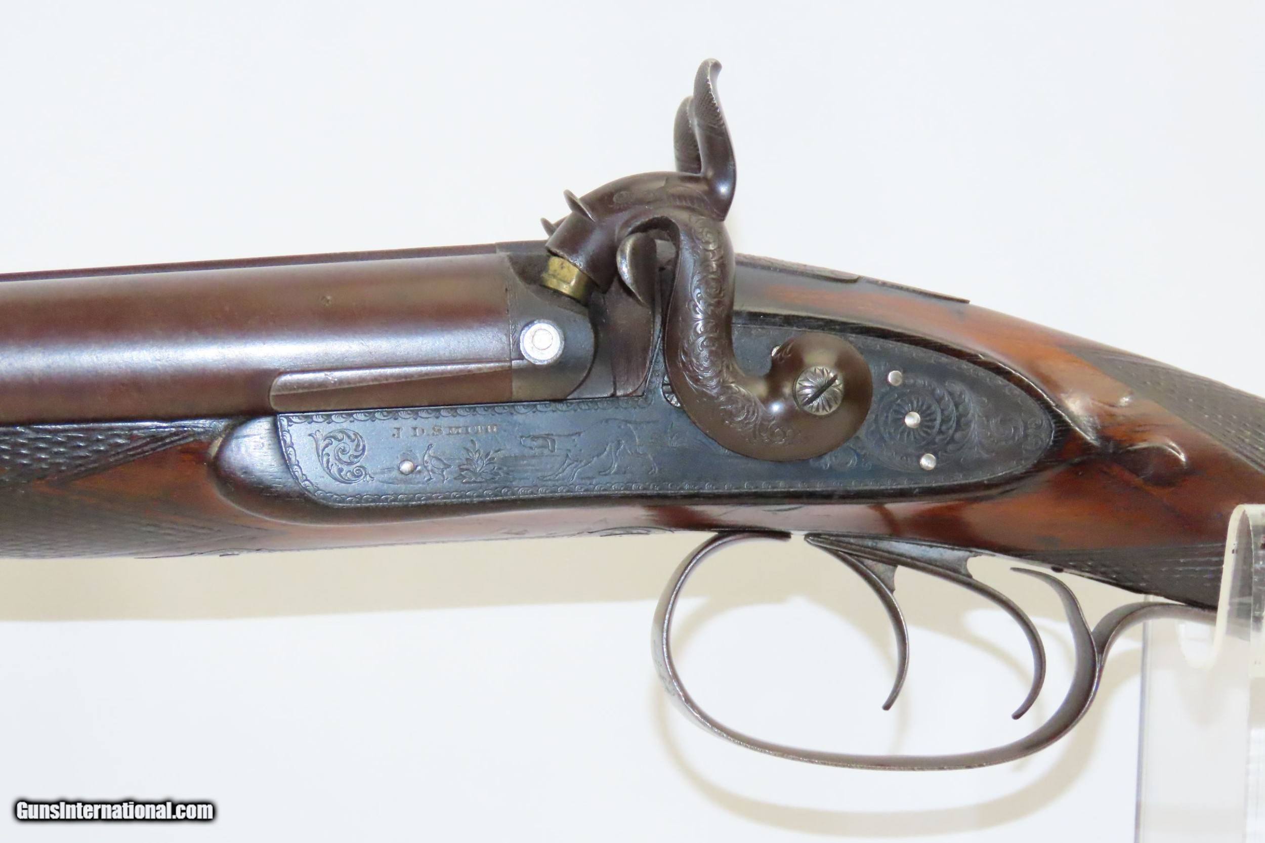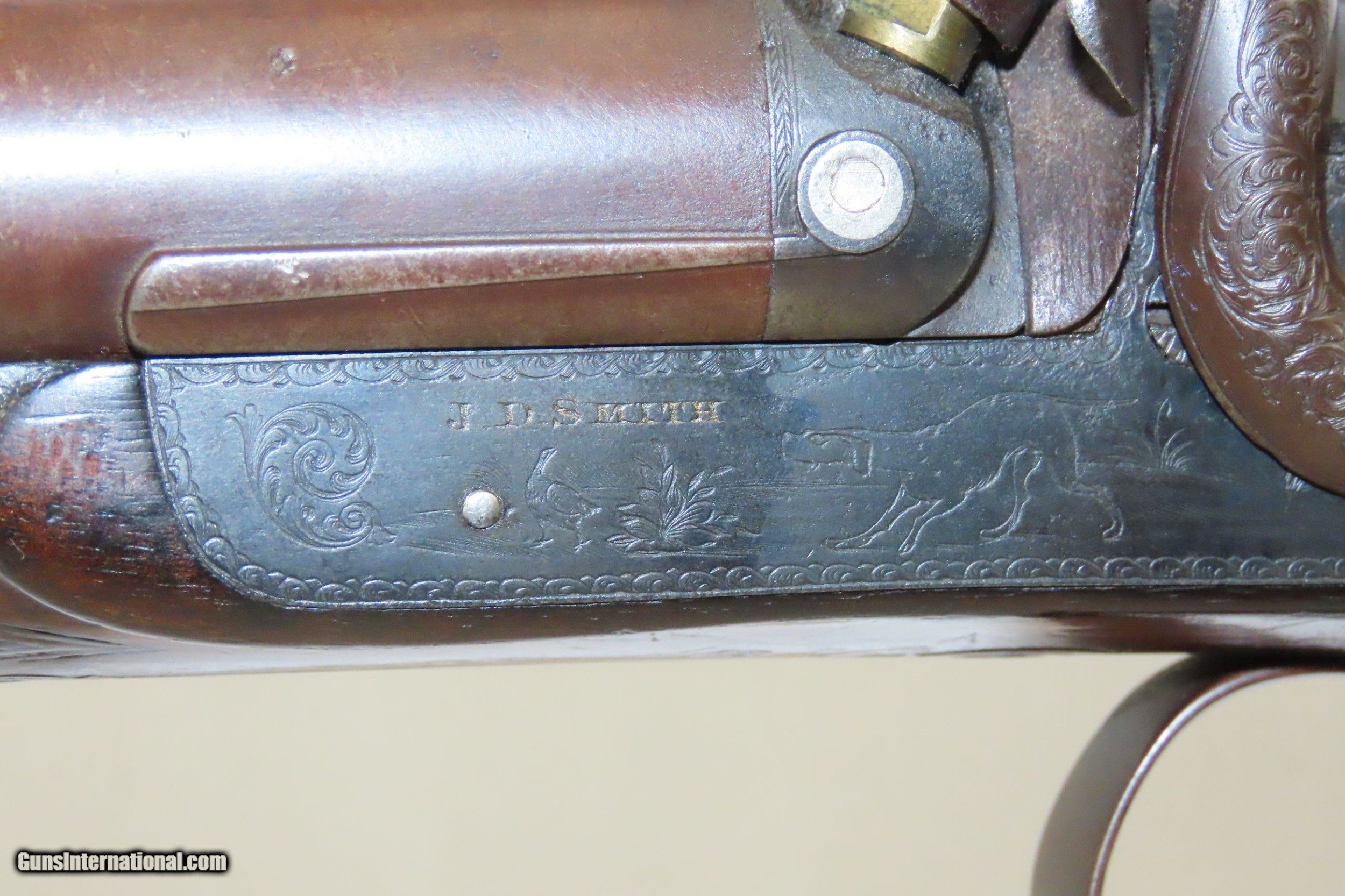 ENGRAVED Antique JD SMITH Percussion Double Barrel 12 Gauge HAMMER Shotgun