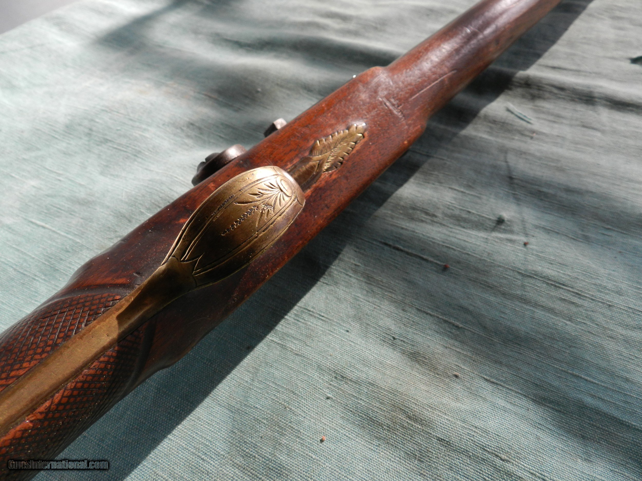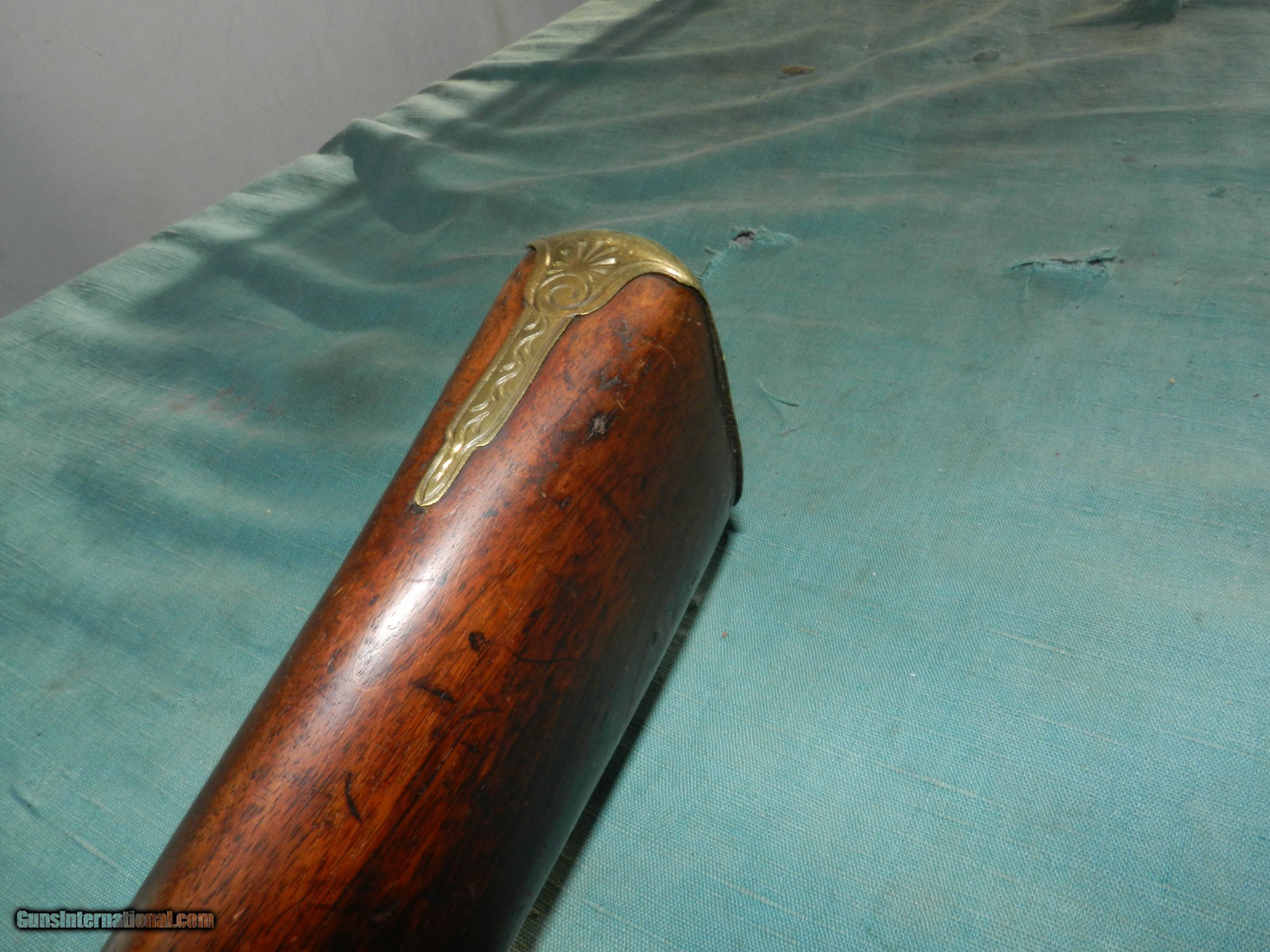 Description: Overall length length is about 61" long, with a 46" long smooth bore12 ga. barrel with a Leige proof mark in a circle on the top near the breeh..All metal parts are brown patina, and the percussion lock works well. The French walnut stock hand checkered wrist area is clean with no issues, and there is brass furniture present, with a haedwood ram-rod. The brass trigger guard is chisel engraved.When buying a gun always have it examined by a competent gunsmith before shooting. To buy a gun from me you must get a direct email for me, with details, and shipping cost. We don’t have a web site .I prefer money orders or a check. Item ships when funds come in. I try to keep guns affordable, which means I make less money than most dealers. You won’t get altitude sickness, or nose bleed, with my prices! I consistently have the best selection of older guns If you attempt to buy, you must still contact us for details . Best to email to buy. Sometimes a local person can stop buy and purchase before the gun is removed. Sometimes not home to get calls. Some guns are required shipment to a gun dealer near you for a transfer to you when it arrives. Otherwise many older or black powder guns ship to your door. With the widest selection of older guns at great prices, We don’t have a store, and sell on the internet only. I’m easy to get along with. Thank You SOLD Antique: Yes |
