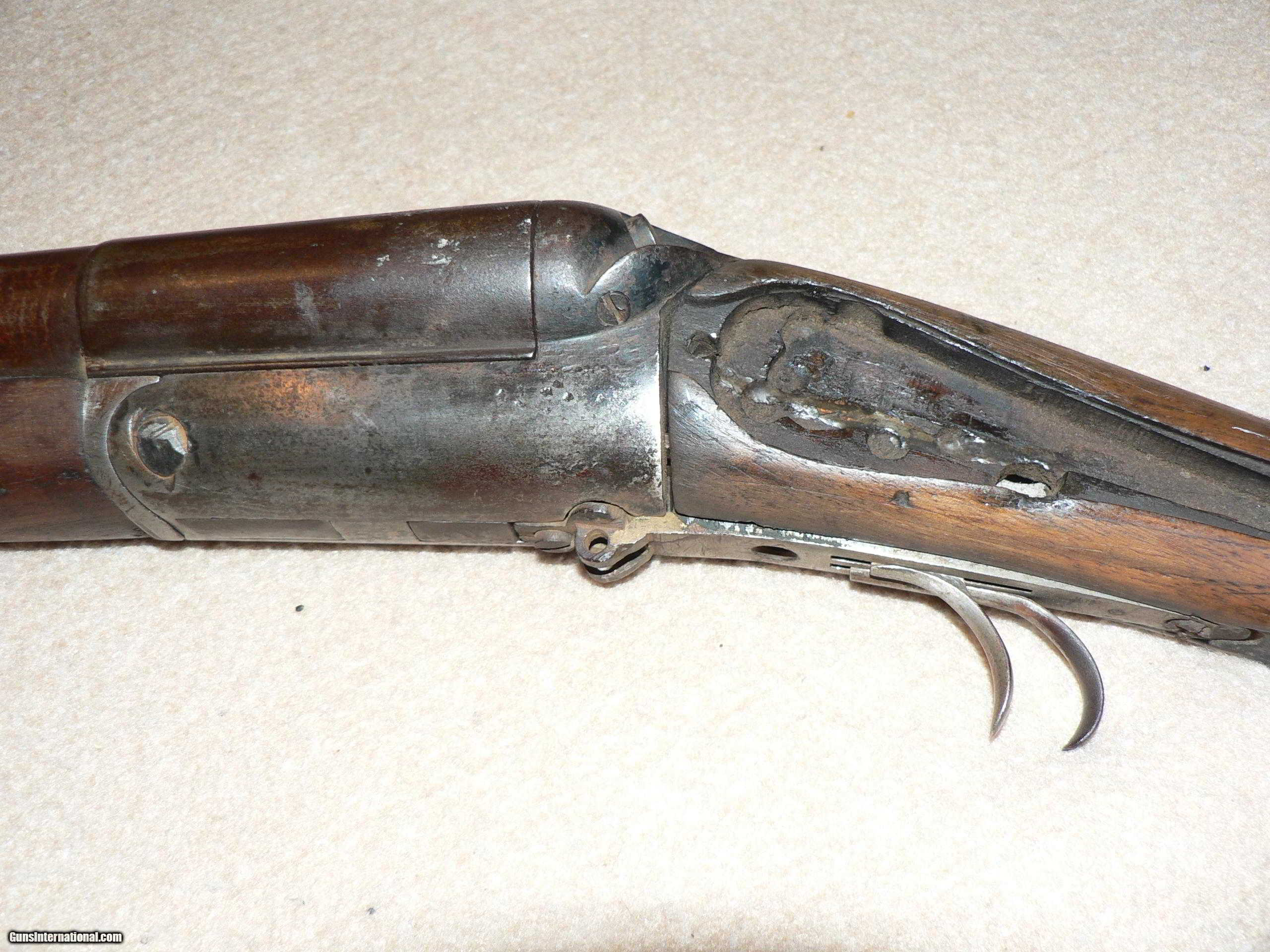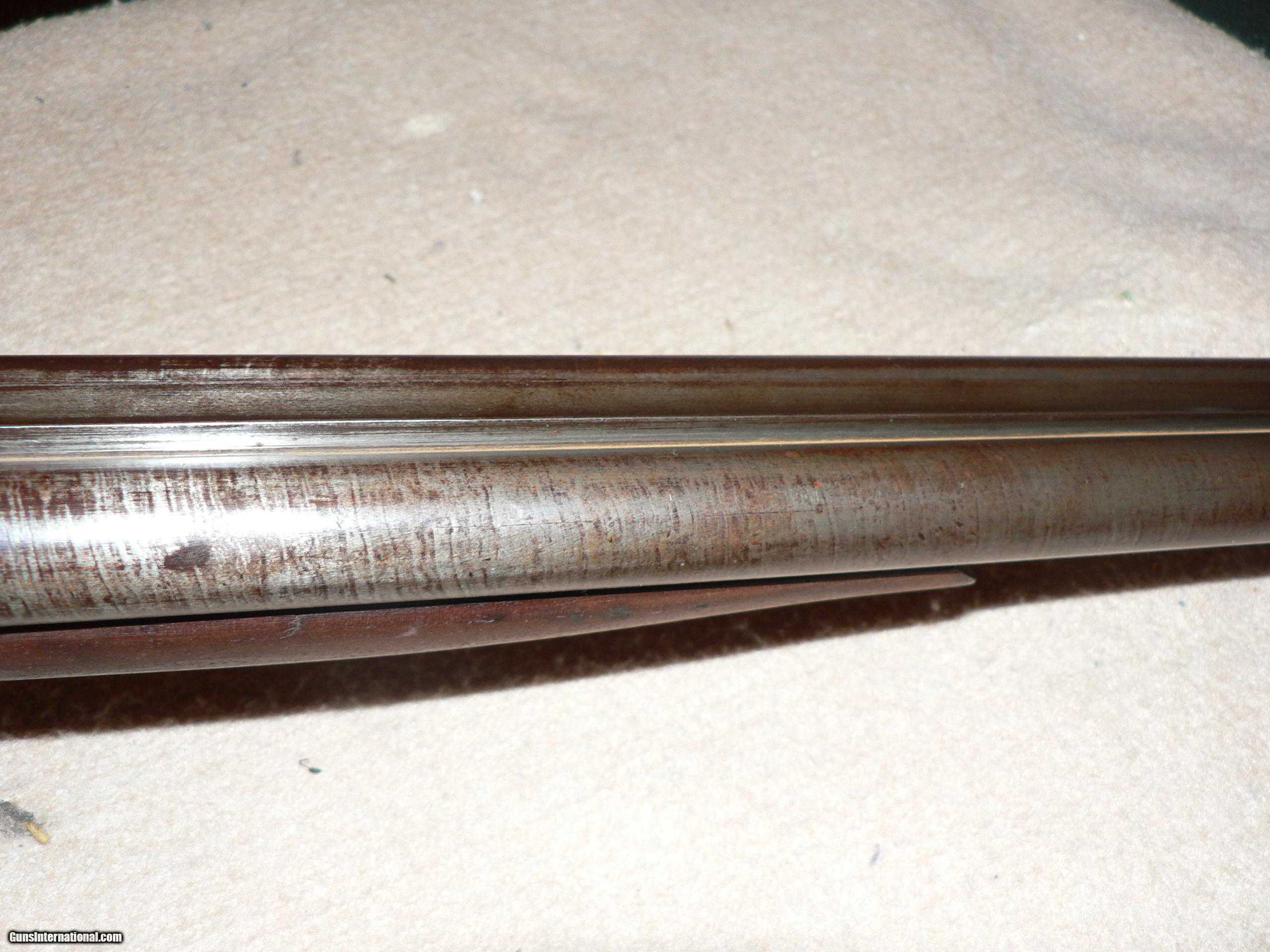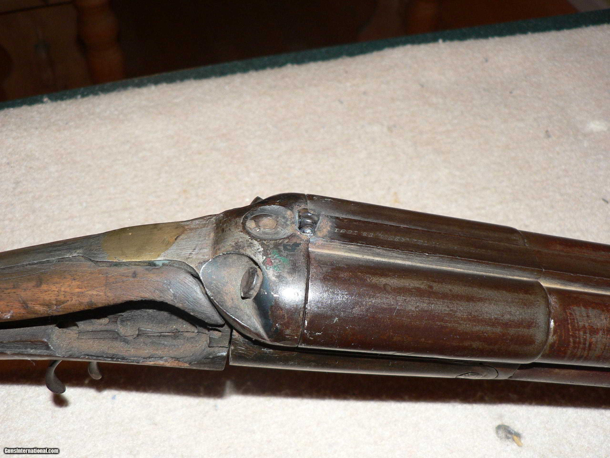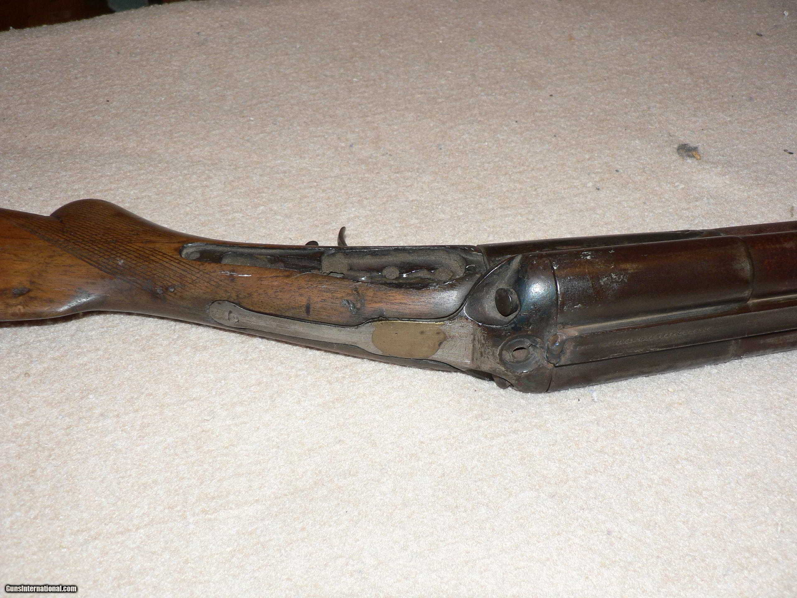 Description: Henri Pieper Black powder double barrel shotgun-12 ga. Parts gun or wall hanger. Good quality shotgun in its day. Weld on receiver, barrels-frame,triggers etc. look OK. Could be restored but a lot of work. Non functioning, non gun. No restrictions. Sold for parts. Will ship for shipping/handling. Please look on this ad for others by same seller-Collector W SOLD Curio/Relic: Yes Antique: Yes Manufacturer: Henri Pieper Condition: Poor Metal Condition: OK Wood Condition: Poor Bore Condition: OK Barrel Type: Blackpowder Gauge Info: 12 ga. |