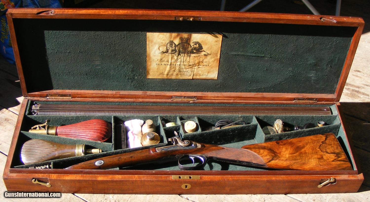 Description: Original 20 ga. John Manton. 29 in barrels, cira 1813, This is the genuine real thing. Engraving all recut, case coloring, wood, blacking, everything totally redone. Excellent bores, ready to shoot and use as the pictures show. This gun was featured in the 2015 summer issue of the Double Gun Journal, the article "The Mantons". The case is full of the most wonderful accutraments. The case itself is of the finest old Mahogany. Please call Kim Aylworth at 906-396-4029 SOLD Antique: Yes Manufacturer: John Manton |