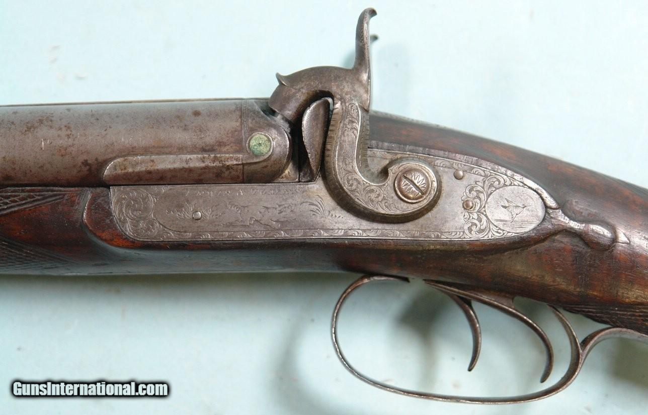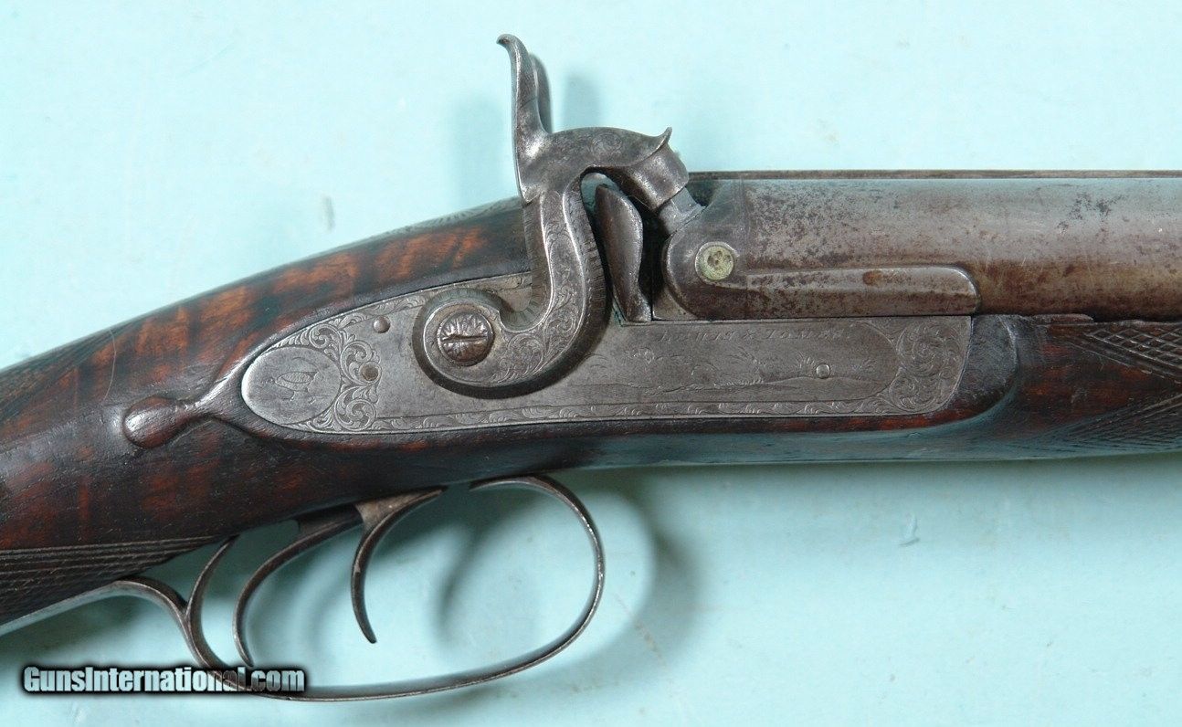 LEWIS & TOMES, NEW YORK CITY IMPORT PERCUSSION 12 GA. SIDE X SIDE SHOTGUN CIRCA 1840.