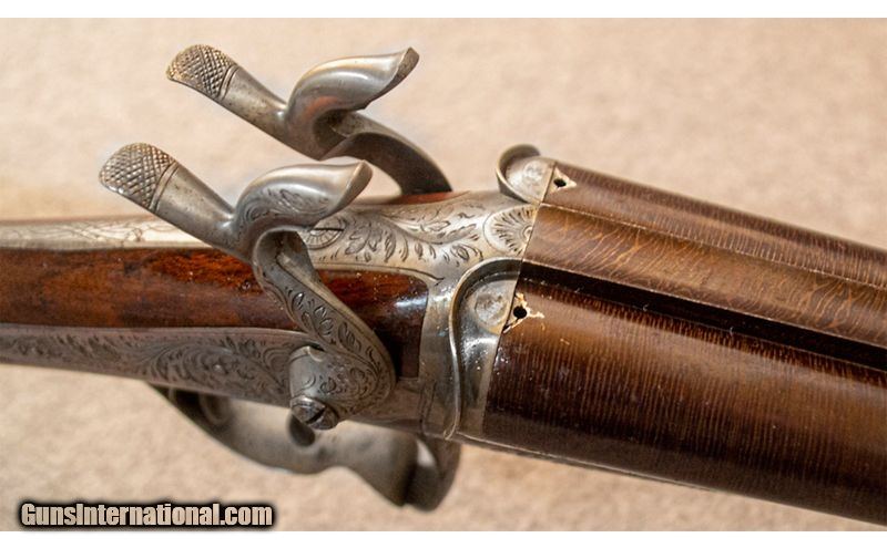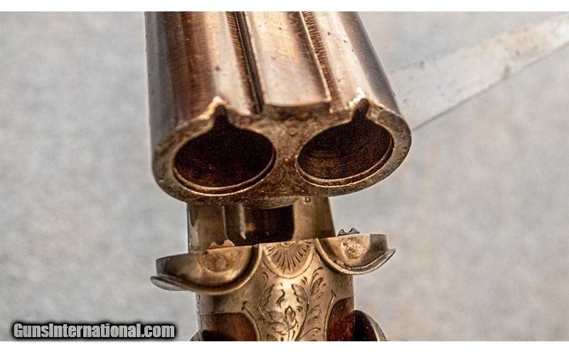 Description: This shotgun is a pinfire firearm. The first pinfire shotgun was made in 1812 and was attempted to be improved throughout the 1800s. None SOLD Antique: Yes Metal Condition: Very Good Wood Condition: Very Good Bore Condition: Very Good Barrels: 29.5 inches Stock Dimensions: Length of pull is 13.5/ 12.5 inches. Drop at comb is 2 inches. Drop at heel is 2.5 inches. Weight: 7.05 pounds Chokes: Full and Improved cylinder Item Location: Lone Tree, CO |