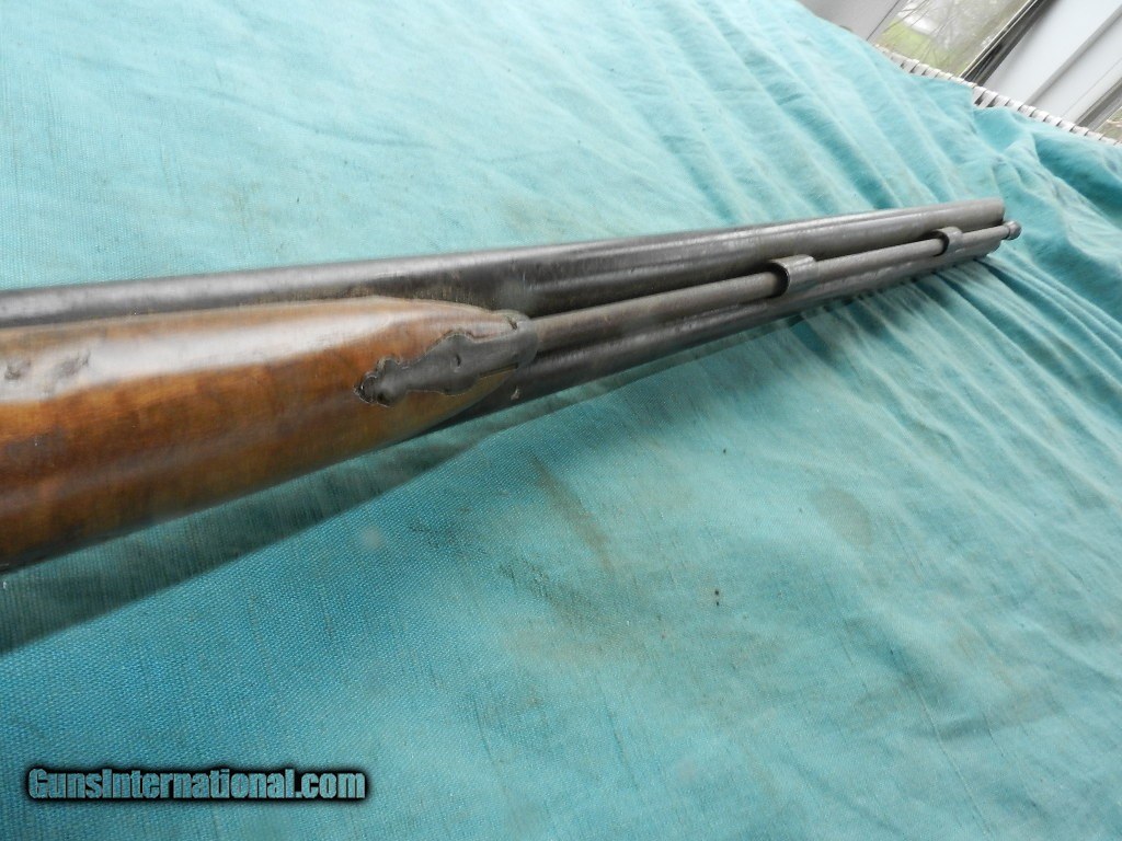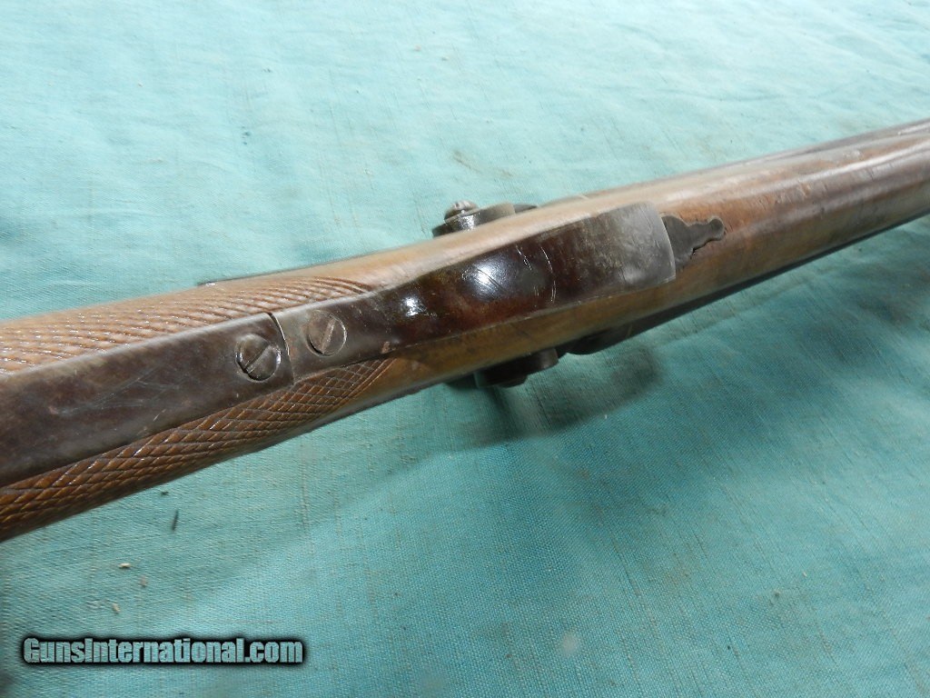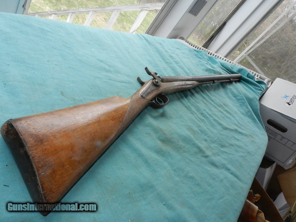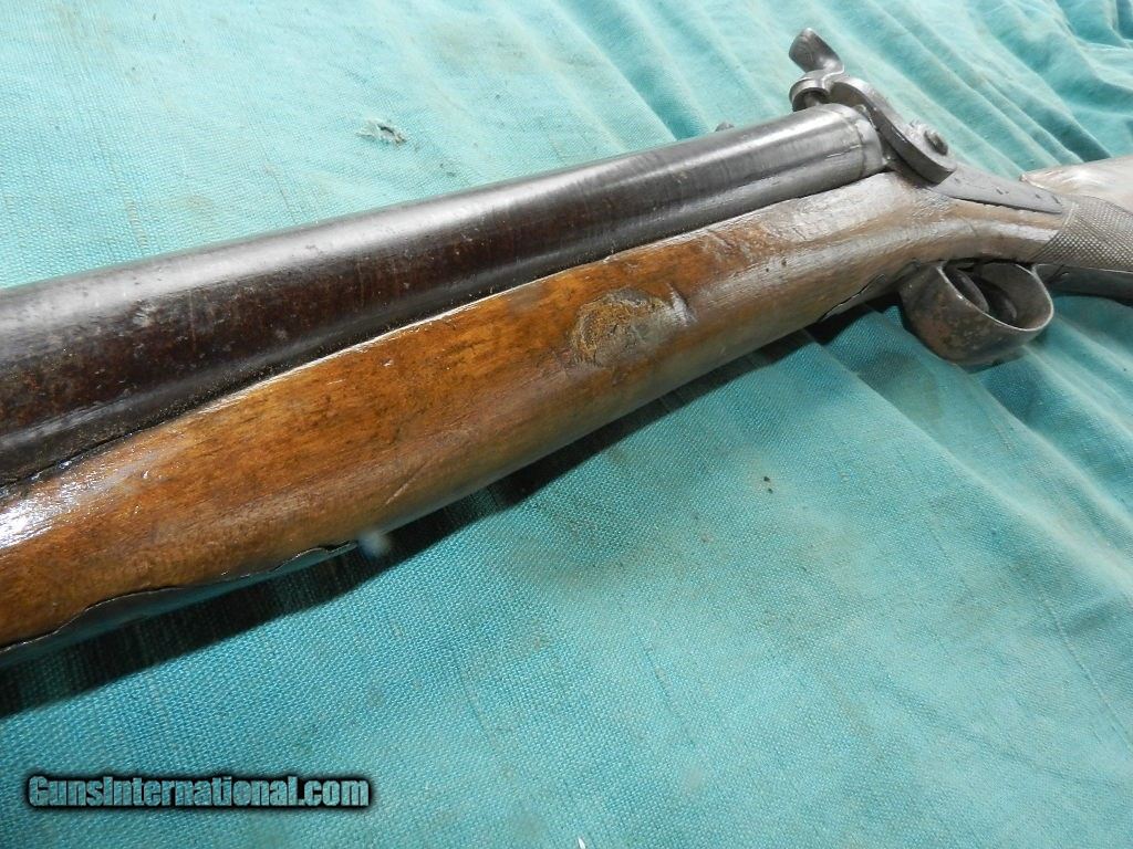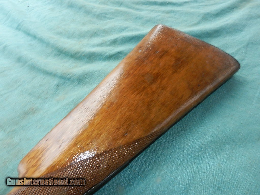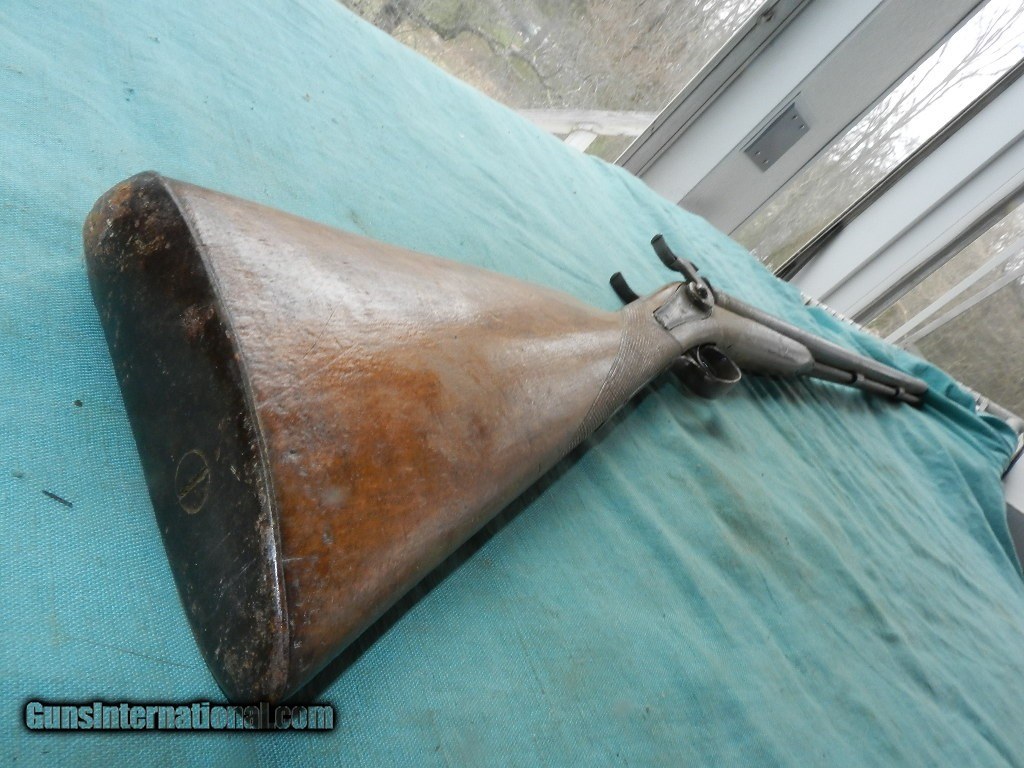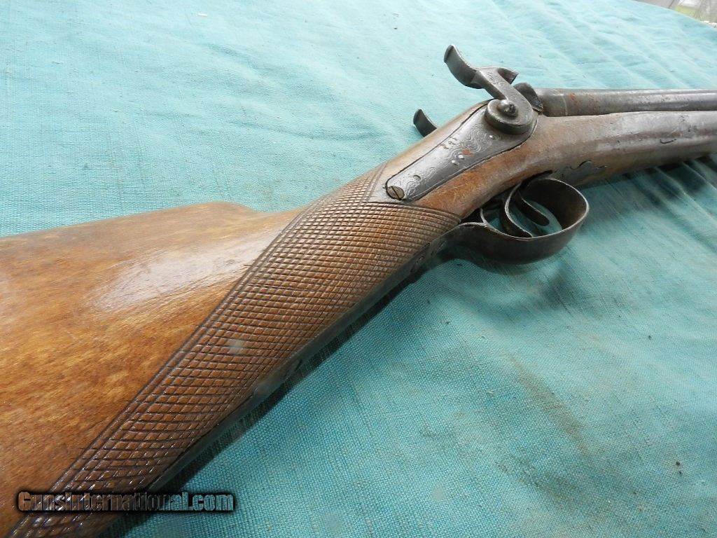 Description: <<<<SOLD>>>>An intrguing double hammer shotgiun of the 19th century with floiate engraved locks , but no name and the top of the barrel states: FINE TWIST. The 31 1/2" round barrels have dark brown damascus patina , and nearer the muzzle is about 1 " downward pitting on both sides with the right side moreso. Has a hardwood ram-rod with a brass tip. The left too is 12ga IM ( .695")and the right tube is 16ga IM (.662"). Bore hammers are matched and nipples are present but they're nicked and mashed . The hardwood stock is a lighter Eurpoean wood stock with strong hand checkered, and looks like a newer finish. The eshuceon holes were located were filled. Overall a working , complete double barrel 19th century hanger for your home or office.When buying a gun always have it examined by a competent gunsmith before shooting. To buy a gun from me you must get a direct email for me, with details, and shipping cost. We don’t have a web site .I prefer money orders or a check. Item ships when funds come in. I try to keep guns affordable, which means I make less money than most dealers. You won’t get altitude sickness, or nose bleed, with my prices! I consistently have the best selection of older guns If you attempt to buy, you must still contact us for details . Best to email to buy. Sometimes a local person can stop buy and purchase before the gun is removed. Sometimes not home to get calls. Some guns are required shipment to a gun dealer near you for a transfer to you when it arrives. Otherwise many older or black powder guns ship to your door. With the widest selection of older guns at great prices, We don’t have a store, and sell on the internet only. I’m easy to get along with. Thank You. SOLD Antique: Yes |