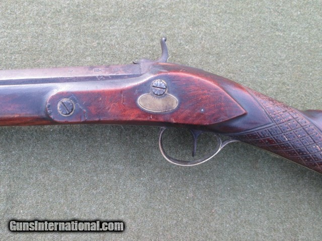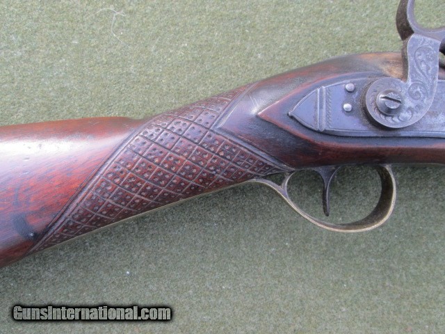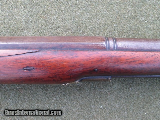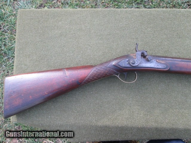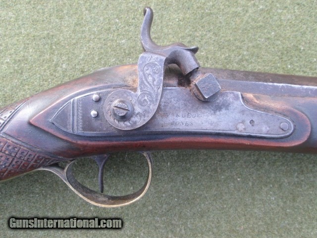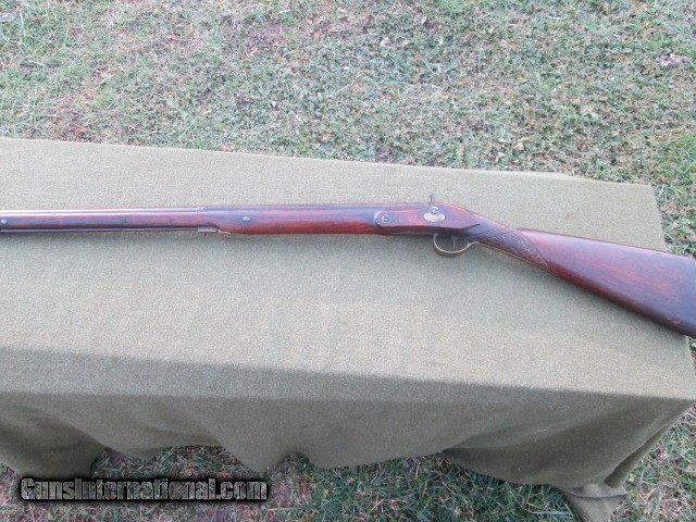 Description: PERCUSSION SMOOTH BORE FOWLER 1800 CENTURY LONDON MARKED GEORGE JONES LOCK. KERNE NIPPLE DRUM ENGRAVED HAMMER AND LOCK PLATE. 39 ½ OCTAGON TO ROUND BARREL WITH WEDDING BAND, GOOD BORE NO HEAVY PITTING. PRESENTABLE QUALITY & CONDITION 6LB 11OZ Cost 799.00 shipping 40.00 no credit cards checks take up to ten days to clear and money orders take 5. Please call with any questions. 8286988804 SOLD |