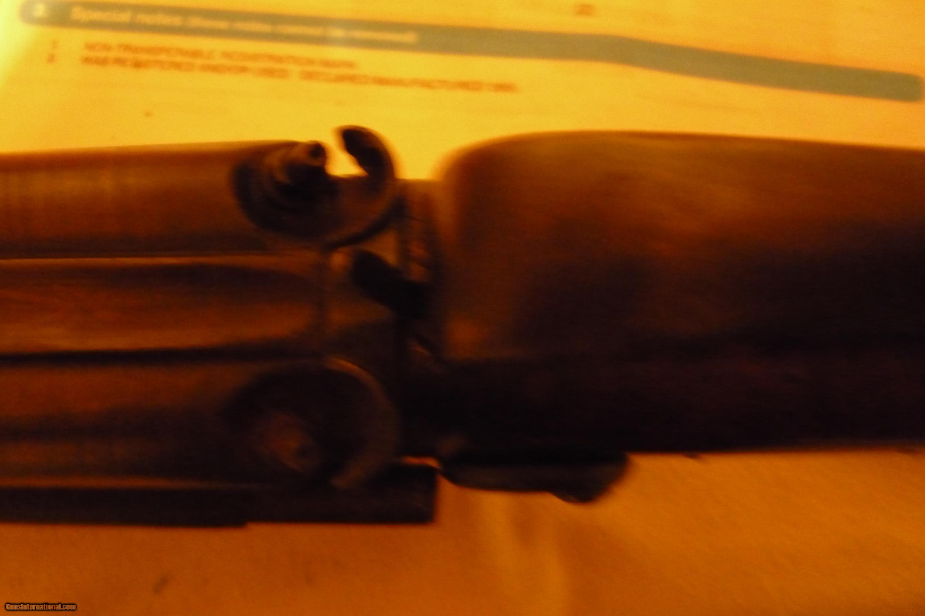Description: 4 barrel rifle, 2barrels 20 bore shotgun, 2 barrels .45rifle. Turnover operated by lever in front of trigger guard. Rifle and shotgun barrels good. Stock in good condition. Estimated age approximately 1900 SOLD |