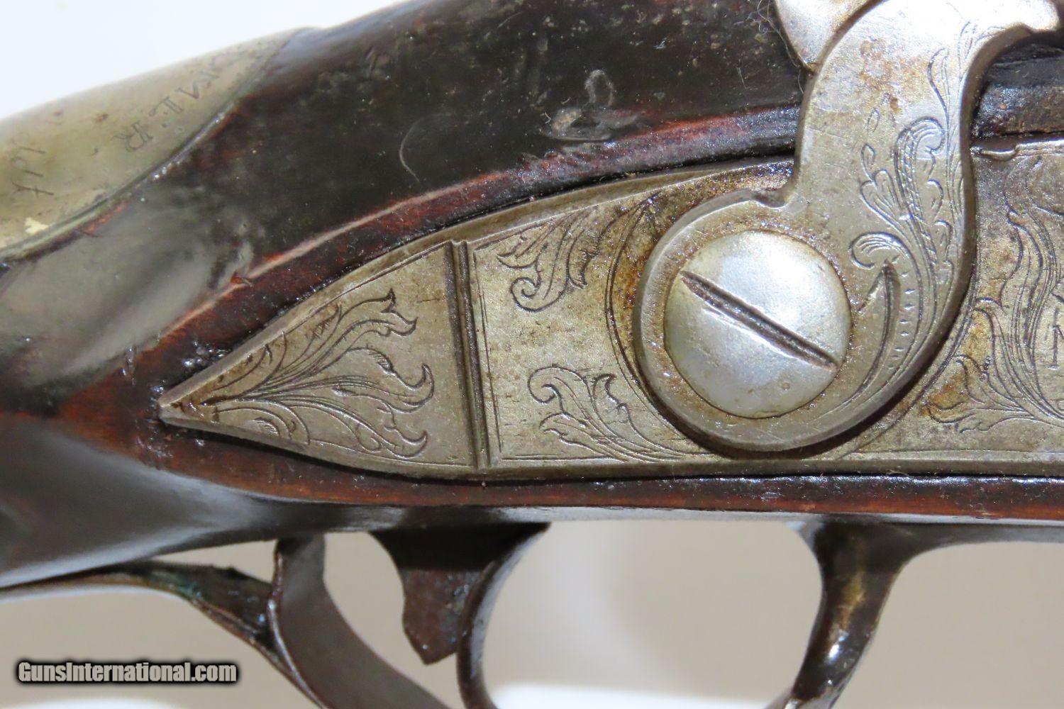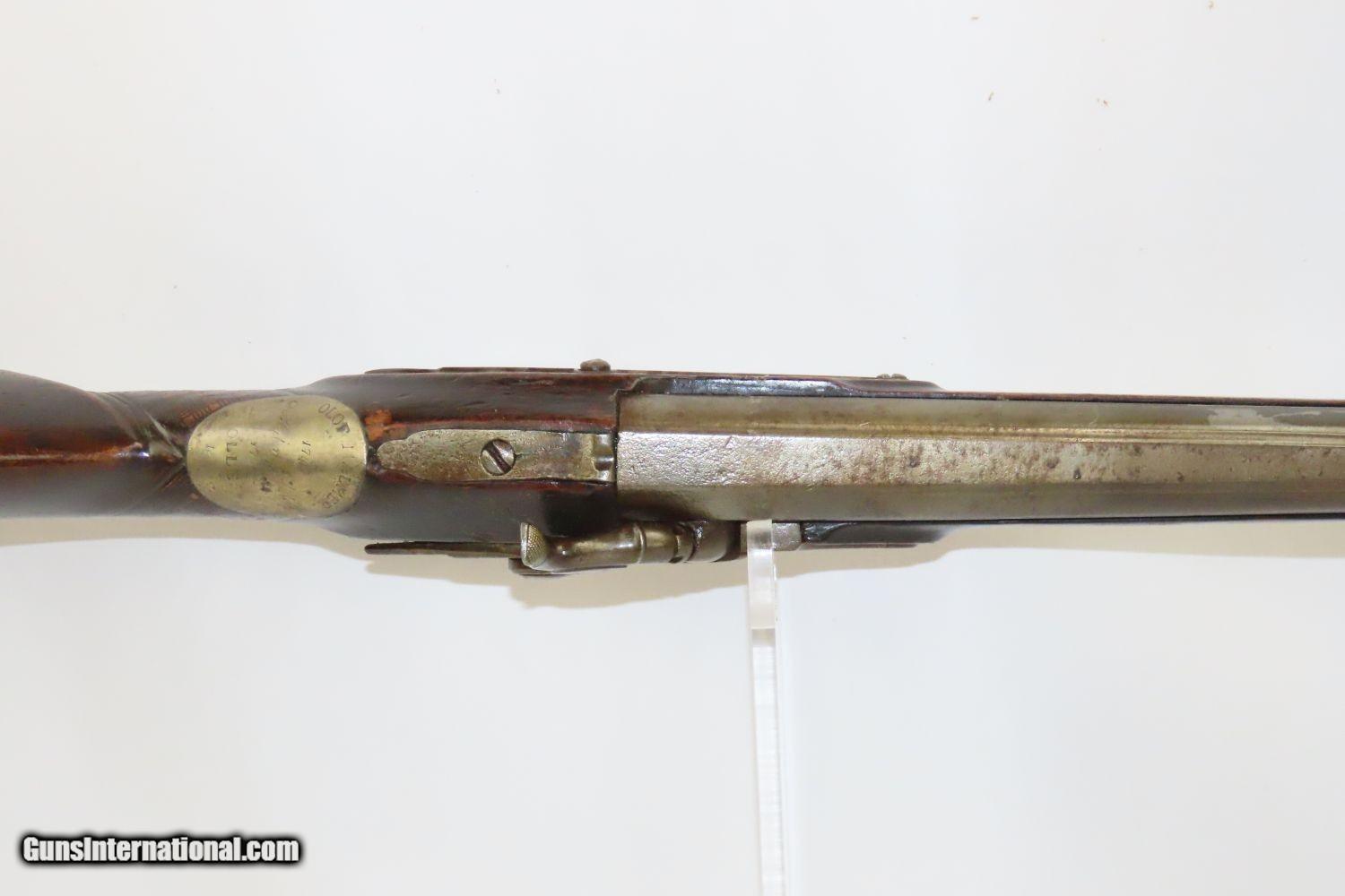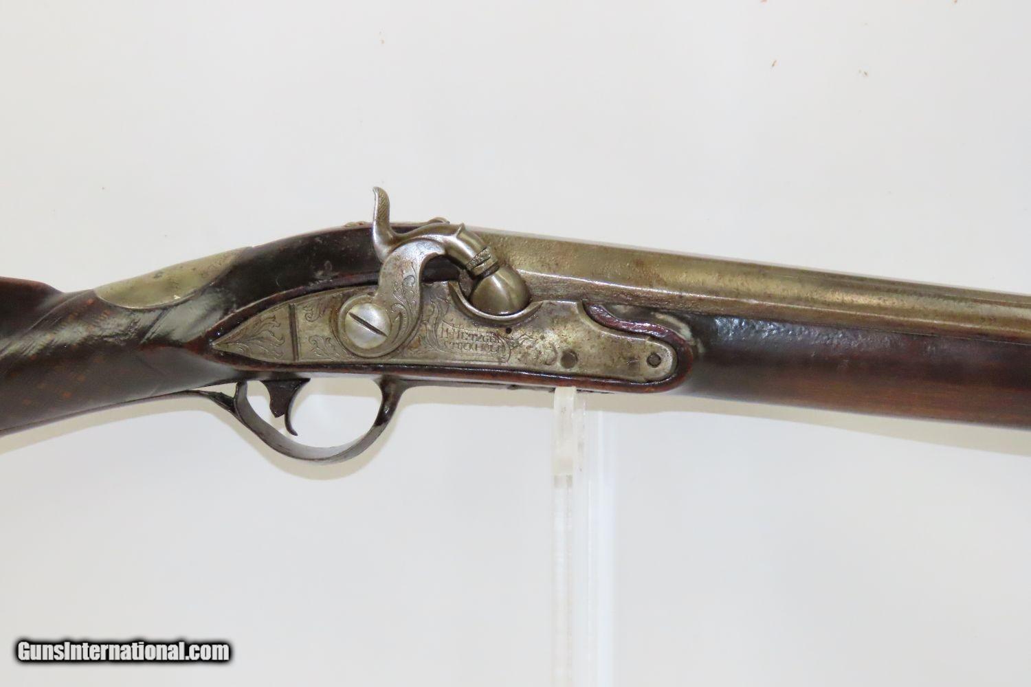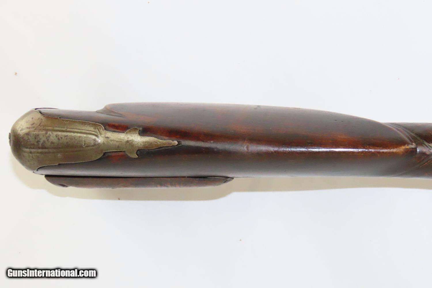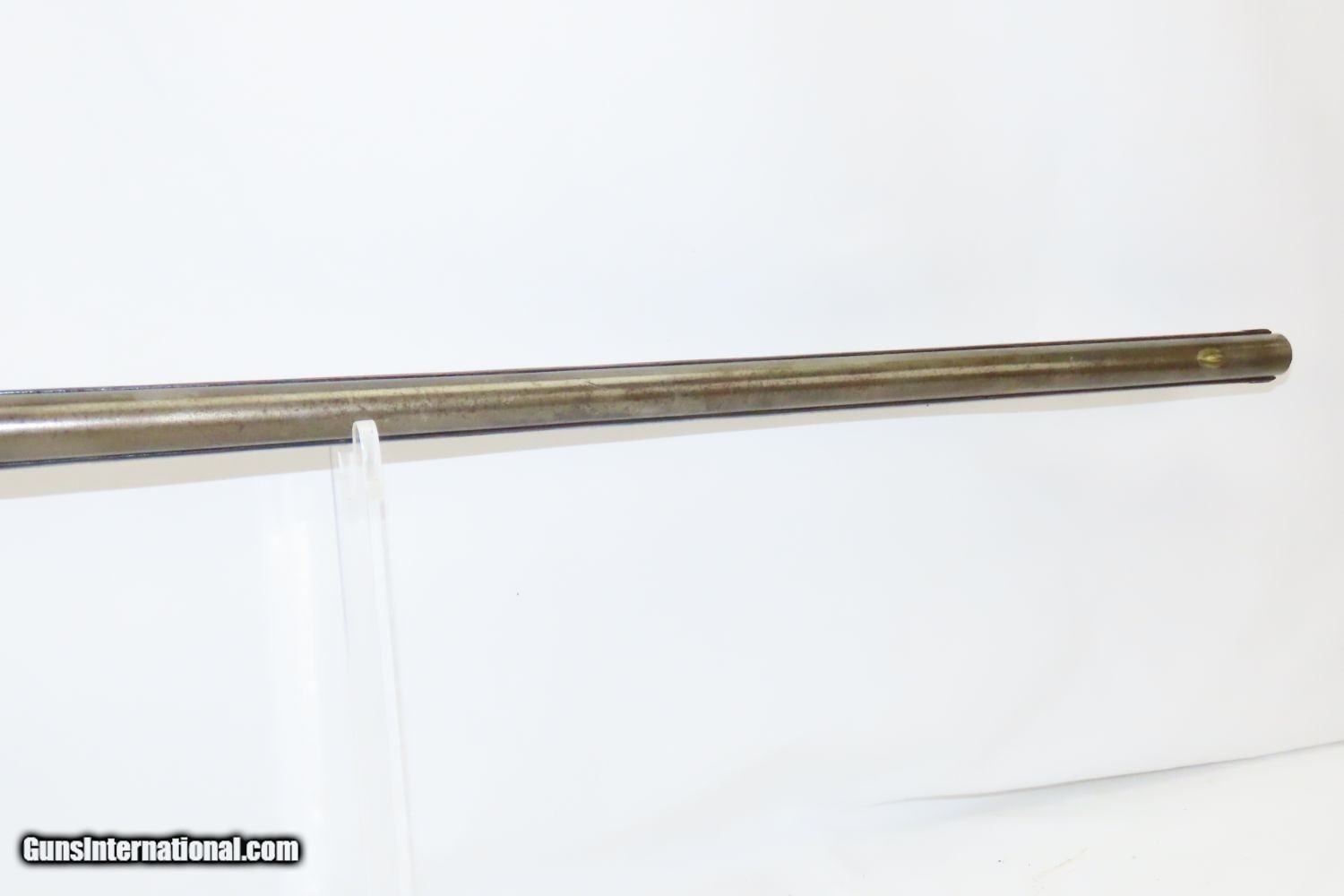 Description: STOCKHOLM SWEDEN Antique Metzger Marked PERCUSSION SINGLE BARREL Hammer Shotgun 1740s through 1840s Chain of Ownership! Here we present an antique M. Metzger Marked Percussion Shotgun, made sometime in the mid-19th Century in Stockholm, Sweden. This gun is likely from the lineage of Johan Michael Metzger, born in 1697 and died in 1776, who was a member of a noted Stockholm gunsmithing family active from the late 1600s through the mid-1800s. This shotgun was made in Stockholm, Sweden sometime around the 1840s or 50s. The overall condition is good. “M. Metzger/Stockholm” is marked on the lock. The placard atop the hand checkered wrist appears to read “OLOF MALMER/1740/ O.Malmer feldt /1772/OLLE/1842”, which may indeed be a chain of ownership. This idea is supported by the percussion conversion and it was probably used even later than the 1840s. Stable stock despite a small crack near the side plate. The bore is in good shape. The hammer is mobile and under good spring tension but it does not hold the cocked position. Own the original! This is a legitimate antique and not a reproduction. Barrels: 34 inches. Caliber: .69 Percussion Overall condition as seen in photos. Very Fast. Very Safe. FREE SHIPPING WORLDWIDE. Delivered directly to your door by express mail! Guaranteed AUTHENTIC & Includes CERTIFICATE OF AUTHENTICITY. ancestryguns $1175 #201881 SOLD Antique: Yes |