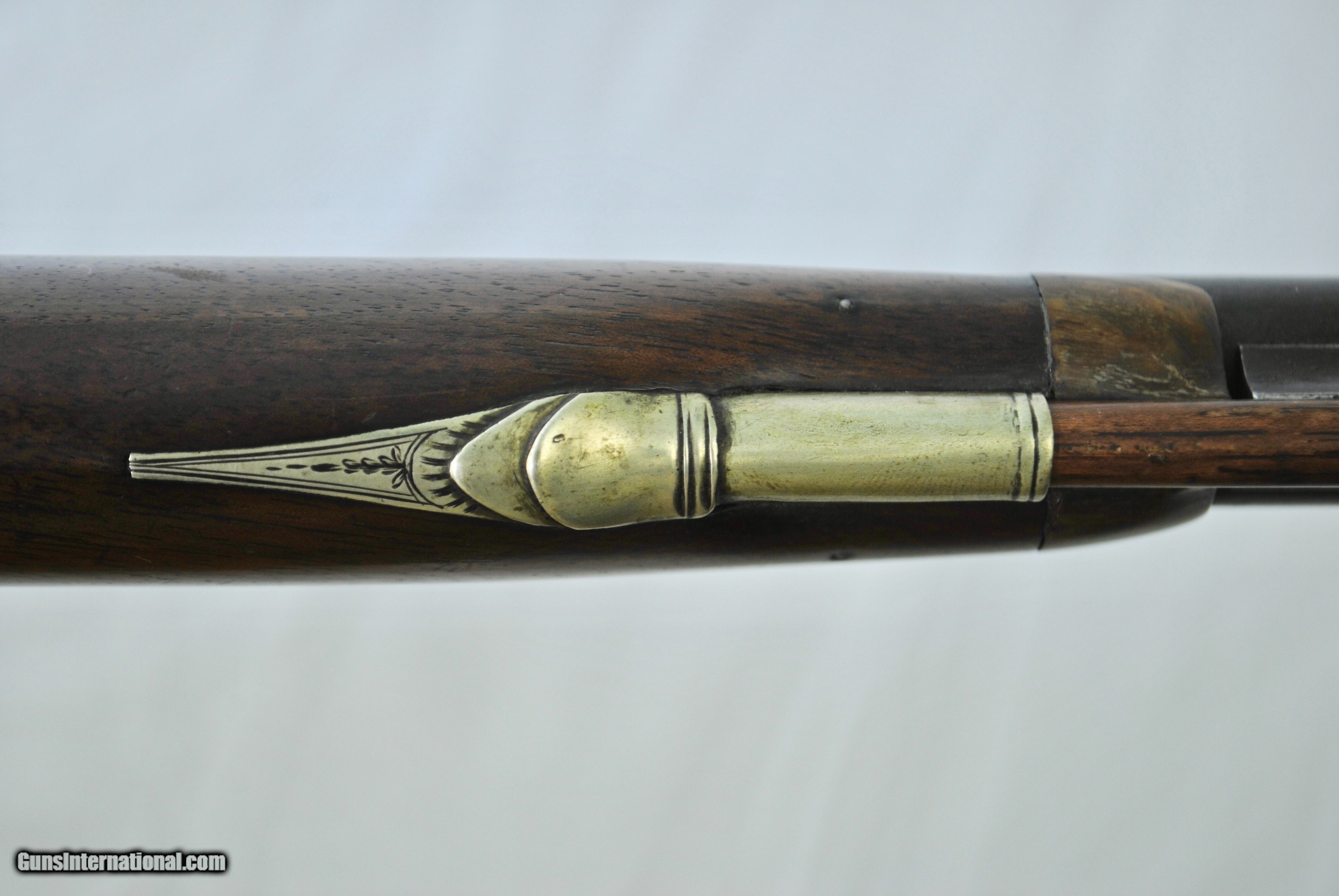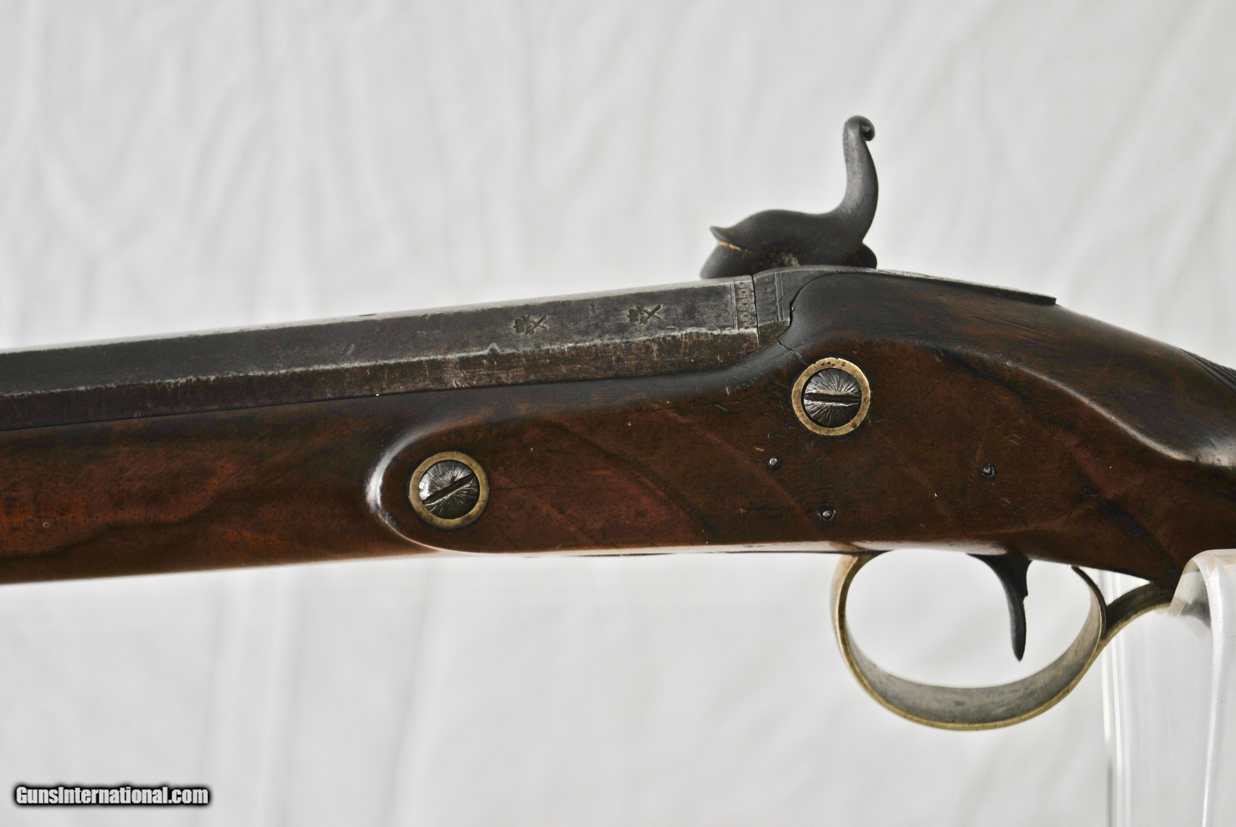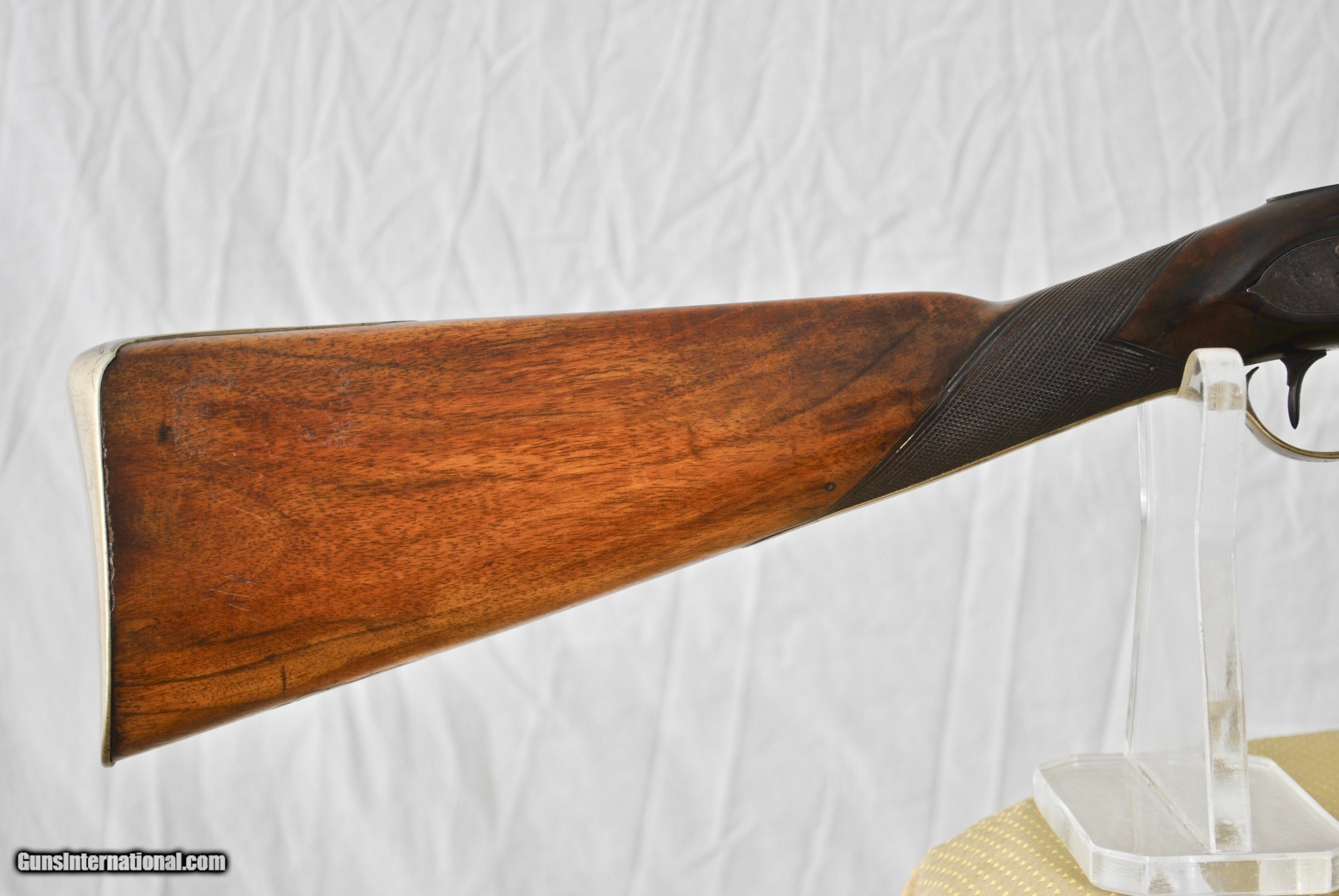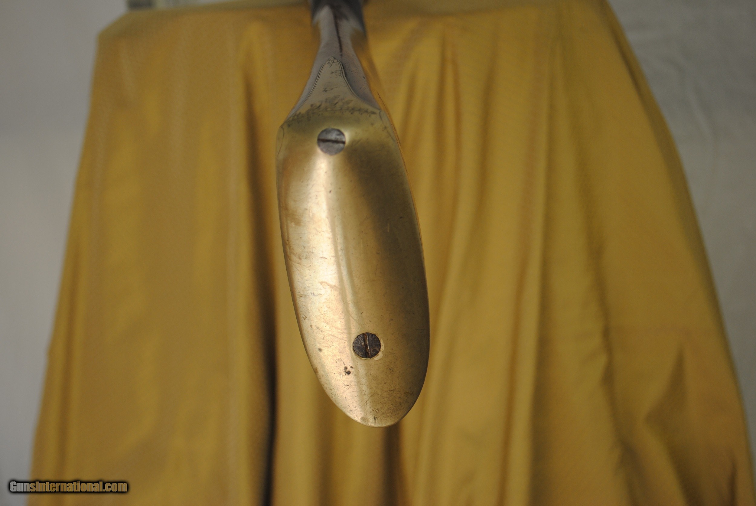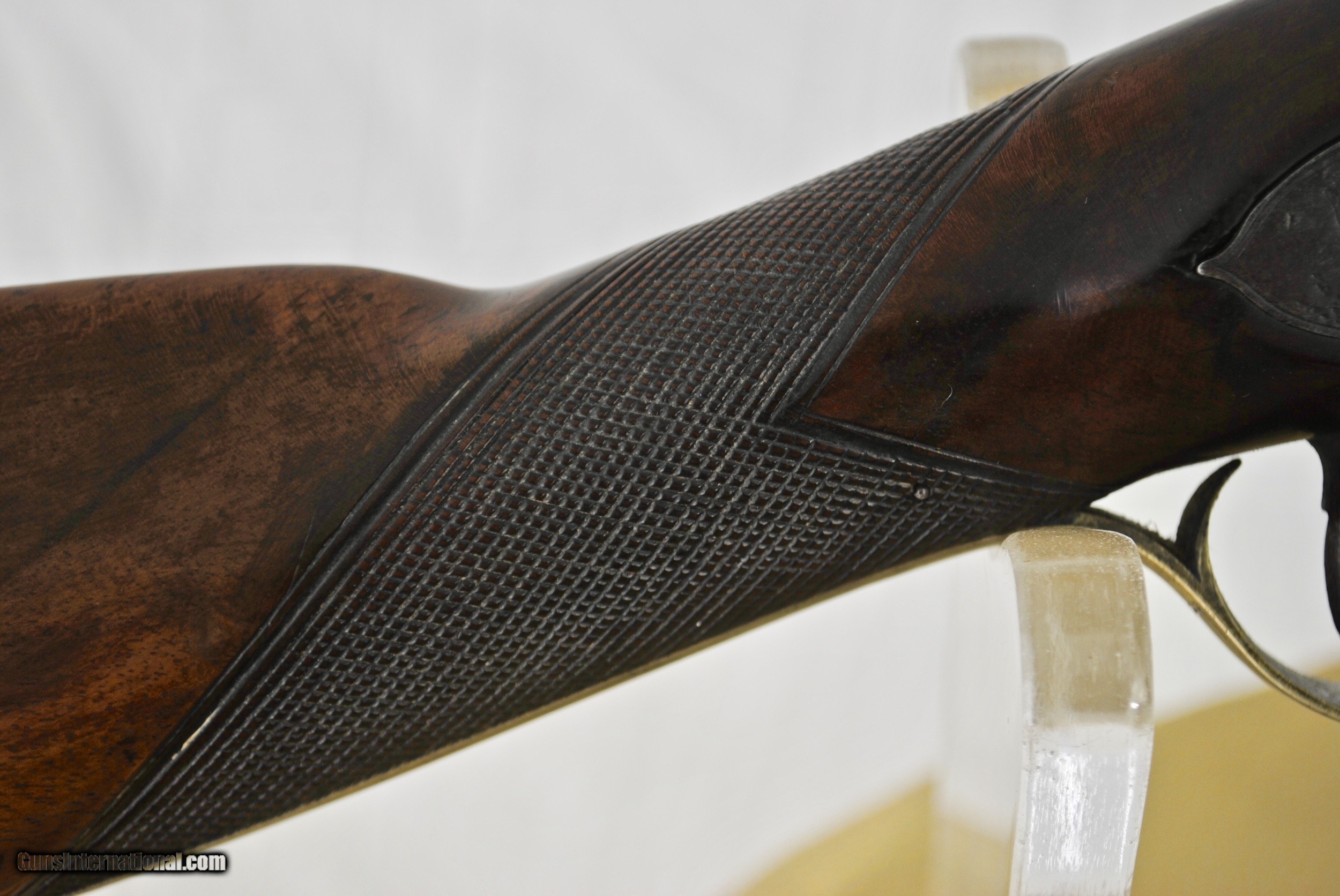 Description: Here is a Thomas Ketland 24 gauge Percussion Fowler made in Birmingham, England in the 1825 to 1850 time period. Excellent smooth bore measuring .574 (24 gauge). Barrel is 36". This gun has an elegantly engraved brass buttplate and trigger guard. Percussion cap trap in stock. Fully functional and ready for the field and range. Nitro cards, cusion wads and over shot wads are included as shown. Also includes a powder measuring tool. Gun has good shootable dimensions with a LOP of 14". Wood is solid. Fully functional. Weight is 5 LBS 12 1/2 OZ. Shipping is $60 and will be shipped in a Plano style hard case. As an antique this can be shipped directly as local law allows. For inquiries please call Guy - 407-721-3748 SOLD Antique: Yes |