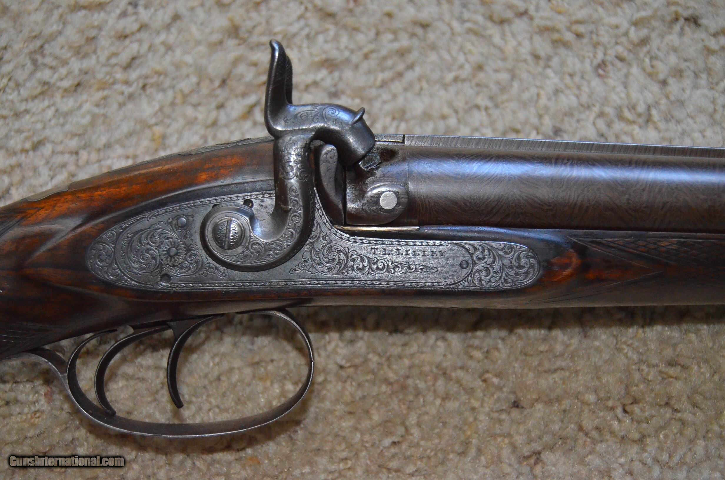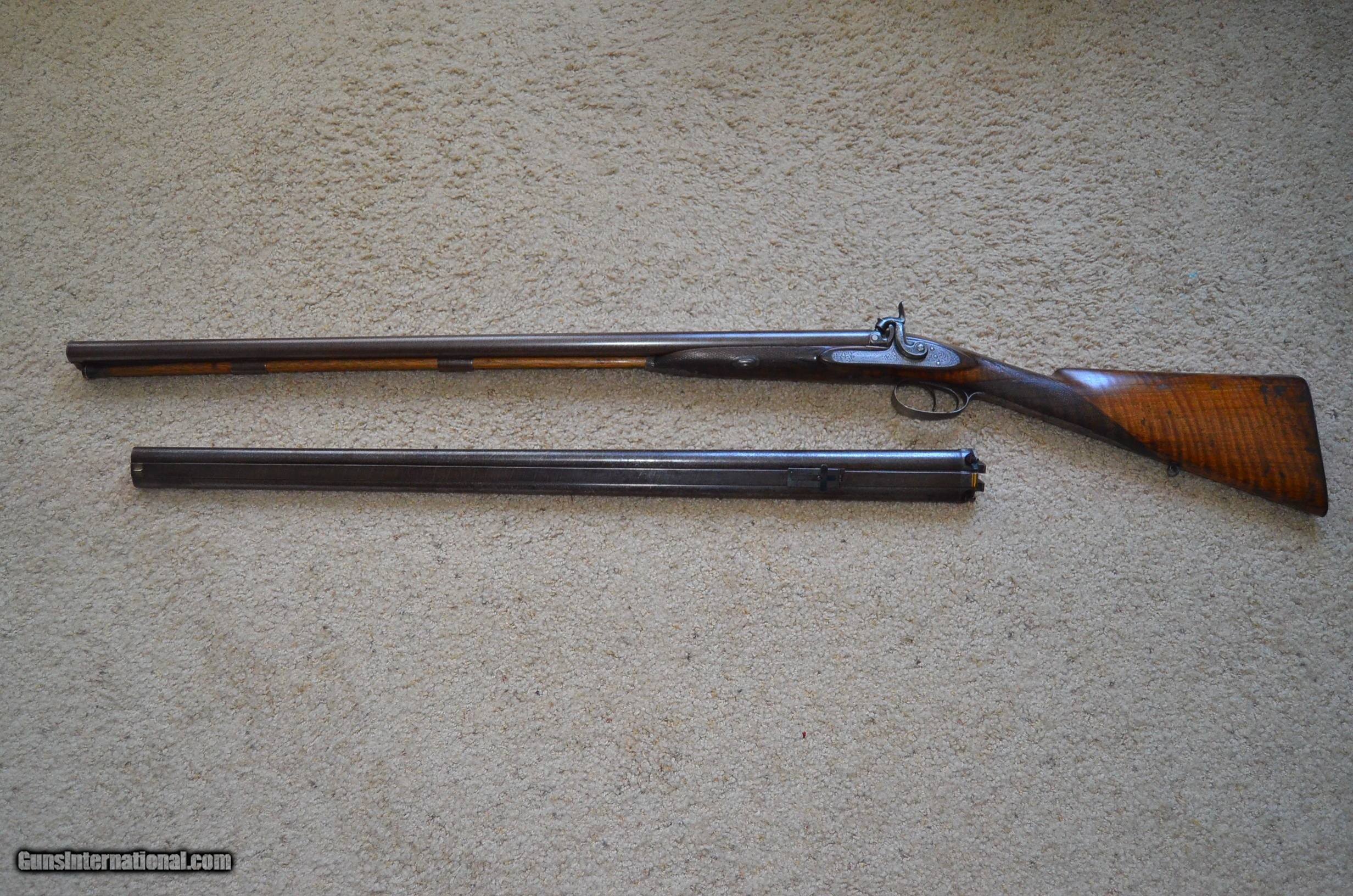 Description: (SOLD, pending funds) This is a beautiful original TL Lilley Damascus percussion double barrel shotgun and rifle. It has a set of double 14 gauge shotgun barrels and a set of double .577 rifle barrels and includes it’s original case with tools (but no bullet mold). Both barrel sets are 30” long and the Damascus patterns are in excellent original condition for both barrel sets. The rifle barrels have a folding ladder sight at the rear. Both barrel sets are also in very good shootable condition. This is not a wall hanger. Beautiful engraving and inletting around the buttplate and action. Refer to the photos for more detail. Vintage is estimated to be around 1850. Shipping is $75 plus insurance if desired. No FFL is required as this is an antique. SOLD Antique: Yes |