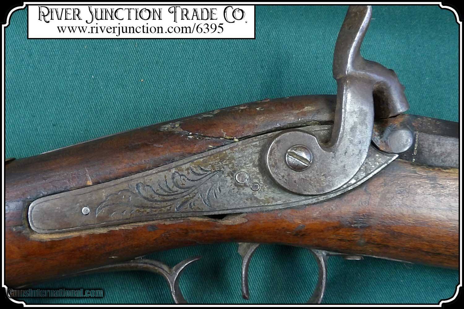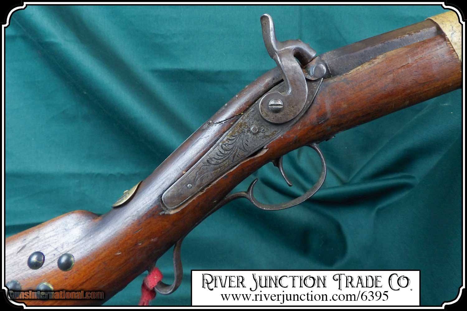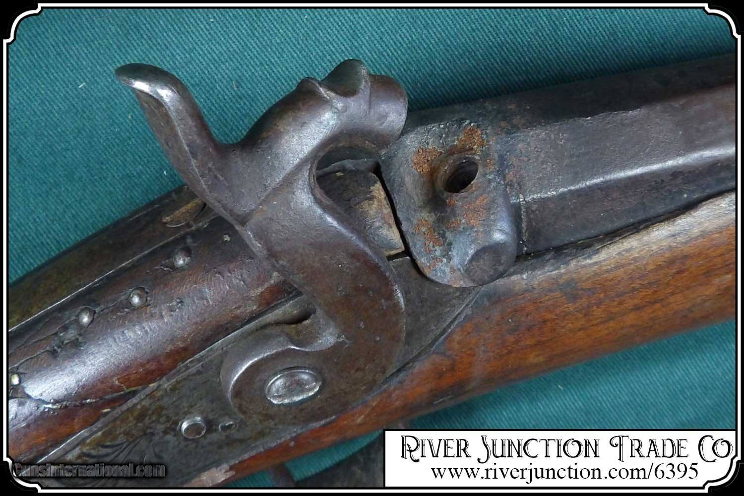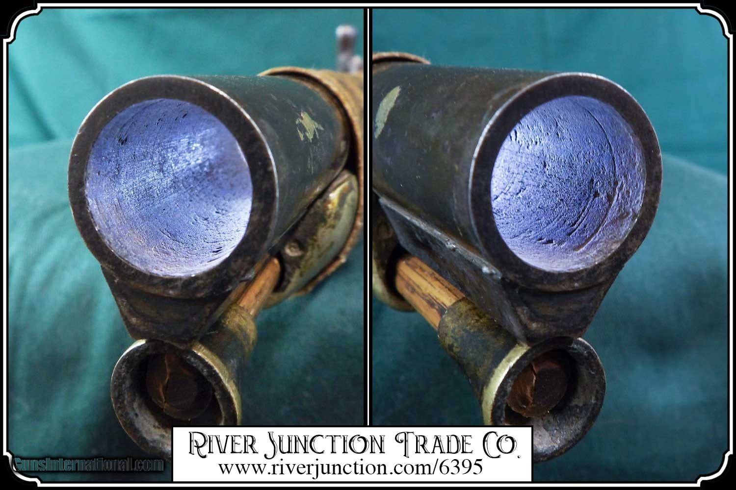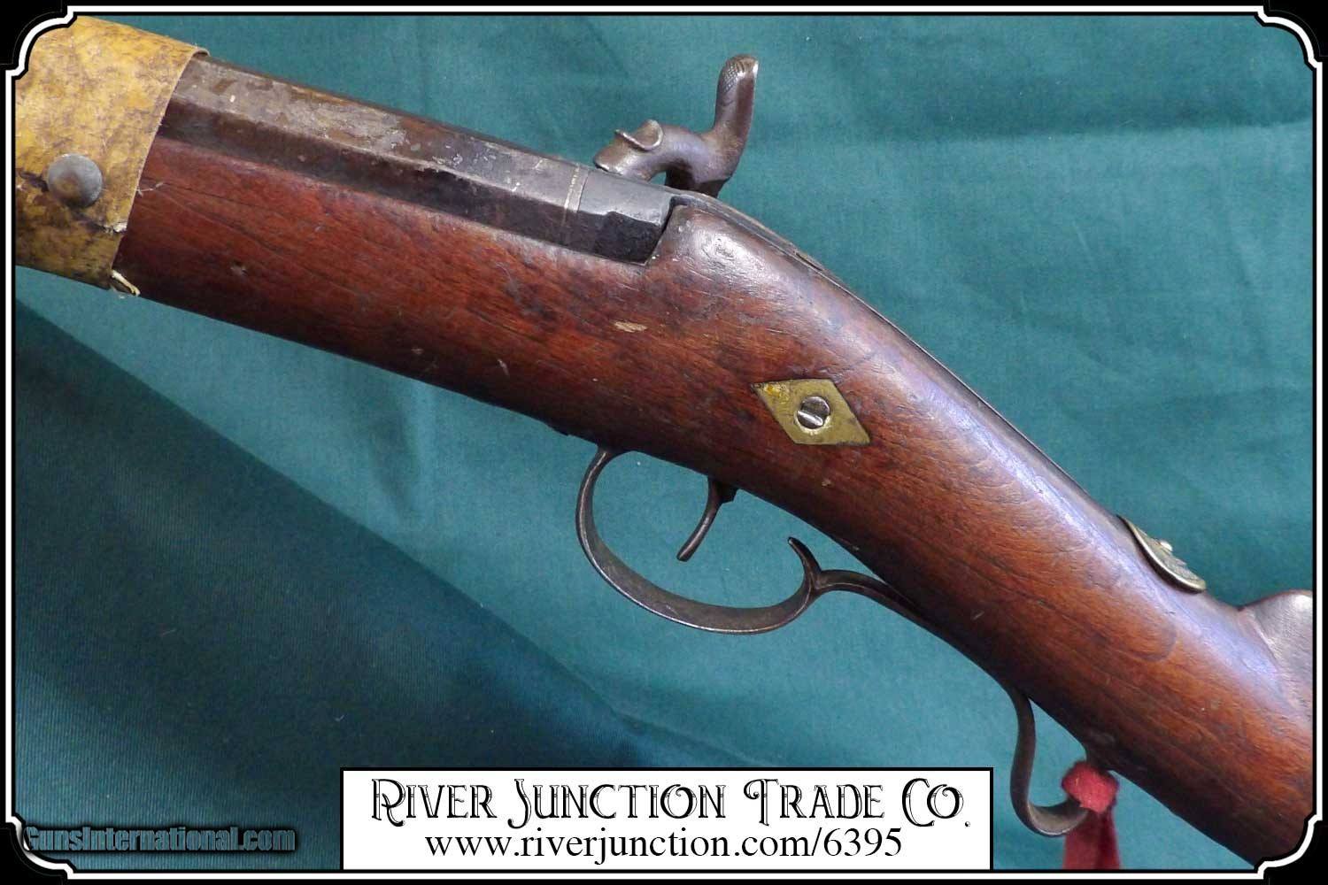 Description: Many weapons used by Native Americans would have been present at most of the late 19th century's most well-known battles, including the Battle of Little Bighorn. This was a single shot 12 ga. fowler and has since been sawed off to a 12 1/2 inch barrel. It has an overall length of 29 inches. The ramrod is 13 inches long. The wood has a small tack repaired crack above the lock mortise. The forearm and barrel have been rawhide rapped and tacked. The stock has tacks in the shape of a, snake? on the right side and on the left a small cross. The lock, hammer, trigger guard, function as they should. The breach plug is missing the nipple. This would have been a good horseback or canoe gun. The tacks on the stock make me think that it might have been a reservation gun and there is a small medallion on the top of the wrist of the stock reads US INDIAN SERVICE. It sure is interesting. Other items are not included. This is an ANTIQUE and can be shipped directly to you. (adult signature required) this is an Antique and I think a good sound shooter. No guarantees, warranties, or liabilities for any actual usage. If any firearms are to be used for shooting purposes, a qualified gunsmith should inspect them first. We will ship outside the U.S.A. Payment: Item, can be ordered on line with a credit card or paypal on our sight. Just Google (riverjunction) and type in the River Junction Trade Co. item number (6395) in the search box. Before you checkout you will see shipping cost and total. OR If you prefer: Pay by cash, postal money order, cashiers check, personal & business checks. We wait for checks to clear. We always answer questions and entertain offers. Have questions? Call me 563-880-4588. Jim SOLD |