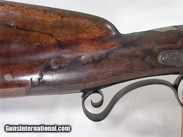 Description: V. FUNK SUHL PERCUSSION SXS HAMMER 20GA 32”, NICE DAMASCUS PATTERN WITH SILVER INLAYS AT THE CHAMBER, ENGRAVED LOCKS AND HAMMERS, GOOD SOLID WOOD THAT HAS BEEN SANDED, GOOD BORES WITH STRAIGHT RIFLING, REPLACEMENT RAM ROD, ANTIQUE SOLD Antique: Yes |