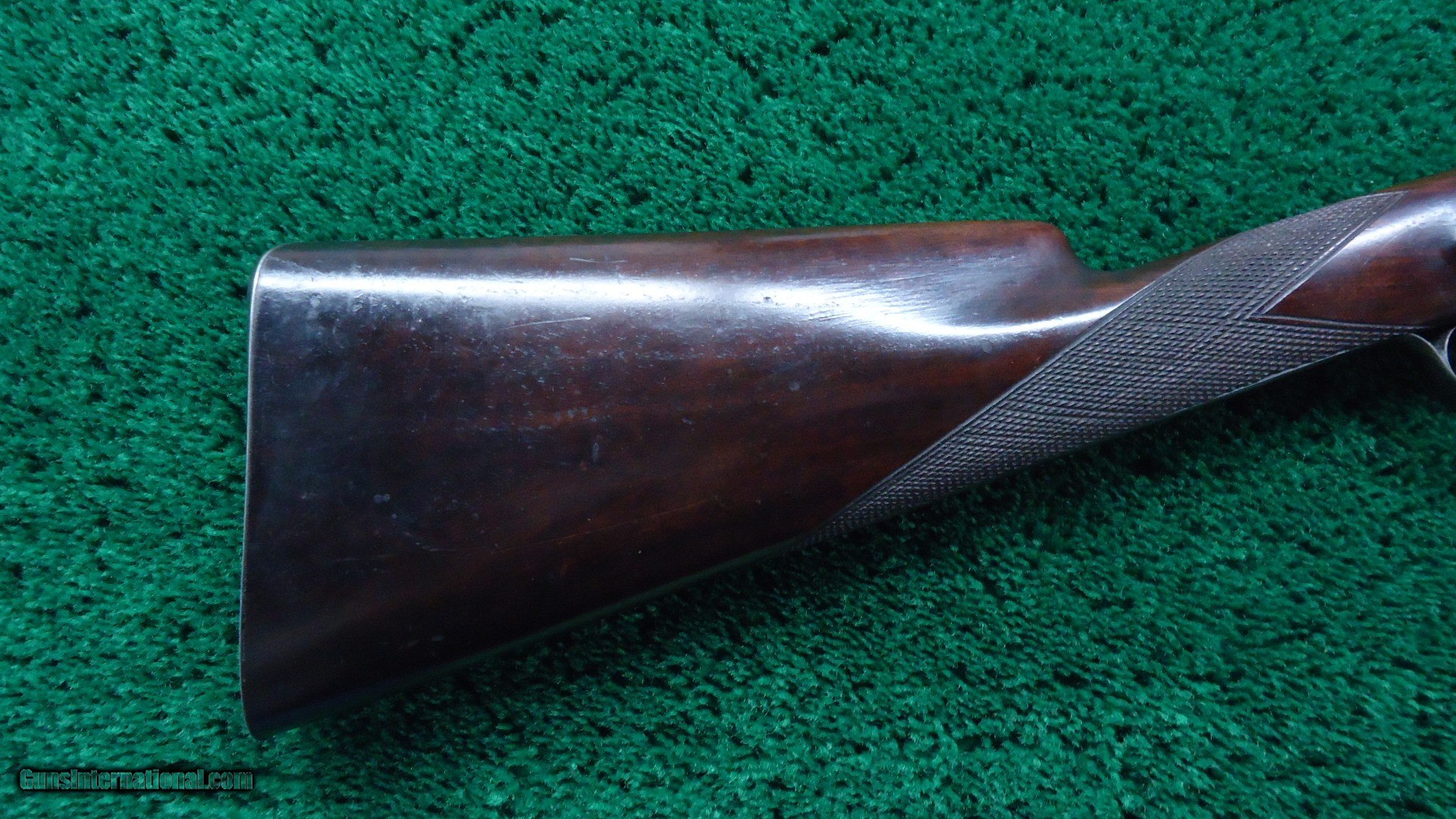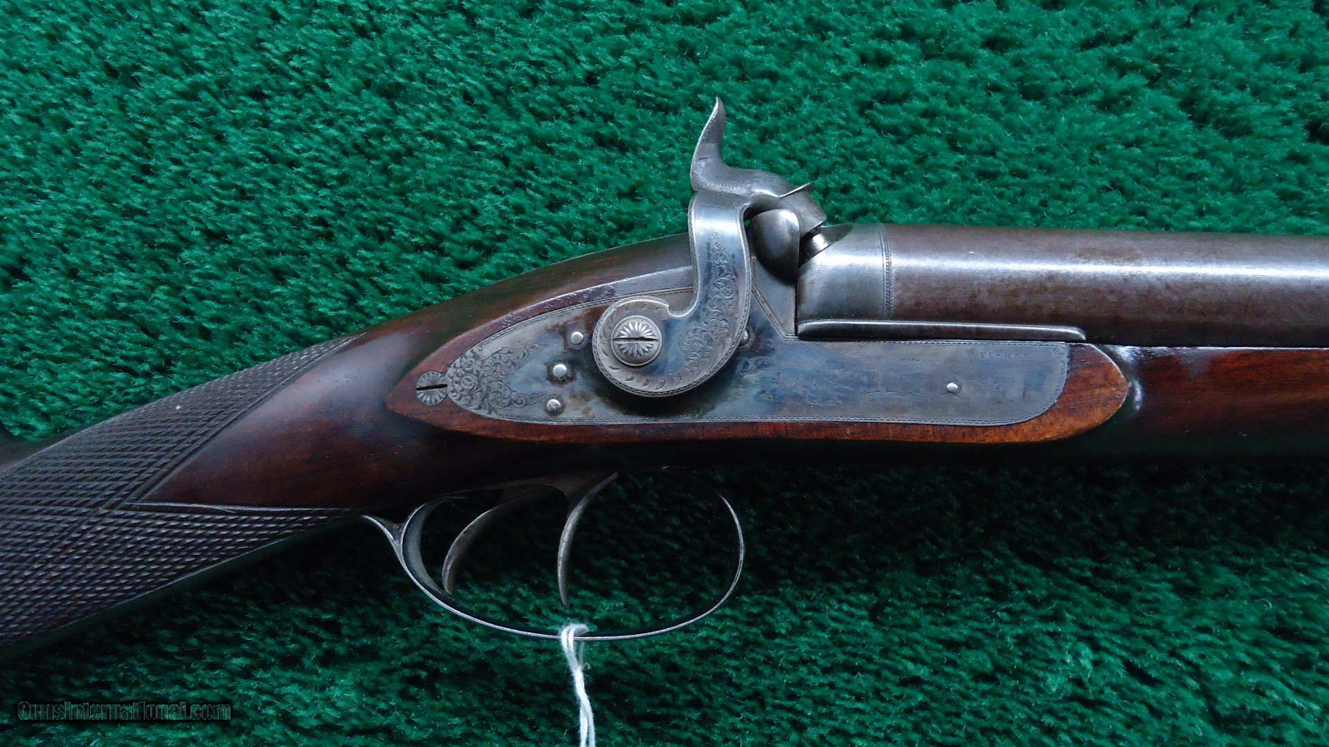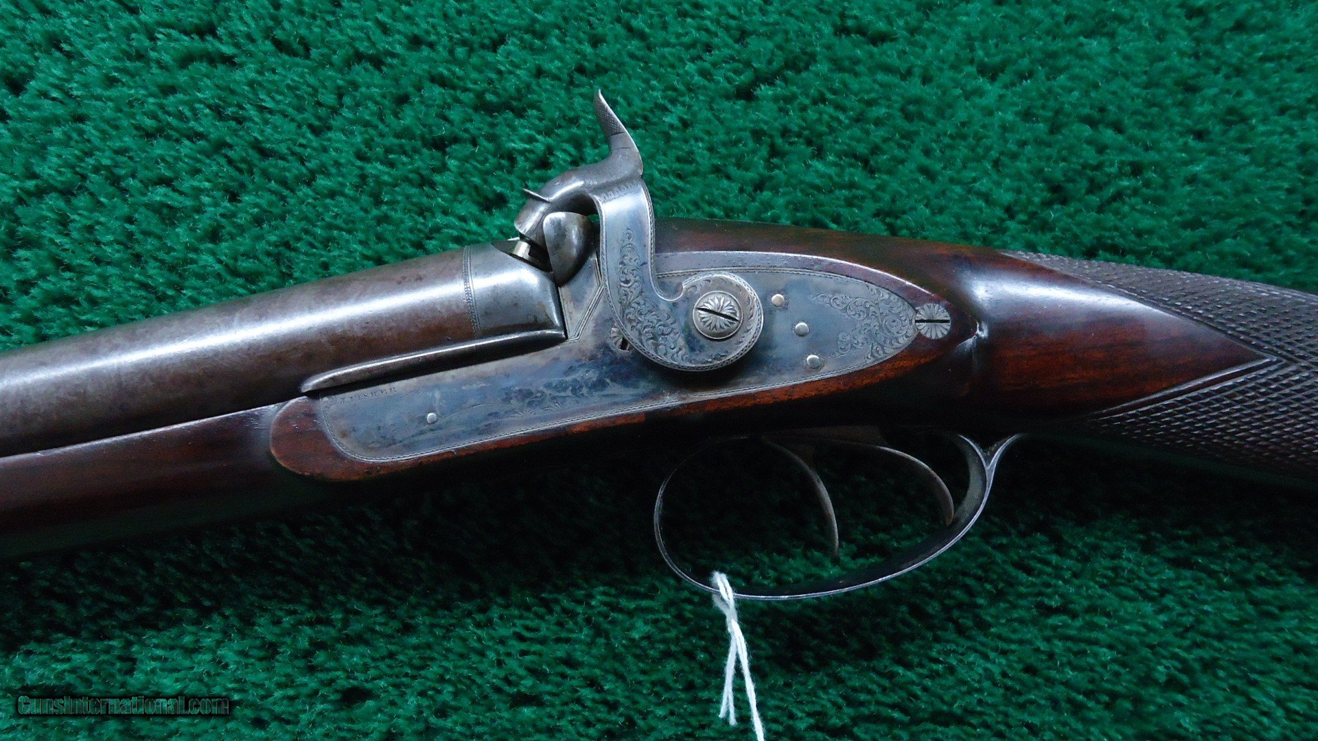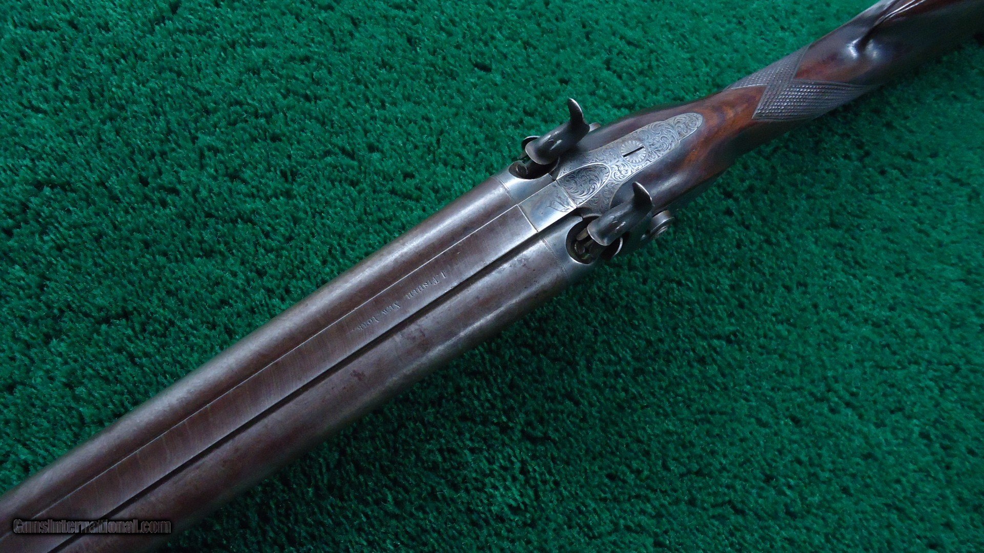 Description: Marked on the sideplates " J Fisher". This is a beautiful gun. Fancy walnut stocks have sharp checkering and most original varnish. Steel buttplate and trigger guard retain most original blue. Gun has nice engraving throughout and vivid case colors on both side plates. 28 inch barrels retain most Damascus pattern and are marked "J. FISHER NEW YORK." Quite attractive Double by a well known New York maker. Leroy Merz Antique Firearms specializes in antique and vintage Winchesters and other fine American firearms. Since 1965 Mr. Merz has taken part in the world of firearms and has been a contributor to many well known reference books. We have hundreds of additional guns in every price range at our home online. Search for Merz Antiques in google. SOLD Antique: Yes |