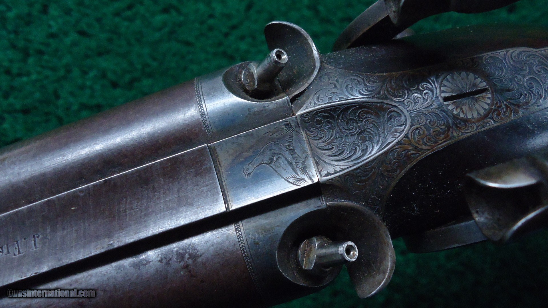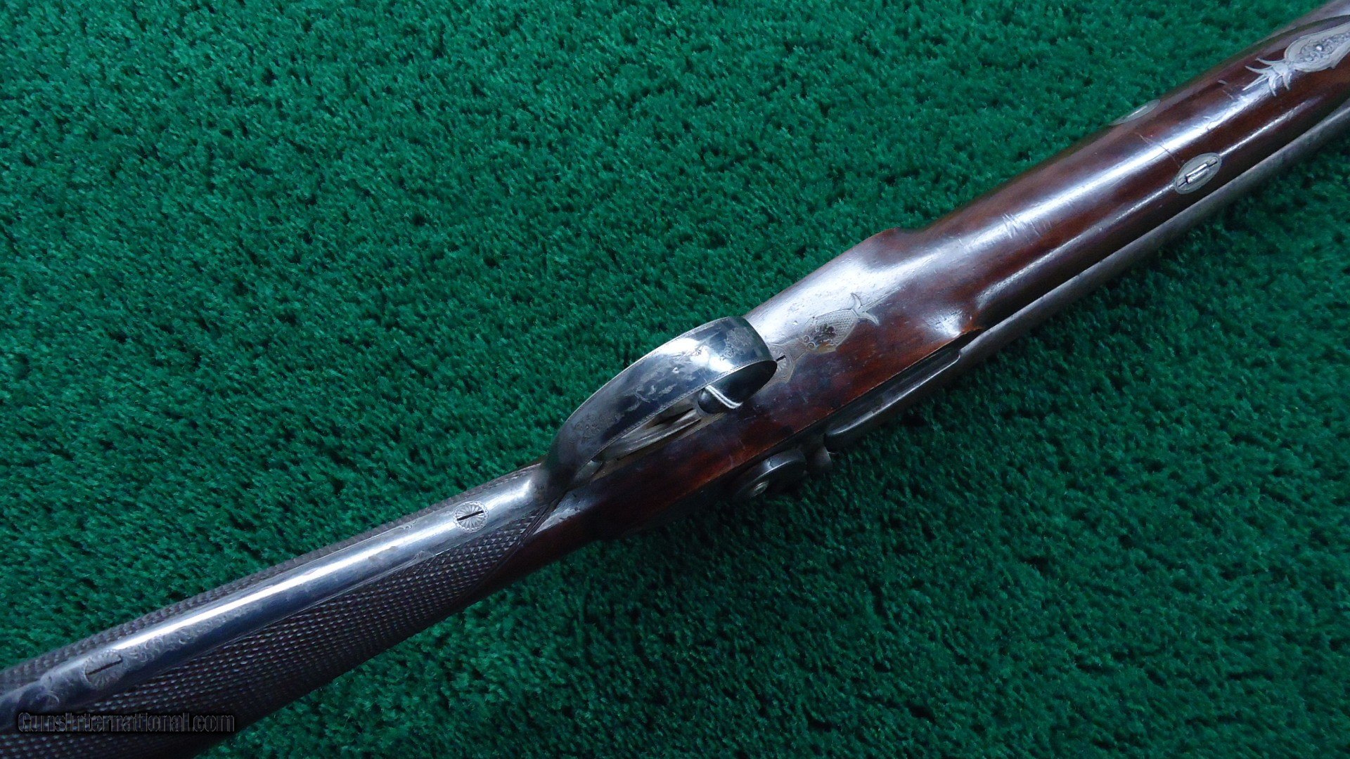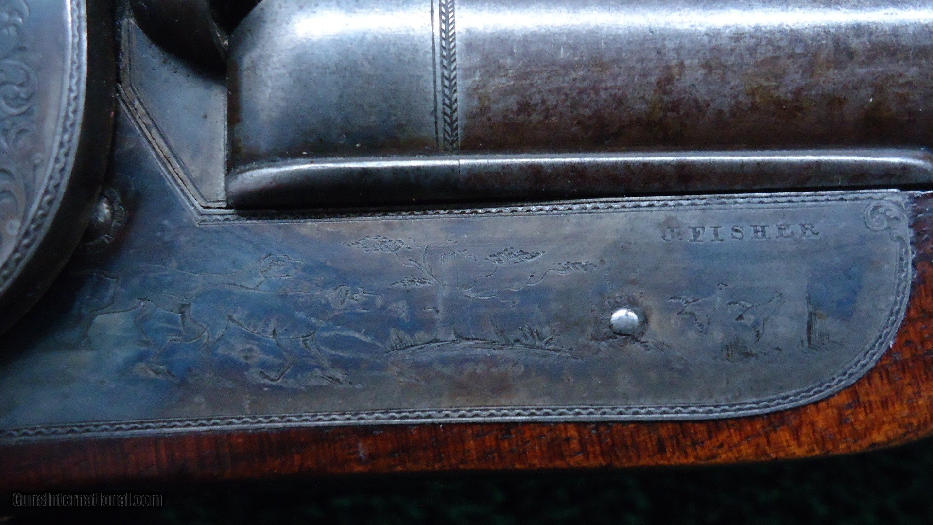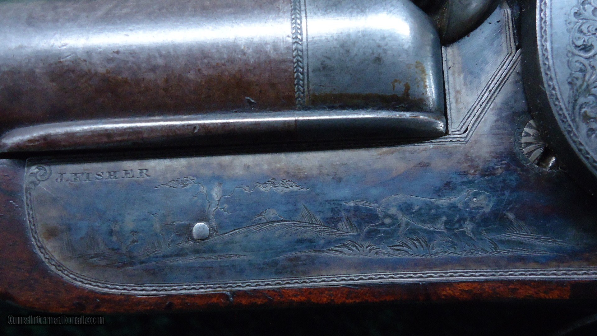Description: Marked on the sideplates " J Fisher". This is a beautiful gun. Fancy walnut stocks have sharp checkering and most original varnish. Steel buttplate and trigger guard retain most original blue. Gun has nice engraving throughout and vivid case colors on both side plates. 28 inch barrels retain most Damascus pattern and are marked "J. FISHER NEW YORK." Quite attractive Double by a well known New York maker. Leroy Merz Antique Firearms specializes in antique and vintage Winchesters and other fine American firearms. Since 1965 Mr. Merz has taken part in the world of firearms and has been a contributor to many well known reference books. We have hundreds of additional guns in every price range at our home online. Search for Merz Antiques in google. SOLD Antique: Yes |