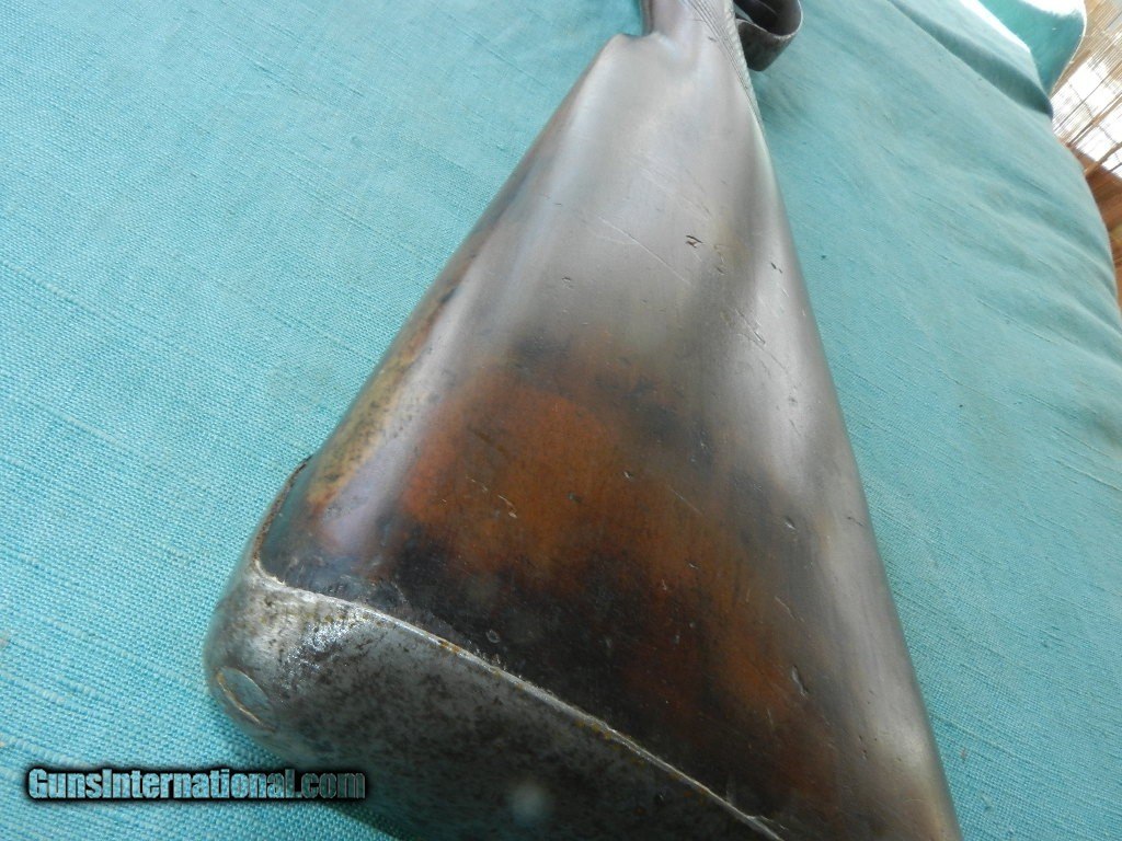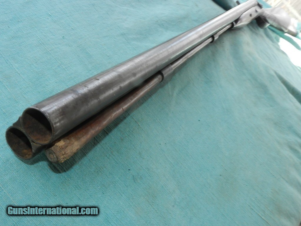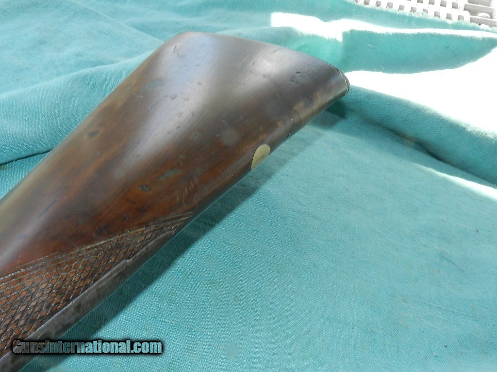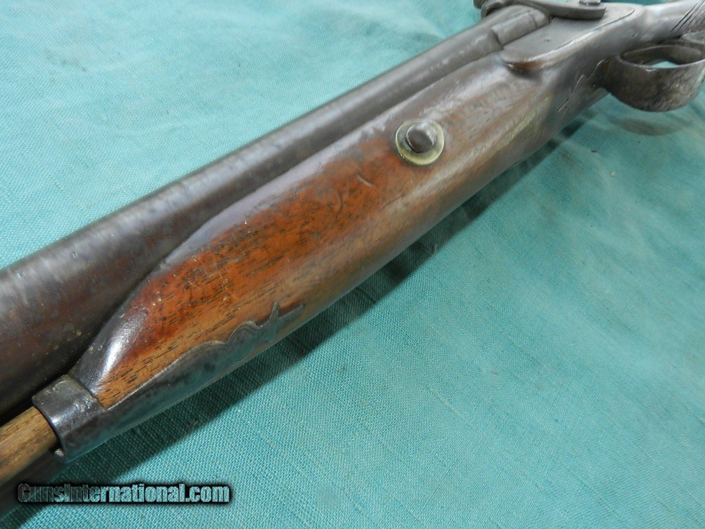 Description: <<<SOLD>>>>A clean 19th centiury fine English muzzle-loader 10ga hammer double shotgun with 30 1/2" damascus barrels with surprisingly clean barrels with the right tube having some surfacde corrosion ablout 10" doesn in spots ,but not pitted-out or rusted -out! Both hammers match and locks work well. Lock-plates well marked, and the top of the barrel states : LONDON FINE TWIST with bown and grey patina on the exterior. The English walnut stock issolid with strong hand checkering at the wrist and this stock may have been re-fijished in it's life. Left tube has a choke of .650 amd the right tube measures about .640". Comes with a plain hardwood ram-rod that has a mashed head from usage.When buying a gun always have it examined by a competent gunsmith before shooting. To buy a gun from me you must get a direct email for me, with details, and shipping cost. We don’t have a web site .I prefer money orders or a check. Item ships when funds come in. I try to keep guns affordable, which means I make less money than most dealers. You won’t get altitude sickness, or nose bleed, with my prices! I consistently have the best selection of older guns If you attempt to buy, you must still contact us for details . Best to email to buy. Sometimes a local person can stop buy and purchase before the gun is removed. Sometimes not home to get calls. Some guns are required shipment to a gun dealer near you for a transfer to you when it arrives. Otherwise many older or black powder guns ship to your door. With the widest selection of older guns at great prices, We don’t have a store, and sell on the internet only. I’m easy to get along with. Thank You SOLD Antique: Yes |