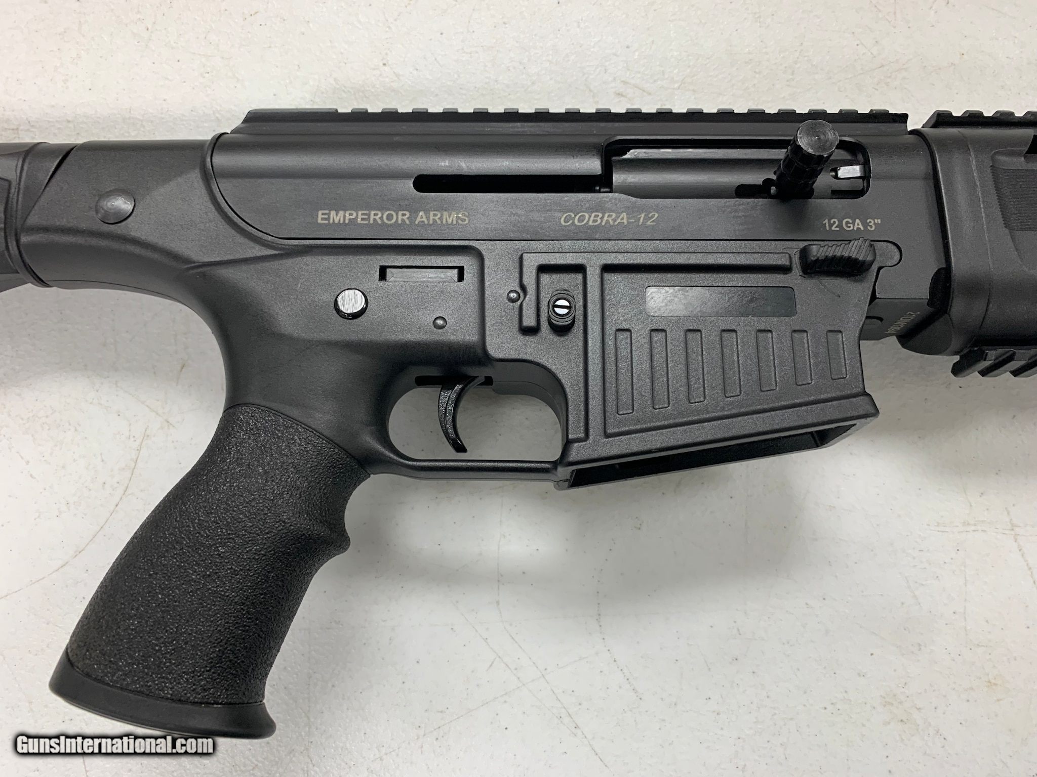 Description: Guns Listing ID: 1115651 Has some scratches or scuffs (SEE PICS). Includes 2-5 RD magazines. SOLD Manufacturer: EMPEROR ARMS Model: Cobra-12 Condition: Used - Non-Certified Barrels: 18 BARREL Gauge Info: 12 GA Finish: BLACK |