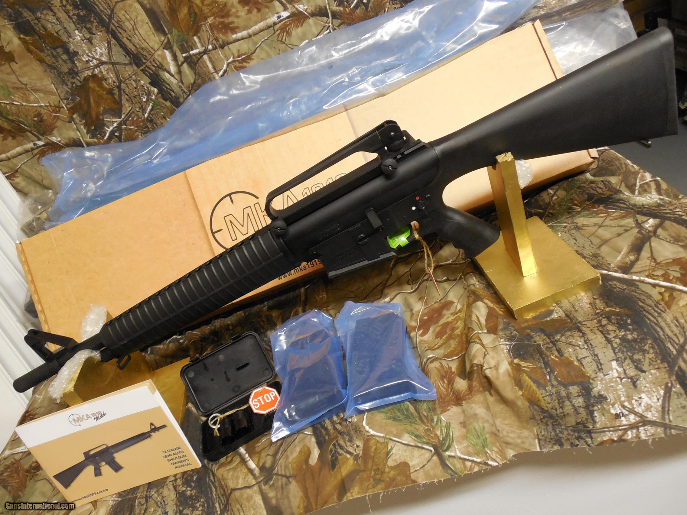 Description: FACTORY NEW IN BOX CLICK ON PICTURES TO ENLARGE Details FEATURES 18" barrel 3" chamber Multi choke (C, M, F) 14.5" length of pull 39.5"" overall length Ambidextrous safety Extended bolt release Extended magazine release Metal floating feed ramp Two gas rings (heavy loads or light loads) Easy takedown system 5 + 1 Round Capacity Number Of Mags 2 *For Sporting/Competition, Law Enforcement, & Home Defense Additional InformationManufacturerUS Sporting Goods Manufacturer Part Number700000 Item Number G700000 UPC741566902987 ACTION TYPE SEMI-AUTO BARREL LENGTH IN INCHES 18.5 GAUGE 12 INCL FULL TUBE INCL IMP MOD TUBEN INTERNAL CHOKE TUBES MAX CHAMBER SIZE 3" METAL FINISH BLUED MONTECARLON OTHER FEATURES: MAGAZINE FED, AMBIDEXTROUS SAFETY, EXTENDED BOLT MAG RELEASES, CARRY HANDLE, 5+1 RD. OVERALL LENGTH IN INCHES 39.5 RECOIL PAD STOCK FINISH BLACK MATTE STOCK MATERIAL SYNTHETIC SWIVELS STUDS OTHER FEATURES 2:G REAT FOR SPORTING / COMPETITION / LAW ENFORCEMENT / HOME DEFENSE STOCK STYLE TACTICAL. WE HAVE 10 ROUND MKA1919 MAGAZINES AVAILABLE AT $ 79.99 EACH (HARD TO FIND MAGS.) PAYMENTS: WE EXCEPT ARE: Money Orders, Certified Checks & Credit Cards, LAYAWAYS AVAILABLE UP TO 90 DAYS PERSONAL CHECKS HELD TILL CLEARED. Postal Money Orders & Credit Cards Are Preferred and ships the Quickest. The prices of all items listed reflect a 3% earned cash discount when paid with Certified funds, including Cashier's Check & Money Order. Purchases made with credit card do NOT qualify for 3% discount pricing. All Payments made with a credit card will be charged an additional 3%. SHIPPING FOR HAND GUNS $ 25.00 U.S. SALES ONLY SHIPPING FOR RIFLES/SHOTGUNS $ 30.00 U.S. SALES ONLY PLEASE BE SURE THIS GUN IS LEGAL IN YOUR STATE. I WILL SHIP GUN TO YOUR FFL DEALER FOR YOU TO PICK UP & DO BACK GROUND CHECK. All firearms must be shipped to a FFL transfer dealer. We ship to the US ONLY. It is your Responsibility to make sure you comply with the laws of your county, state, and city on ALL item. We may sometimes use file photos instead of the actual gun. WHEN E-MAILING ME I WILL REPLAY, IF YOU DO NOT SEE A REPLAY FROM ME, CHECK YOUR JUNK MAIL, IT MAY GO THERE SOMETIMES. WE HAVE BEEN ON THIS SIGHT FOR OVER 6 YEARS AND HAD OVER 4,300 ITEMS SOLD. YOU CAN REST EASY WITH US. WE HAVE A PLATINUM RATING & WE ARE ALSO A VERIFIED SELLER WITH GUNS INTERNATIONAL. WE ARE THE HONEST & TRUSTED STORE. THANK YOU AND GOD BLESS OUR TROOPS & AMERICA!!!! JOIN THE N R A; THE GUN OR AMMO YOU SAVE MIGHT BE THIS ONE!!! By purchasing this Gun you certify that you are at least 18 FOR RIFLES OR 21 FOR PISTOLS years of age, live in a state where this purchase is not prohibited & you are not under indictment for, and have not been convicted in any court of a crime punishable by imprisonment for a term exceeding 1 year, you are not a fugitive from justice, are not an unlawful user of or addicted to any controlled substance, have not been adjudicated as a mental defective nor have you been committed to any mental institution and you are not an alien Illegally or unlawfully in the United States. SEE ALL OF AA GUNS & AMMO’S ITEMS AT aagunsandammo (GUNS, AMMO, HOLSTERS, SCOPES, RED DOTS, MAG LOADERS, EXTRA MAGAZINES, BAYONETS & MUCH MORE, NEW STUFF ALWAYS COMING IN. A gun is like a parachute. If you need one, and don't have one, you'll probably never need one again!!! SOLD Manufacturer: MKA1919 AR-STYLE SHOTGUN USSG, Ambidextrous Safety, Model: AR-STYLE SHOTGUN USSG, Ambidextrous Safety, Serial Number: LAYAWAYS AVAILABLE UP TO 90 DAYS Caliber Info: 12GA 3" Condition: NEW Metal Condition: NEW Bore Condition: NEW Barrels: 18.5 Gauge Info: 12GA 3" Stock: STOCK FINISH BLACK MATTE Stock Comb: STOCK MATERIAL SYNTHETIC Butt Pad: RECOIL PAD Finish: BLUED Chokes: INTERNAL CHOKE TUBES Extras: Two gas rings (heavy loads or light loads) Item Location: GEORGIA |