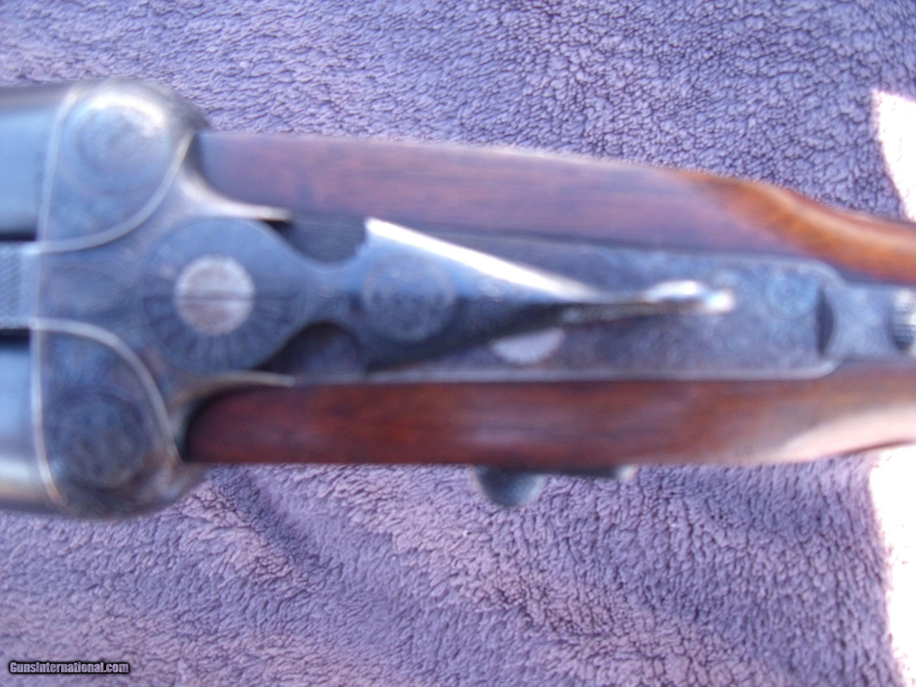Description: Armas Garbi 103B side lock 12ga. game gun. 27" IC/ Mod. Self-opening; H&H detachable lock. This is a Best-grade self-opener. Casecolored action with English-style scroll engraving. Straight and English stock with splinter forearm. Double triggers; LOP 14 5/8”; RH cast 1/4”; drop comb 1 7/8”; drop heel 2 1/4”; Weight: 6lbs, 8.5oz.; gun purchased used in December '98. It appeared new when received, and has been lightly used and kept indoors in a gun safe. Manufacture date is not known. Serial #8491. SOLD |