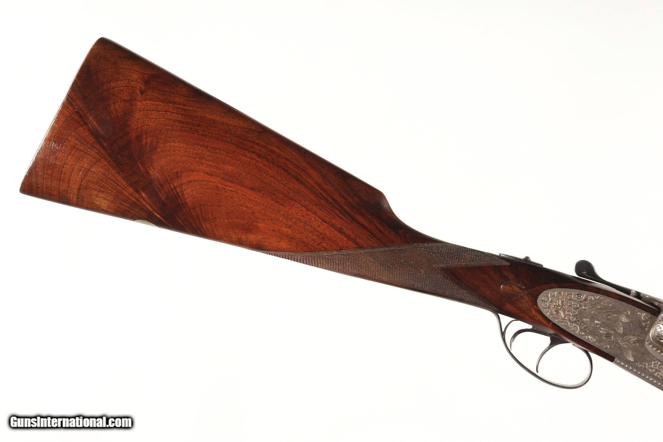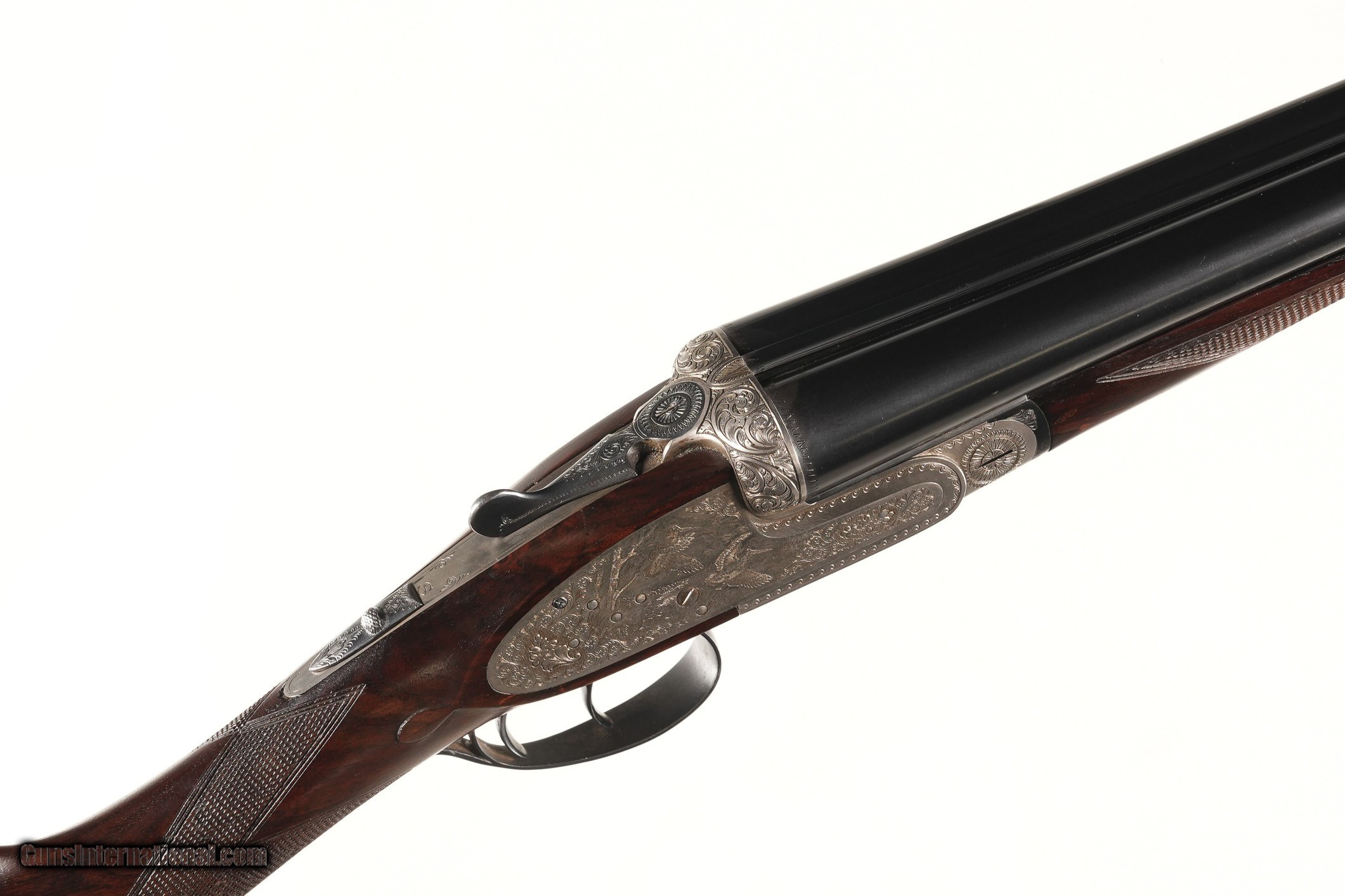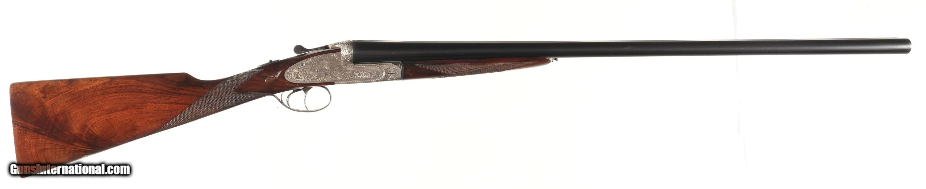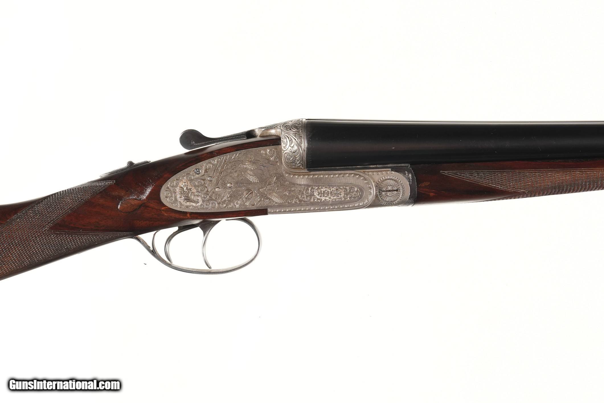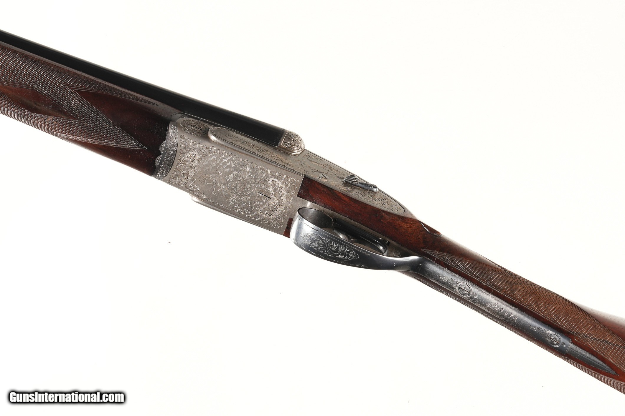Description: Garbi Royale 12 Ga detachable side lock with 2 3/4" chambers choked IC & Mod with double trigger and ejectors. Front trigger articulated. Oil finished checkered walnut stocks with 14 1/2" LOP over checkered wood butt. coin finished locks and receiver, Mfd, 1974. Condition, Very fine with 97% finish remaining with bright bores and light handling. Mechanically excellent. • Free Shipping, No Credit Card Fees. • Lay-a-way available for this firearm. • 1/3 Down, a 1/3 in 30 Days, 1/3 in 60 Days. SOLD Manufacturer: Armas Garbi Model: Gunmark Royal Serial Number: 17174 Barrel Length: 28 |