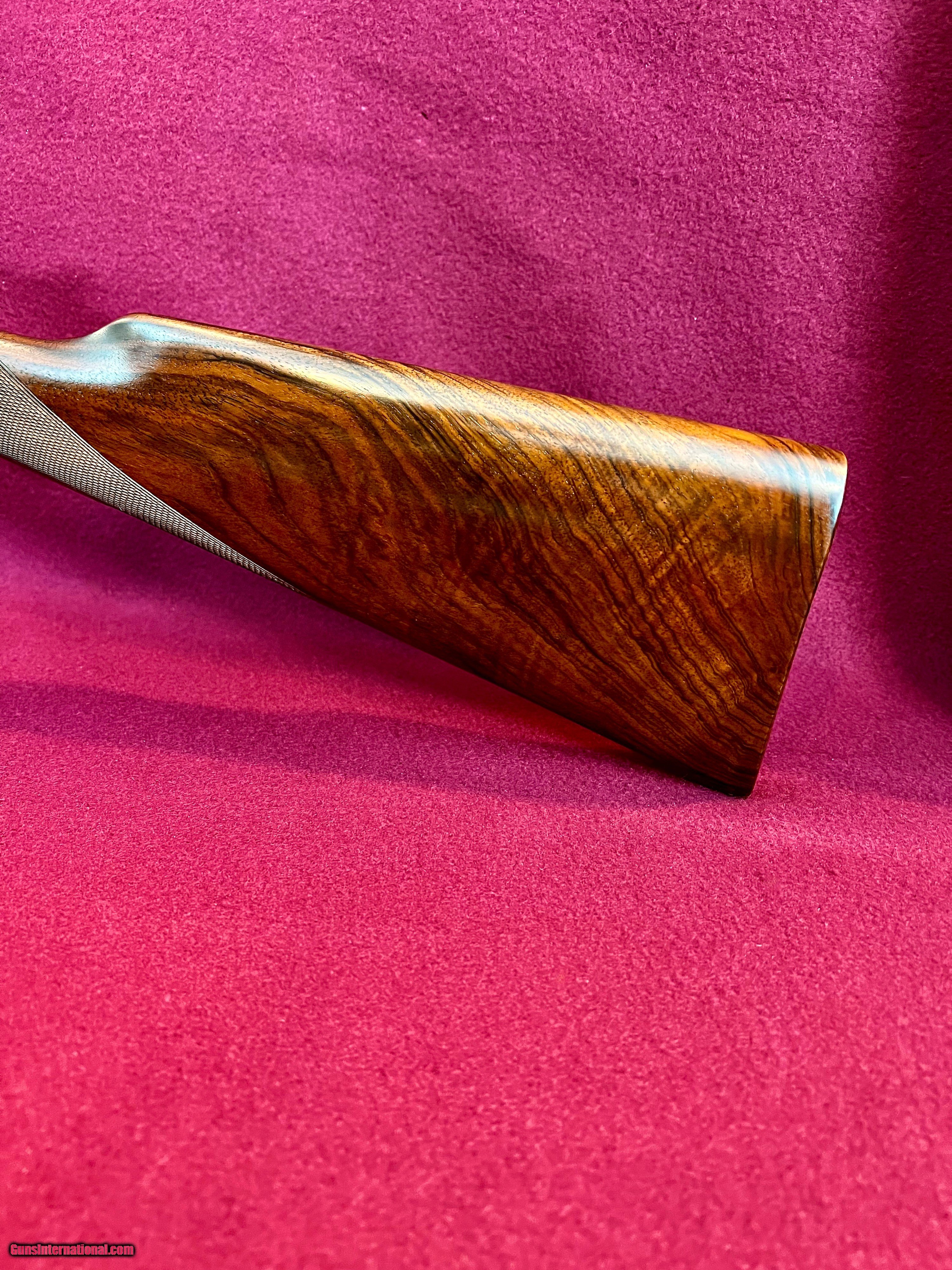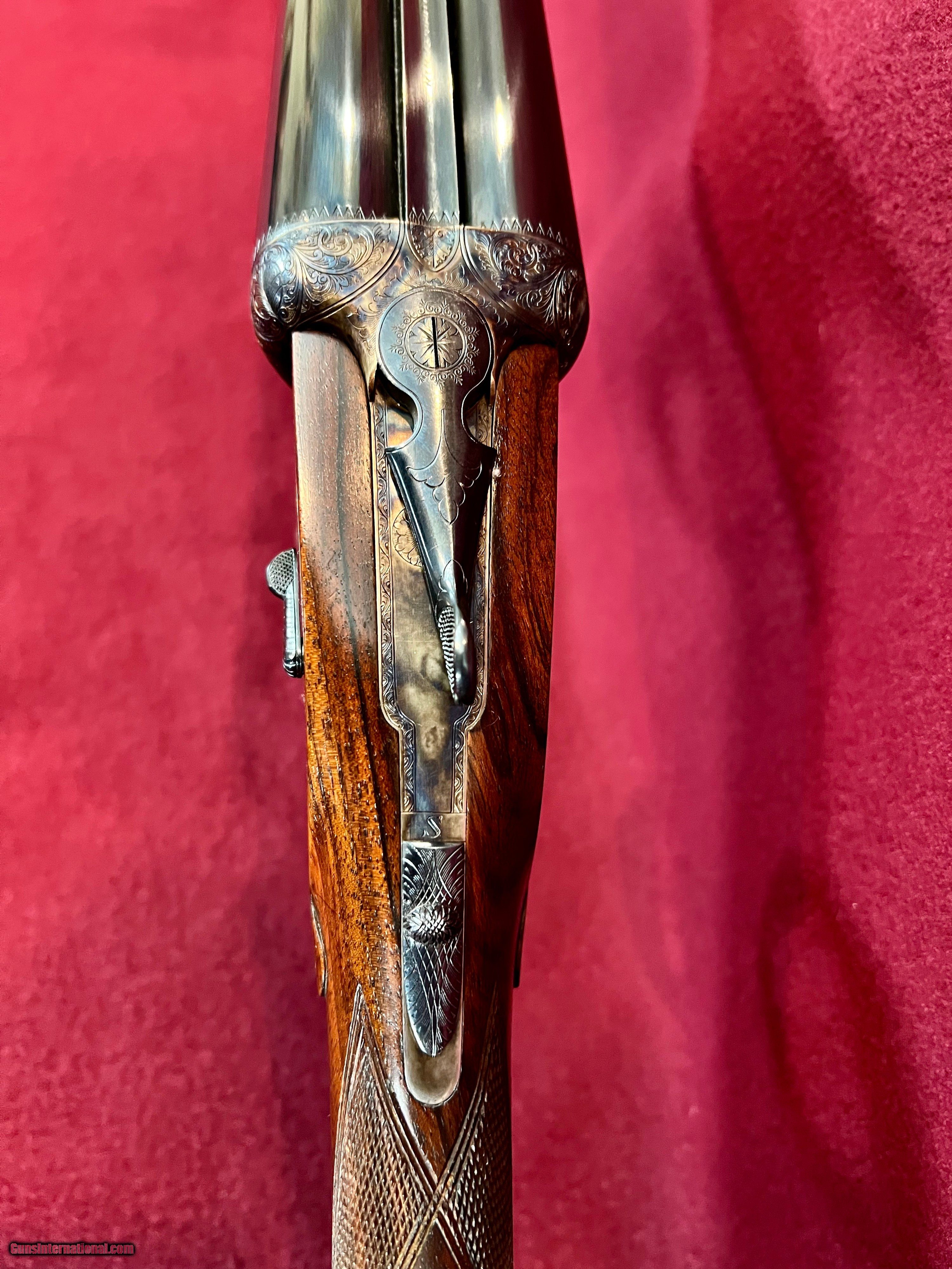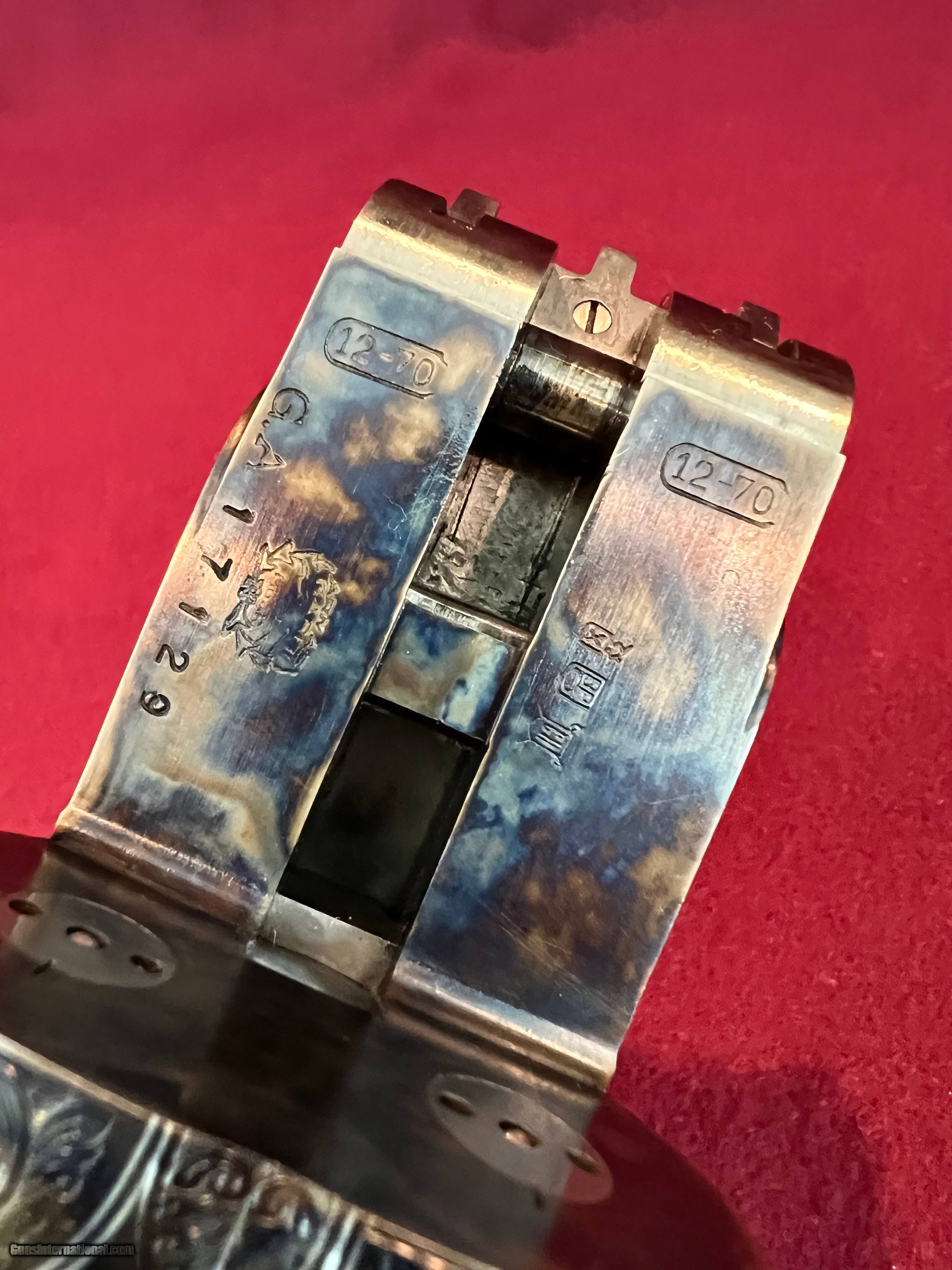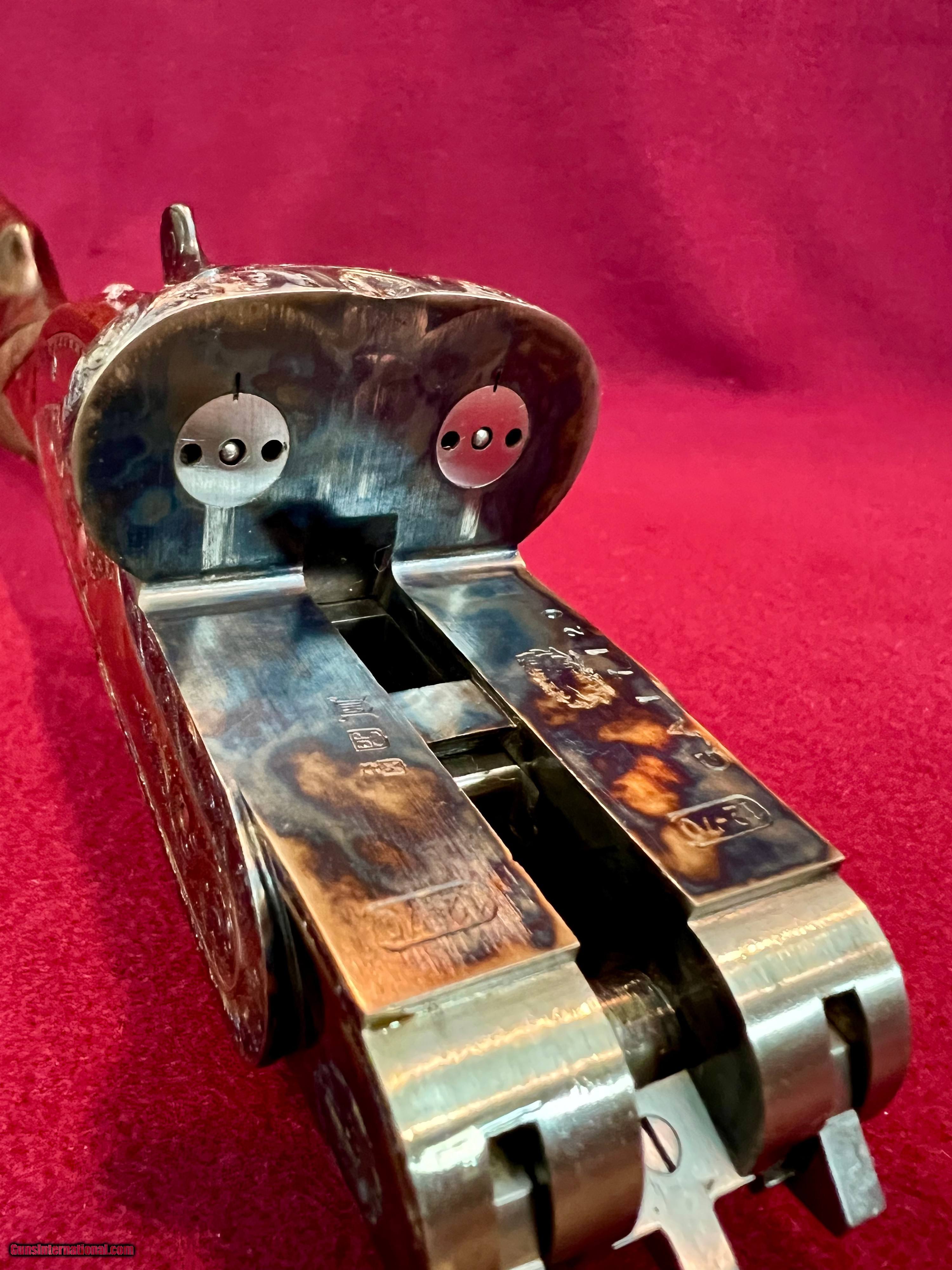 Description: I have for sale a lovely Armas Garbi Model 101 in 12 gauge that is in as new condition and may be unfired. Garbi is one of the top tier gun makers in Spain and they produce quality guns, not quantity. This gun has 27 inch barrels have 2 3/4 inch chambers, and are stamped 3 stars and 4 stars indicating improved cylinder and modified. The bores both measure .727 and the right barrel has .006 constriction and the left .013 constriction, exactly IC and Mod. The bores measure as consistent as any I've measured and they ring beautifully. Stock dimensions are 1 5/8 X 2 3/8 X 14 9/16 over a nicely checkered butt. Wood on this gun is lovely with great grain contrast. The hand detachable H&H pattern sidelock has some of the best case coloring I've seen on any of these guns and the colors literally pop. Add to that the nice hand engaving and you have a super quality gun that is as attractive as it is functional. The straight English stock with the traditional splinter forend gives the gun great balance just ever so slightly ahead of the hinge pin. Of course the gun has all the bells and whistles with the hand detachable sidelocks, articulated front trigger, bushed firing pins, and exceptional trigger pulls. Condition of the gun is excellent plus, with only a couple very small marks on the gun that you have to search hard for to find. These guns new today are priced at over fifteen thousand dollars. You can have this like new gun for $4200 plus $75 shipping to your FFL. SOLD Shotgun Gauge: 12 Gauge Manufacturer: Armas Garbi Model: 101 Serial Number: 17129 Barrel Length: 27 inches Chambers: 2 3/4 inches Ejectors: Selective Well Timedtive Condition: Excellent Metal Condition: Excellent Wood Condition: Excellent Bore Condition: As New Action: Full Sidelock Triggers: Double Front Articulated Stock: Straight English Stock Comb: 1 5/8 Stock Heel: 2 3/8 Stock Cast: Neutral Fore End: Splinter Butt Pad: Checkered Butt LOP: 14 9/16 inches Finish: Hand Rubbed Oil Weight: 7 pounds 2 ounces Choke Left: .013 Modified Choke Right: .006 IC Engraving: Hand Cut Scroll |