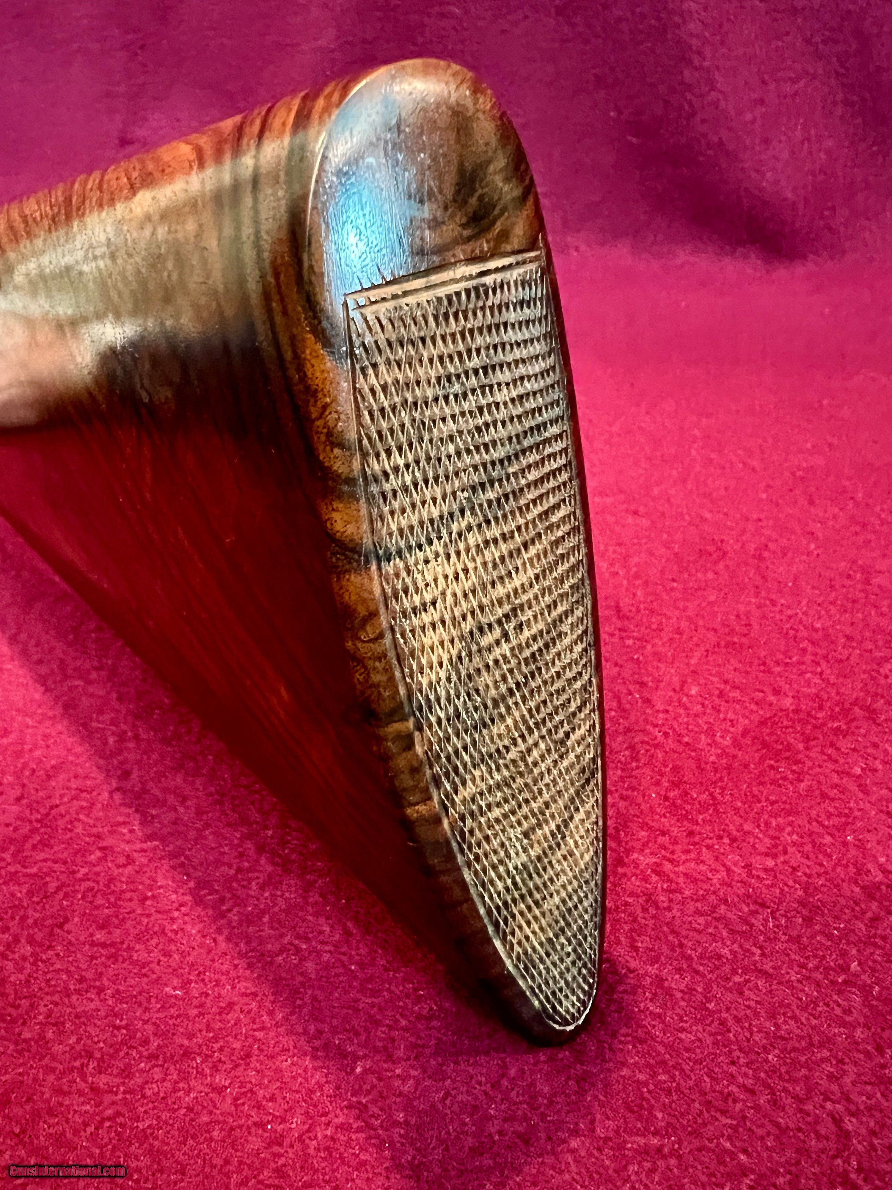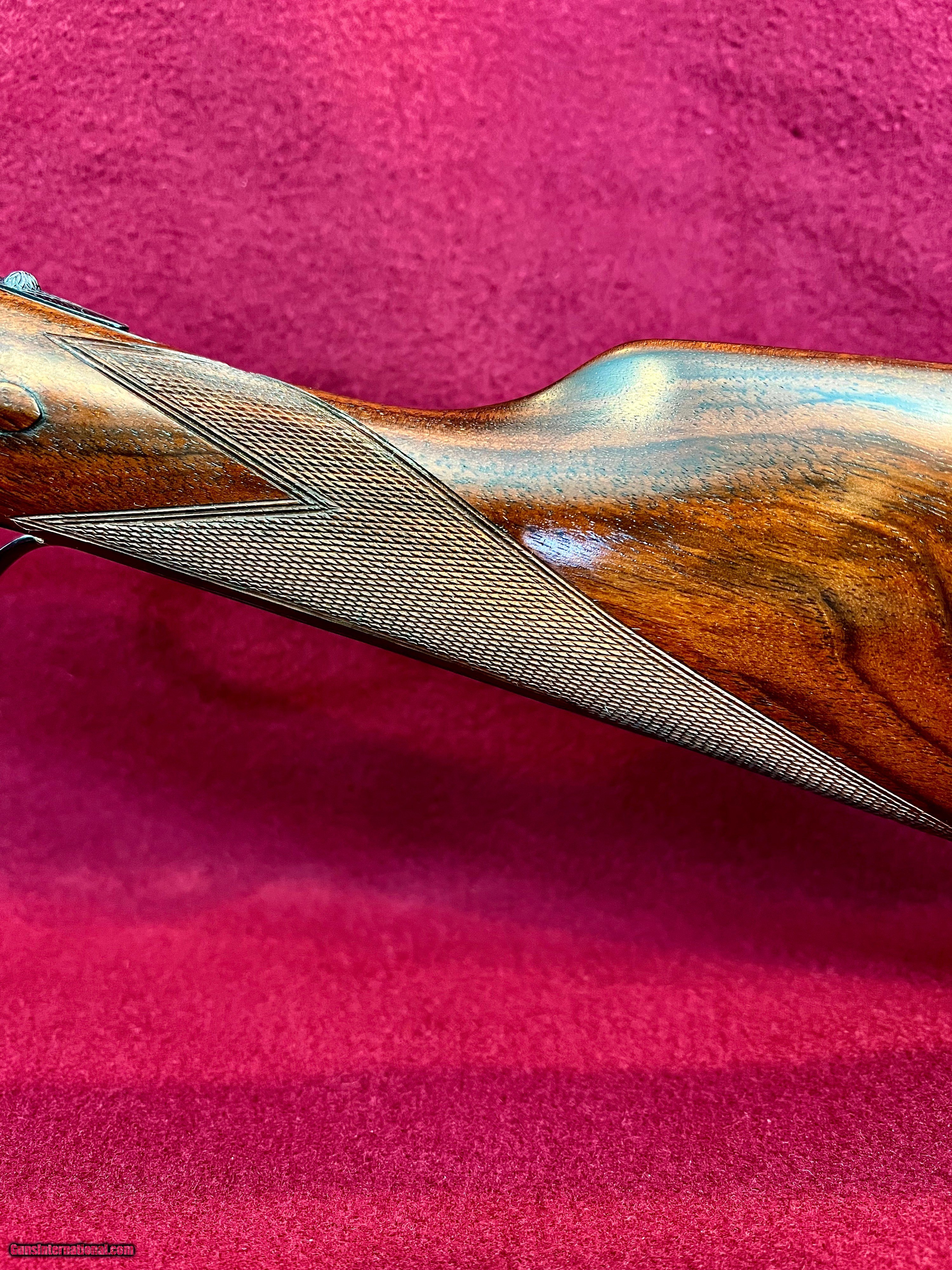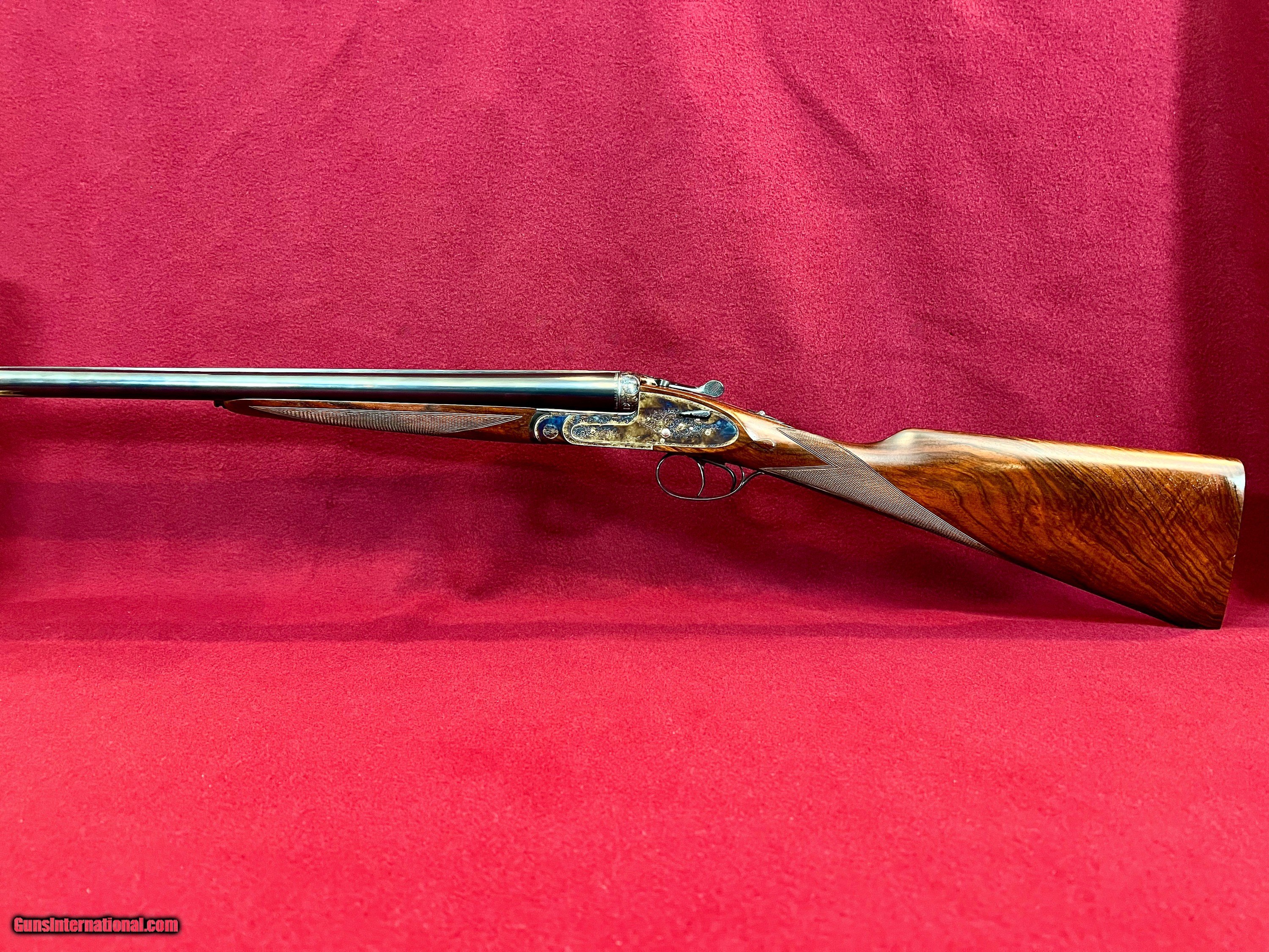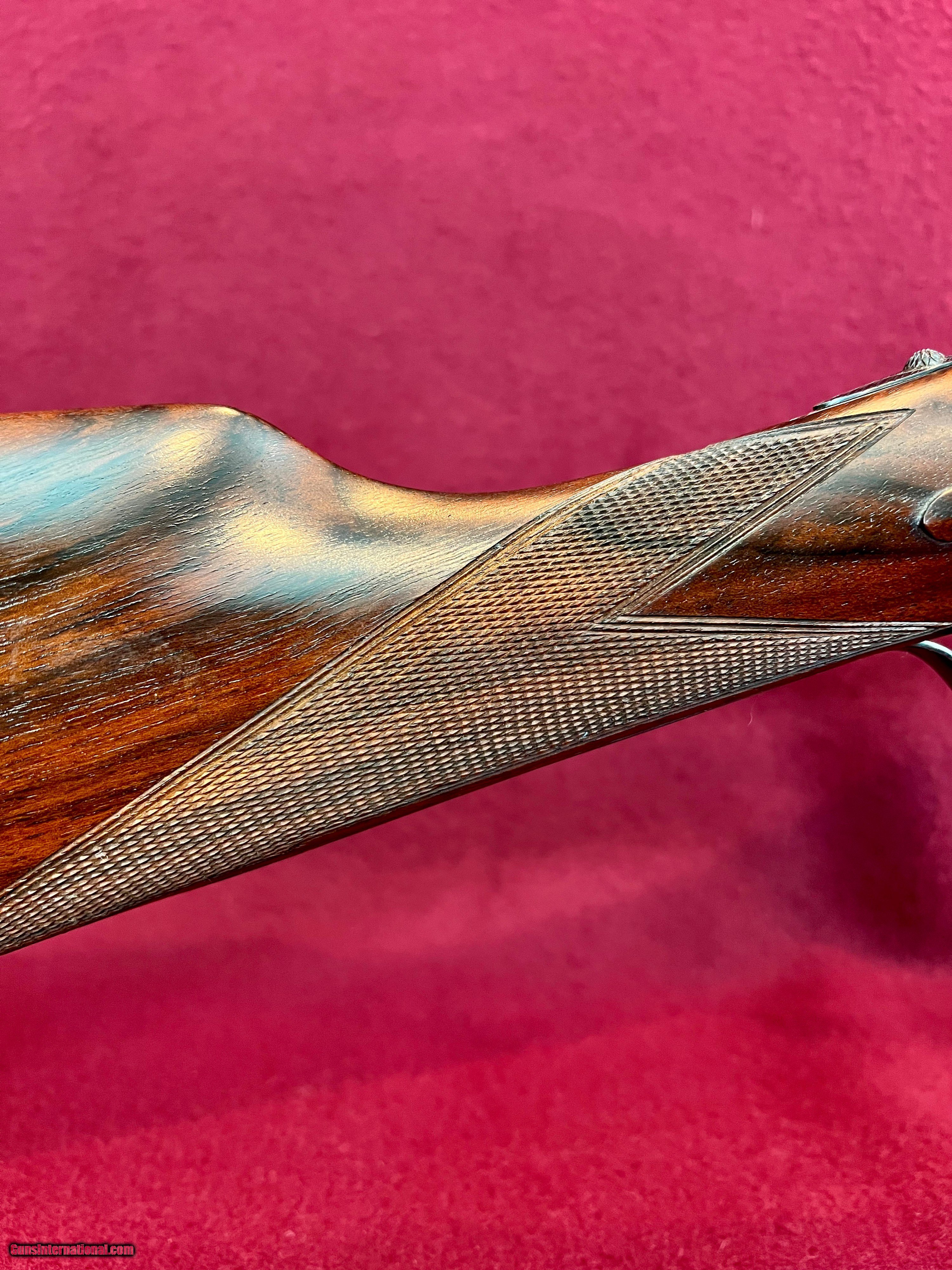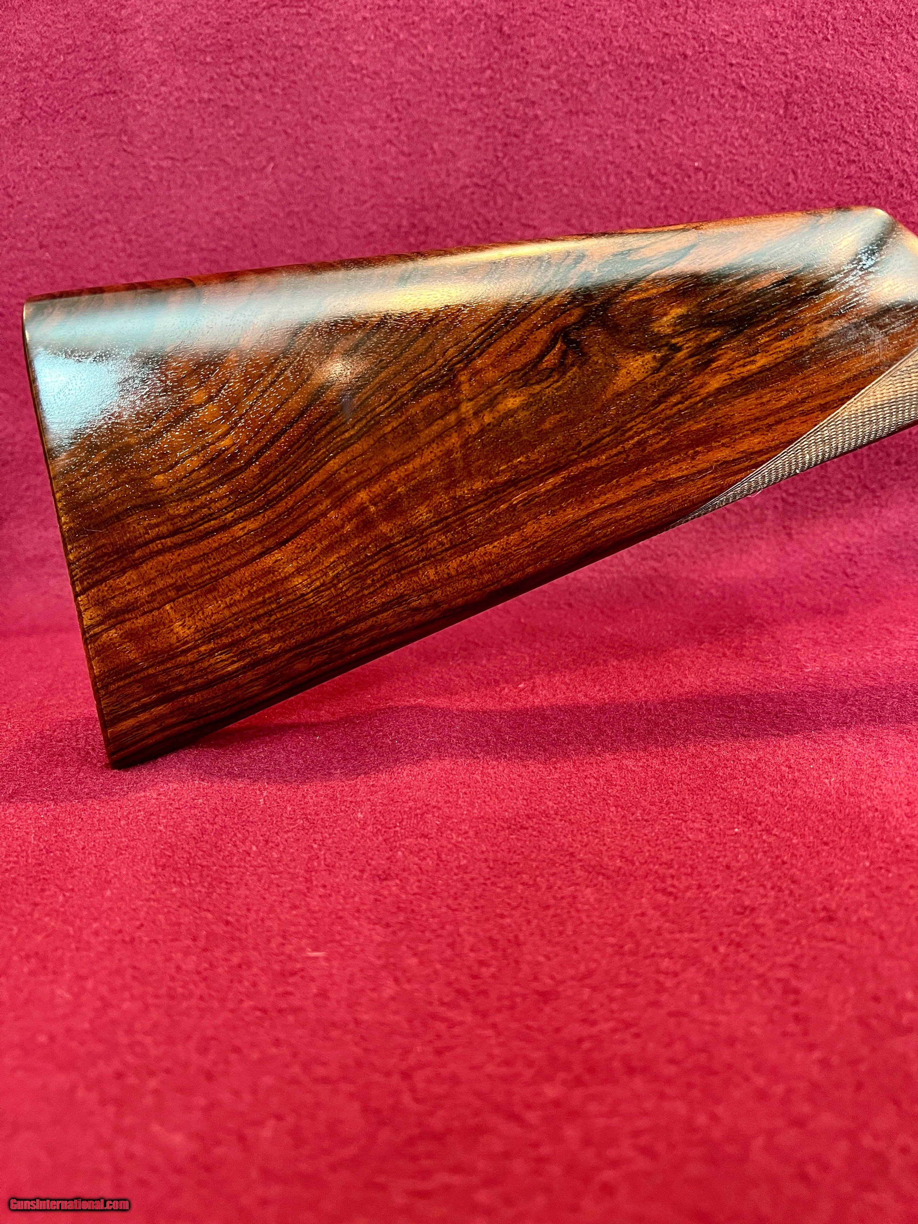 Description: I have for sale a lovely Armas Garbi Model 101 in 12 gauge that is in as new condition and may be unfired. Garbi is one of the top tier gun makers in Spain and they produce quality guns, not quantity. This gun has 27 inch barrels have 2 3/4 inch chambers, and are stamped 3 stars and 4 stars indicating improved cylinder and modified. The bores both measure .727 and the right barrel has .006 constriction and the left .013 constriction, exactly IC and Mod. The bores measure as consistent as any I've measured and they ring beautifully. Stock dimensions are 1 5/8 X 2 3/8 X 14 9/16 over a nicely checkered butt. Wood on this gun is lovely with great grain contrast. The hand detachable H&H pattern sidelock has some of the best case coloring I've seen on any of these guns and the colors literally pop. Add to that the nice hand engaving and you have a super quality gun that is as attractive as it is functional. The straight English stock with the traditional splinter forend gives the gun great balance just ever so slightly ahead of the hinge pin. Of course the gun has all the bells and whistles with the hand detachable sidelocks, articulated front trigger, bushed firing pins, and exceptional trigger pulls. Condition of the gun is excellent plus, with only a couple very small marks on the gun that you have to search hard for to find. These guns new today are priced at over fifteen thousand dollars. You can have this like new gun for $4200 plus $75 shipping to your FFL. SOLD Shotgun Gauge: 12 Gauge Manufacturer: Armas Garbi Model: 101 Serial Number: 17129 Barrel Length: 27 inches Chambers: 2 3/4 inches Ejectors: Selective Well Timedtive Condition: Excellent Metal Condition: Excellent Wood Condition: Excellent Bore Condition: As New Action: Full Sidelock Triggers: Double Front Articulated Stock: Straight English Stock Comb: 1 5/8 Stock Heel: 2 3/8 Stock Cast: Neutral Fore End: Splinter Butt Pad: Checkered Butt LOP: 14 9/16 inches Finish: Hand Rubbed Oil Weight: 7 pounds 2 ounces Choke Left: .013 Modified Choke Right: .006 IC Engraving: Hand Cut Scroll |
