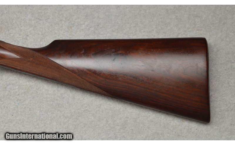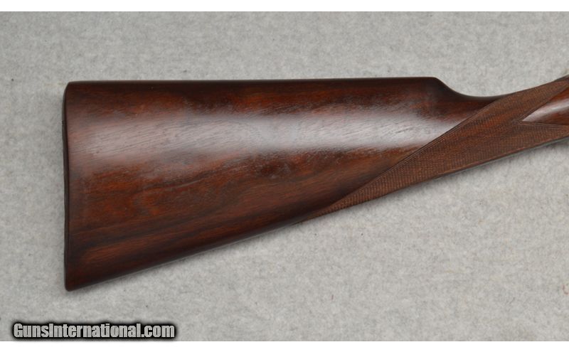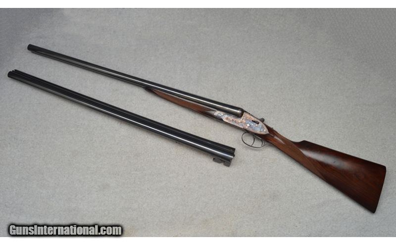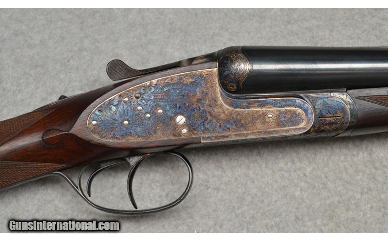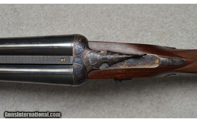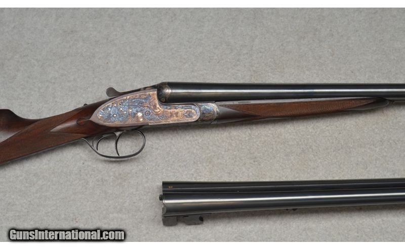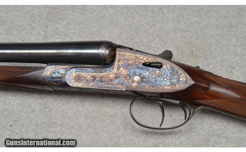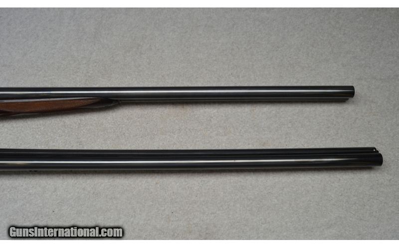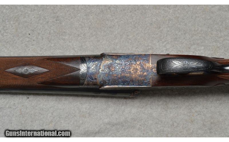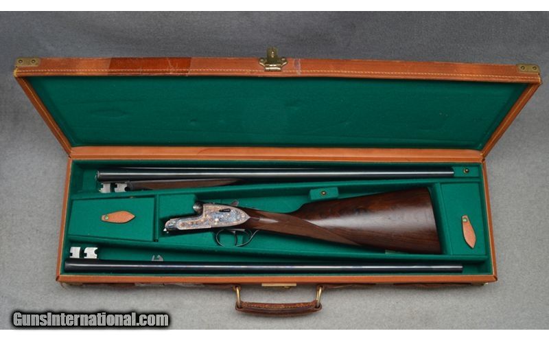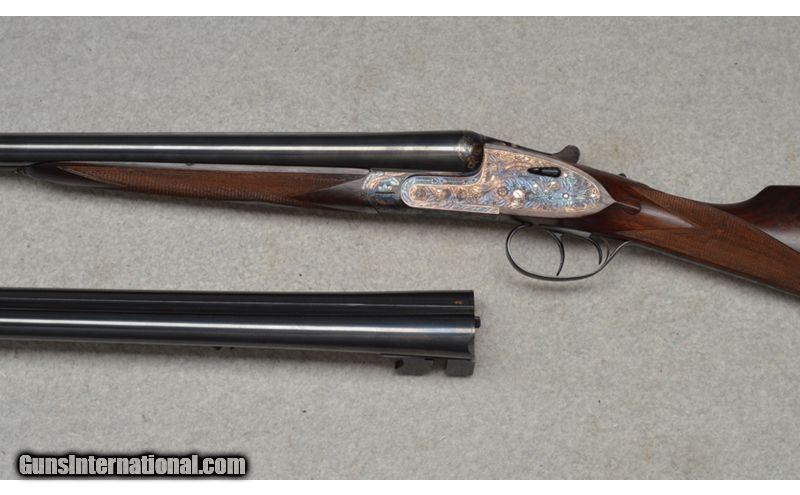 Description: Factory Engraved Armas Garbi 101 Hand Detachable Side Lock Side by Side shotgun. Blue/Case-hardened finish, walnut stock and blue steel, chopper lump barrels with 2 3/4" chambers, automatic ejectors, and standard Spanish proofs on the flats. Case-hardened cation with side clips, bushed firing pins, Holland style hand detachable locks, dual triggers, and automatic tang safety. The reciever and locks are engraved with full coverage floral bouquet and scroll patterns with polished cocking indicators and pins, and matching engraved trigger guard. 12 Gauge SOLD Chambers: 2 3/4 Metal Condition: Excellent Wood Condition: Excellent Bore Condition: Clean Barrels: 26" 27.5 Triggers: Double Stock Dimensions: 14 3/8"" LOP, 1 1/4"" DAC, 1 3/8"" DAH Weight: 6 lb. - 4 oz. Sights: Single Bead Chokes: MOD/FULL, MOD/FULL Item Location: Fort Worth, TX |