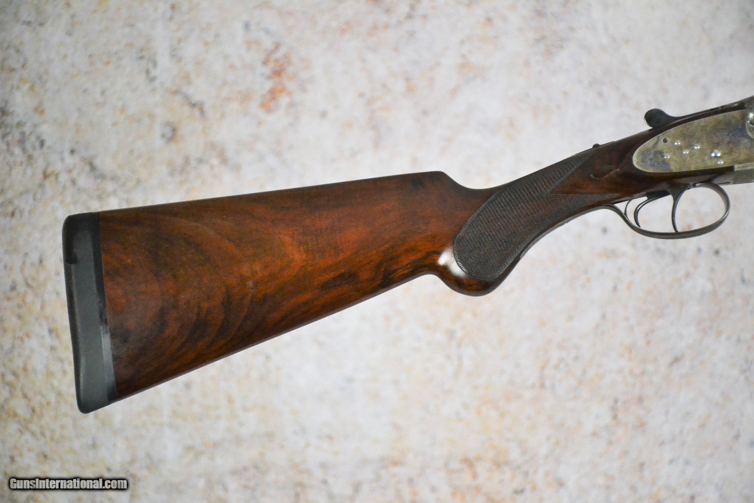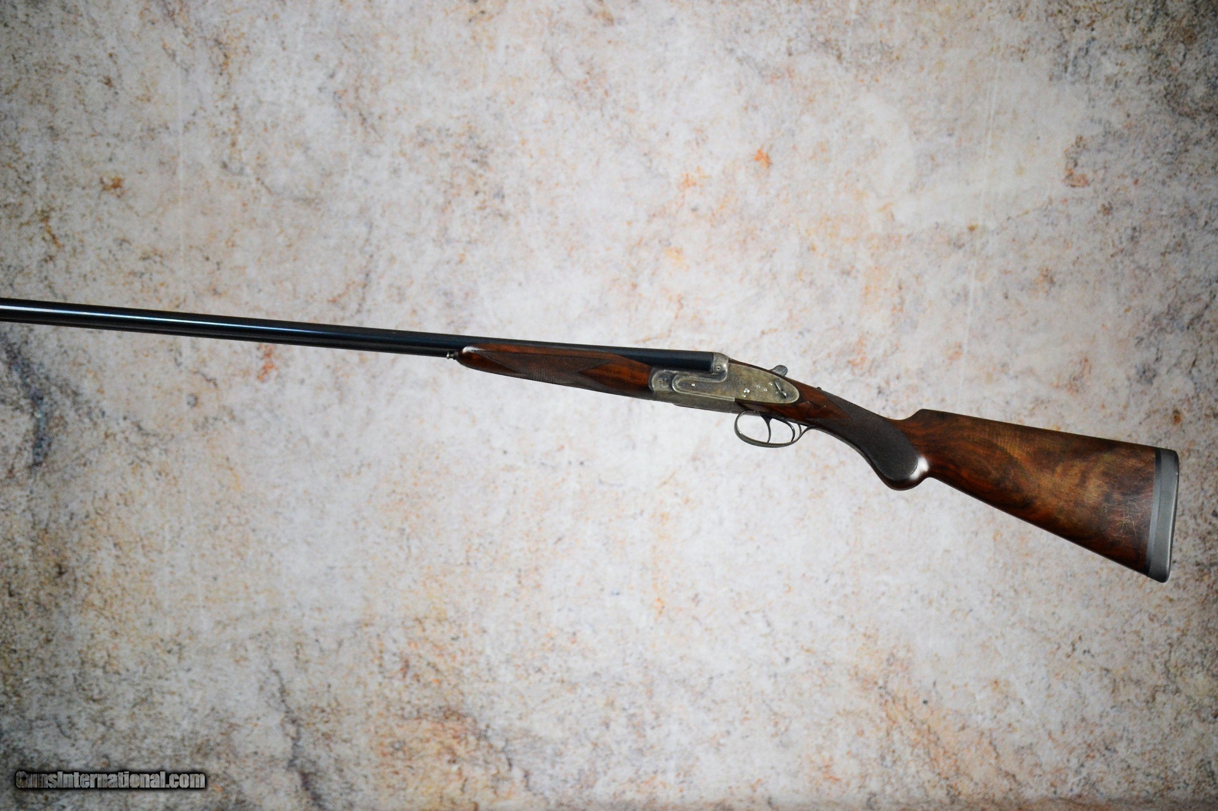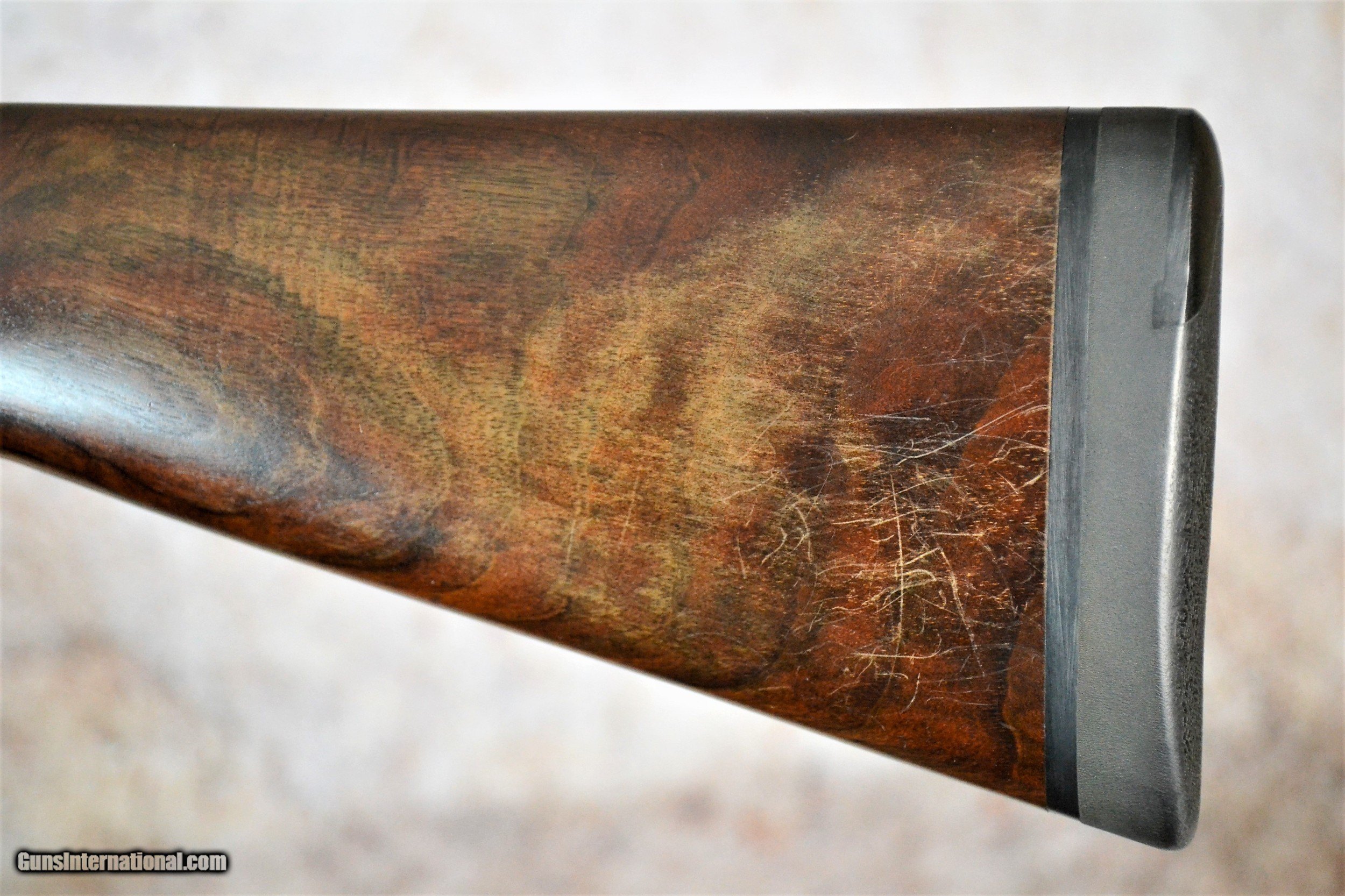 Description: Armis Garbi Side Lock Field 28g 30" SN:#270308501~~Pre-Owned~~ This shotgun Hand detachable side locks. double trigger ejectors, Prince of wales grip, rose & scroll engraving, beavertail forearm and adjustable front trigger. Wear and marks on wood as shown in pictures. Federal firearms laws do not allow us to ship firearms directly to you. Please contact us for ordering and shipping information. Gauge: 28g Barrel Weight: 2lb 8oz Barrel Length: 30" Chamber: 2 3/4" Bore Diameter: 13.9 Chokes: Briley Thin Wall 5 Rib: Raised Tapered Rib Stock Dimensions Drop at nose: 1 1/2" Drop at heel: 2 1/4" Cast Off: 1/8 RH Forend Style: Beavertail Length of pull: 15 1/4" to front trigger Pachmayer pad Comb: Fixed comb Weight: 6lb 8oz SOLD |