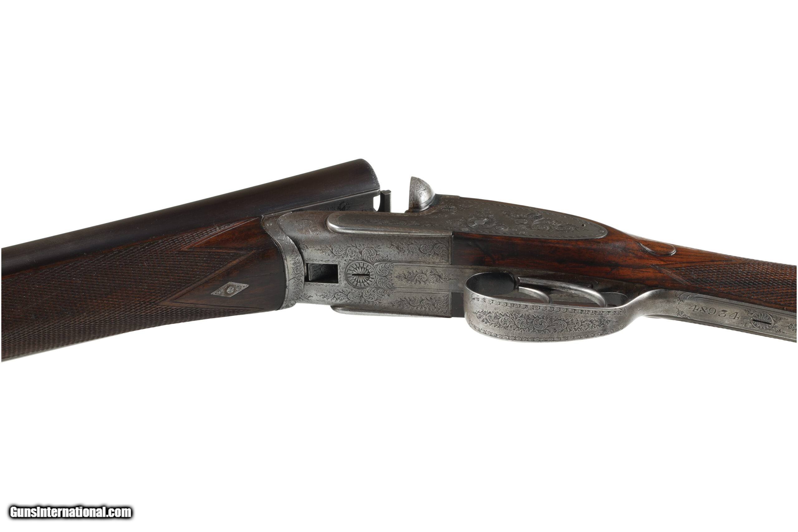 Description: This English made Army & Navy SLE is in exceptional condition despite its apparent age, having been very well kept. The barrels show only very light wear to their bluing and though much of the color has left the case hardening of the receiver, the engraving remains crisp. The stocks, likewise, show only light to moderate wear in the form of a few bruises and there are no apparent cracks to be found. Manufactured in: England Hand: Right Hand Action Finish: Engraved Metal Finish: Original Barrel Length: 28 Inches Barrel Condition: Very Good Stock Finish: Original Stock Condition: Very Good Type of Butt: Checkered Wood Grip: Straight Grip Forend: Checkered Splinter Cast Amount: 5/16" Manufacturer: Army & Navy Model: SLE Chambers: 2 3/4 Ejectors: Yes Condition: Preowned Metal Condition: Very Good Action: Side by Side Triggers: Double Gauge: 12 Gauge Stock Comb: 1 1/2 Stock Heel: 2 1/8 Stock Cast: Off Fore End: Checkered Splinter LOP: 14 1/4 Rib: Concave Game Finish: Original Weight: 6 lbs Chokes: C/IC Case: NONE Price: $2,500.00 Contact Seller |