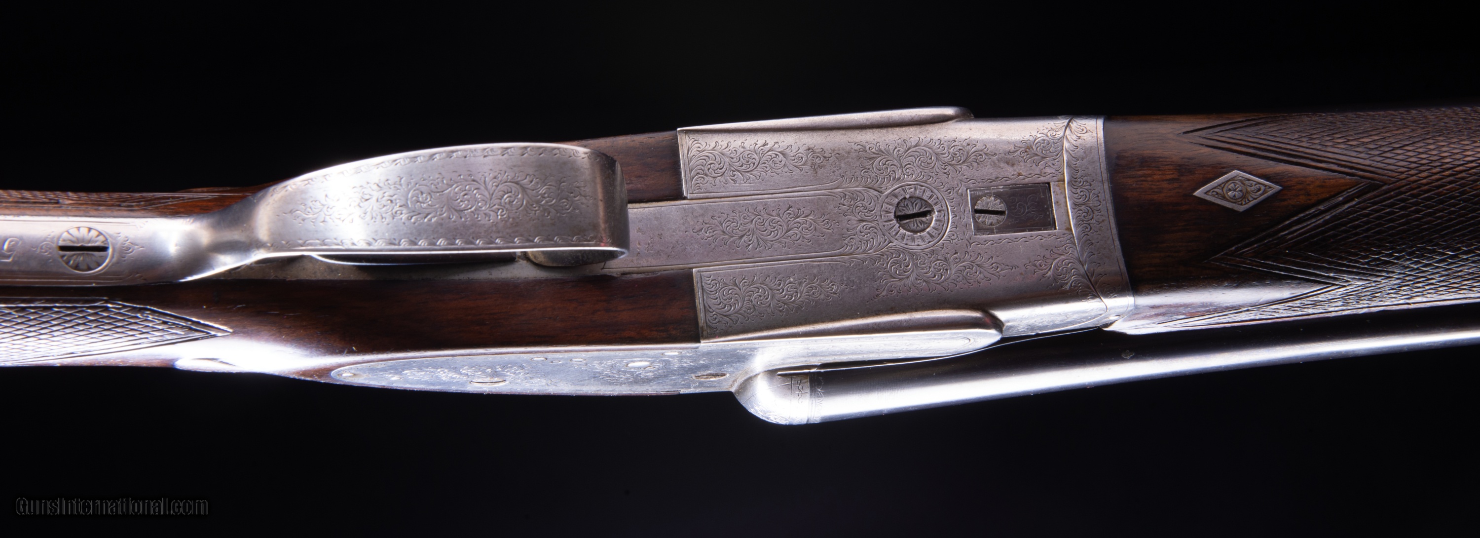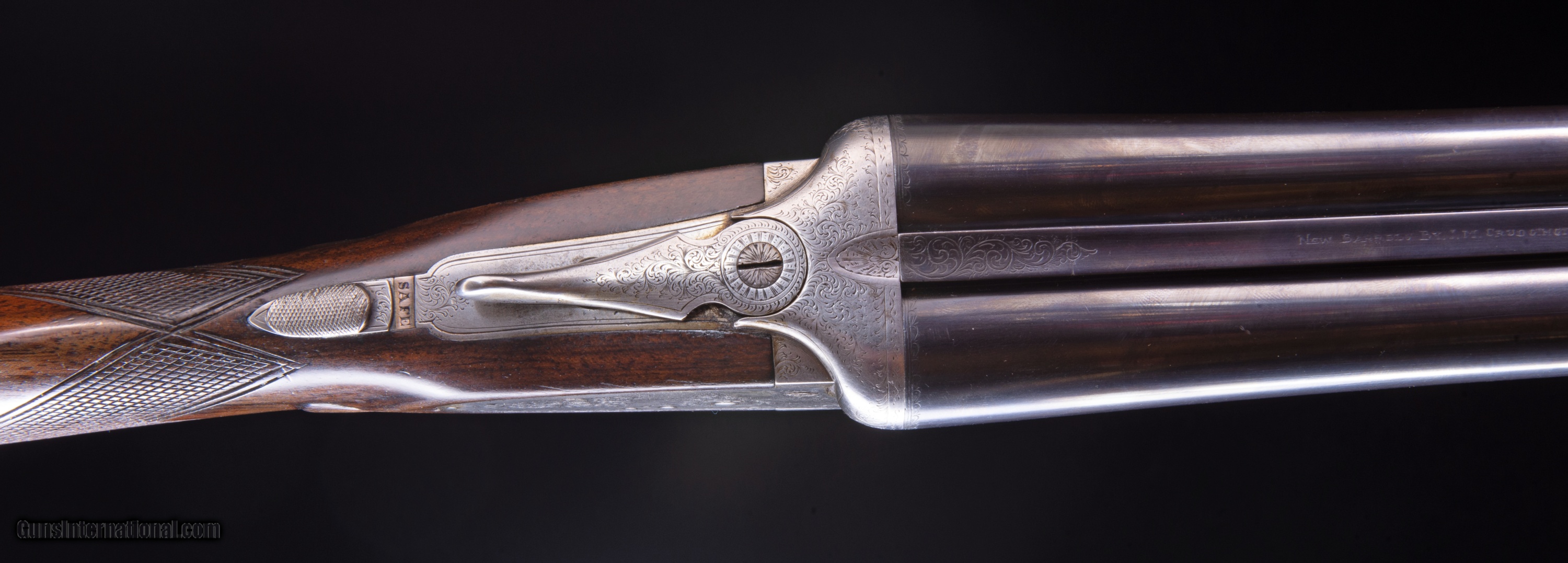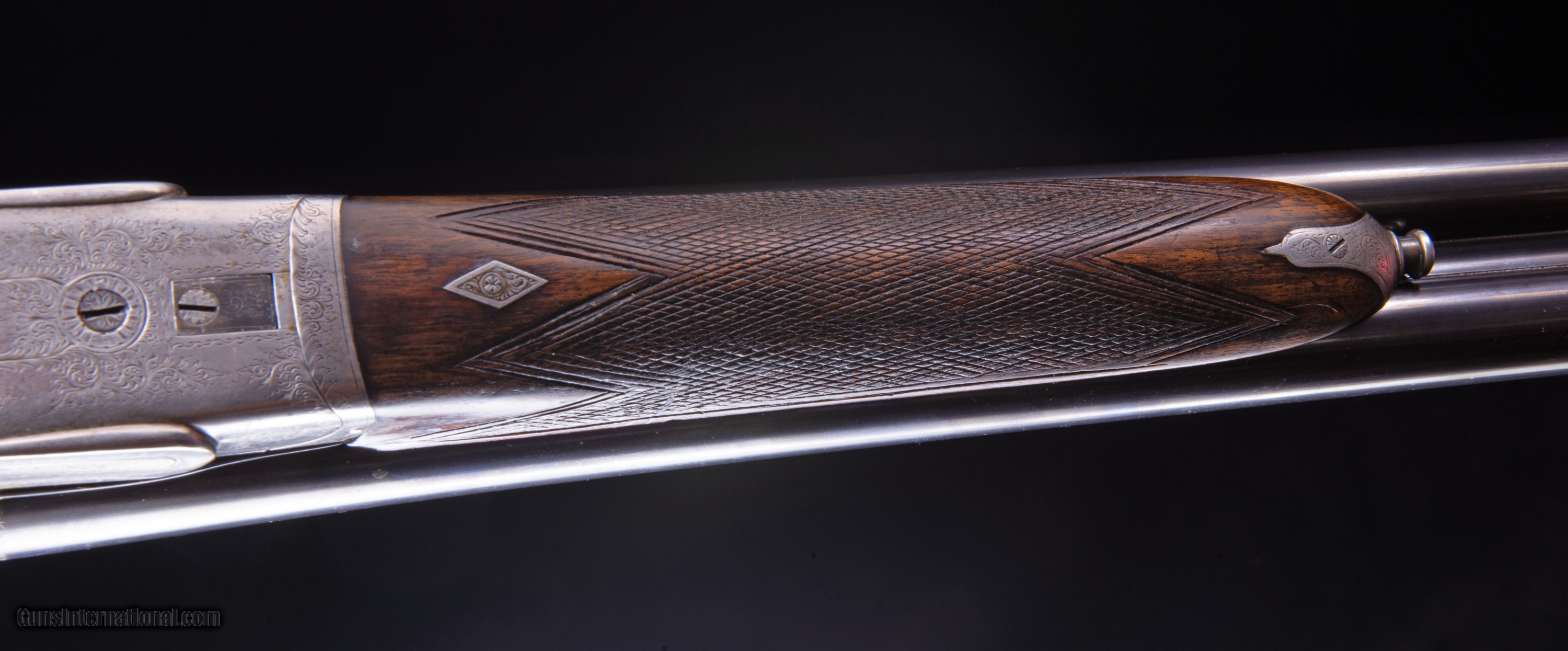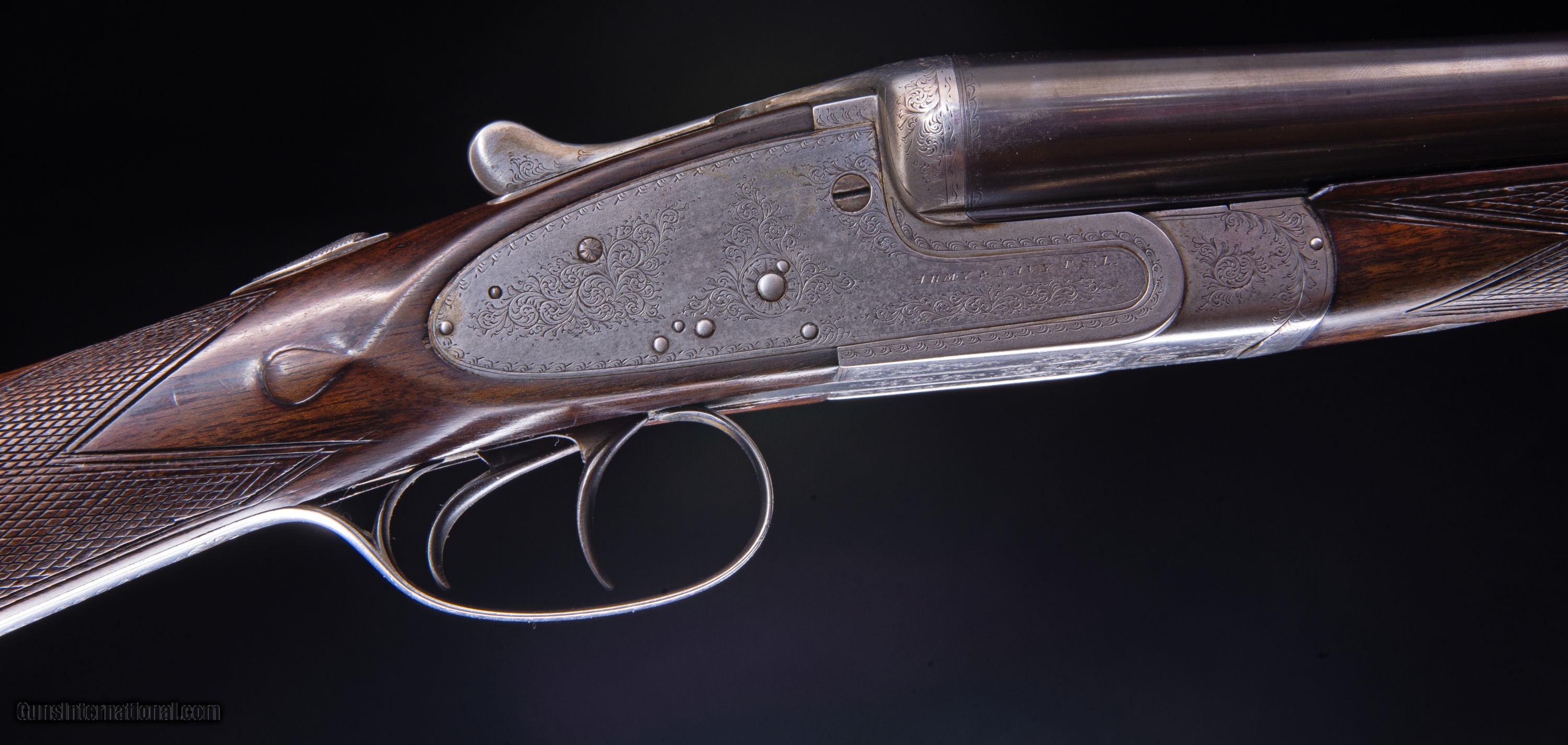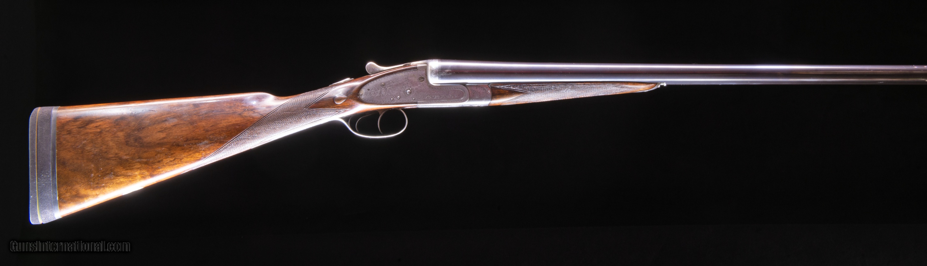 Description: Hammerless Sidelocks - Good dimensions, tight on face, 2 3/4" nitro proofs and a sidelock at that. Field ready. This one won\'t last! Why so inexpensive? Smaller maker and the fact we got a great deal and like to offer our customers great deals when we get them. *** Note: To see this gun with high resolution photos and a zoom-in feature, go to the vintagedoubles main site and search for the gun ID: 4412 or browse the main site to see our full gun collection. SOLD Manufacturer: Army Navy Sidelock for the price of a boxlock! Own a nice English 12g. with 2 3/4" proofs at a great price! Model: None Serial Number: 59633 Ejectors: Yes Barrels: 28 Barrel Type: Steel Action: Sidelock ejector Gauge Info: 12 gauge Stock Comb: 1 7/16 Stock Heel: 2 1/4 Stock Cast: 1/8 LOP: 14 3/8" over ru Weight: 6 lbs. 10 oz. Choke Left: .021 Light Full Choke Right: .015 Mod Proof:Nitro: 2 3/4 Minimum Wall Thickness Left: .026 Minimum Wall Thickness Right: .027 |