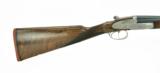 Description: Arrieta 802 28 Gauge shotgun. Premium grade sidelock self-opening ejector gun with 28” barrels. Choked .004/.006. The coin finish locks are fully engraved in fine English scroll. Has double triggers with articulated front trigger. The straight stock and splinter forend are of the deluxe walnut. Length of Pull is 15 1/8” over a thin pad. A sleek beautiful bird gun in excellent condition with leather maker’s case. SOLD |